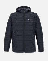 Piumino "Powder pass Hybrid jacket" uomo Columbia, nero, tecnologia Omni Shield antivento e water resistant, trapuntatura orizzontale, tasche laterali con zip, profili nastrati con logo, mini stampa logo sul petto, cappuccio, chiusura con zip bidirezionale, inserti ai lati a contrasto di tessuto, tasca interna, imbottitura sintetica, active fit