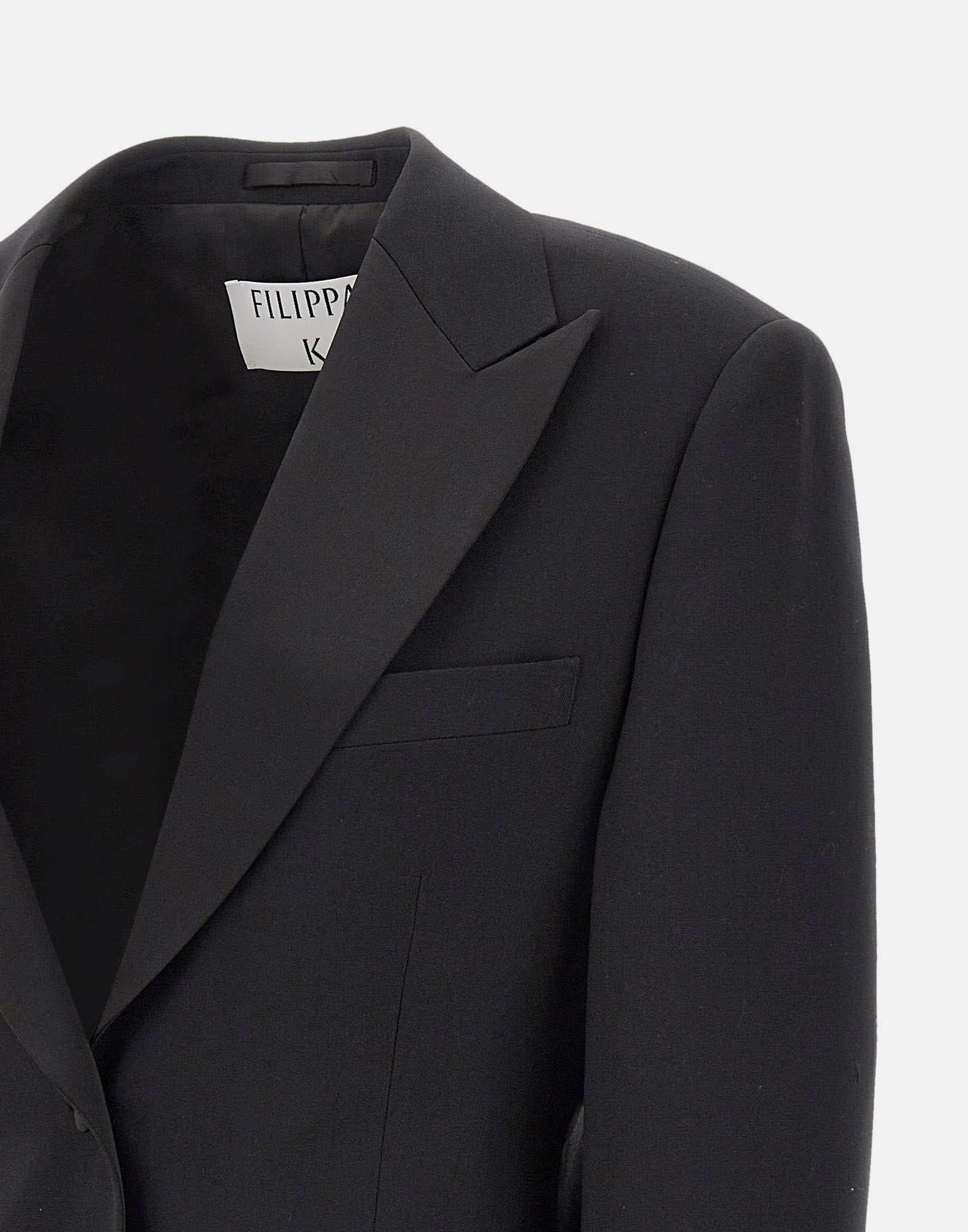 "Hourglass tuxedo blazer" Filippa K, in twill di raso nero è un capo elegante e contemporaneo che valorizza la silhouette femminile con una linea a clessidra. Le spalle strutturate e la vita aderente creano un equilibrio perfetto tra rigore sartoriale e femminilità. Il modello presenta revers a lancia, tasche a filetto sul davanti e una chiusura a bottone singolo per un look pulito e sofisticato. Completamente foderato, offre una vestibilità relaxed fit ideale per occasioni formali o per aggiungere un tocco raffinato agli outfit quotidiani. Cura: solo lavaggio a secco.
