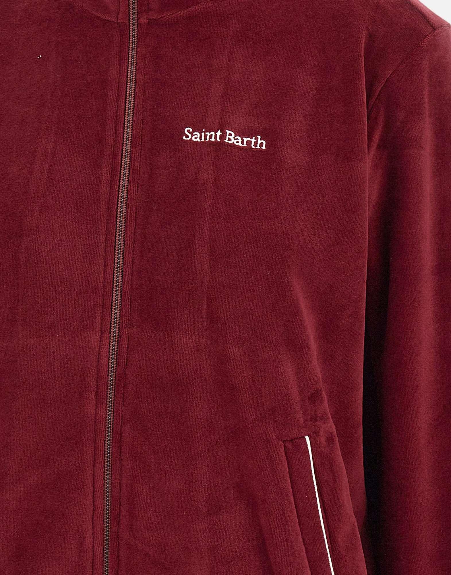 Felpa Mc2 Saint Barth "Miriam Chenille" colore ciliegia, realizzata in morbida ciniglia misto cotone dal finish vellutato. Presenta colletto in piedi, chiusura full zip, logo ricamato sul petto, tasche laterali a filo e bordi elasticati su polsini e fondo per una vestibilità confortevole. Un capo dallo stile raffinato e casual, perfetto per il tempo libero. Regular fit.