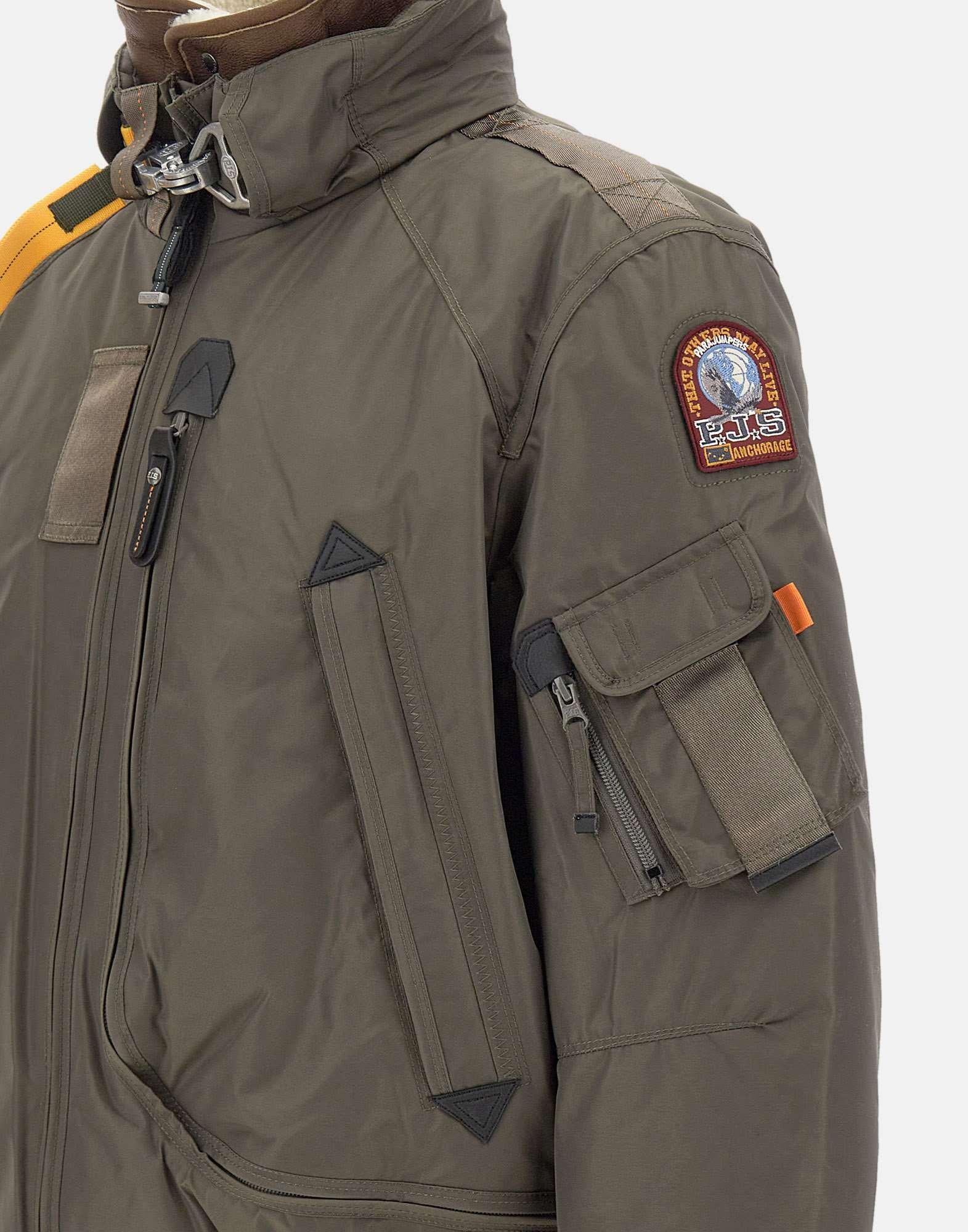Il modello presenta interno collo in shearling removibile, chiusura frontale con zip a doppio cursore, quattro tasche esterne (tra cui liconica cargo pocket) e due tasche interne. Polsini e fondo in costina elasticizzata, patch logo sulla manica e iconico tape giallo amovibile completano il design. Regular fit.