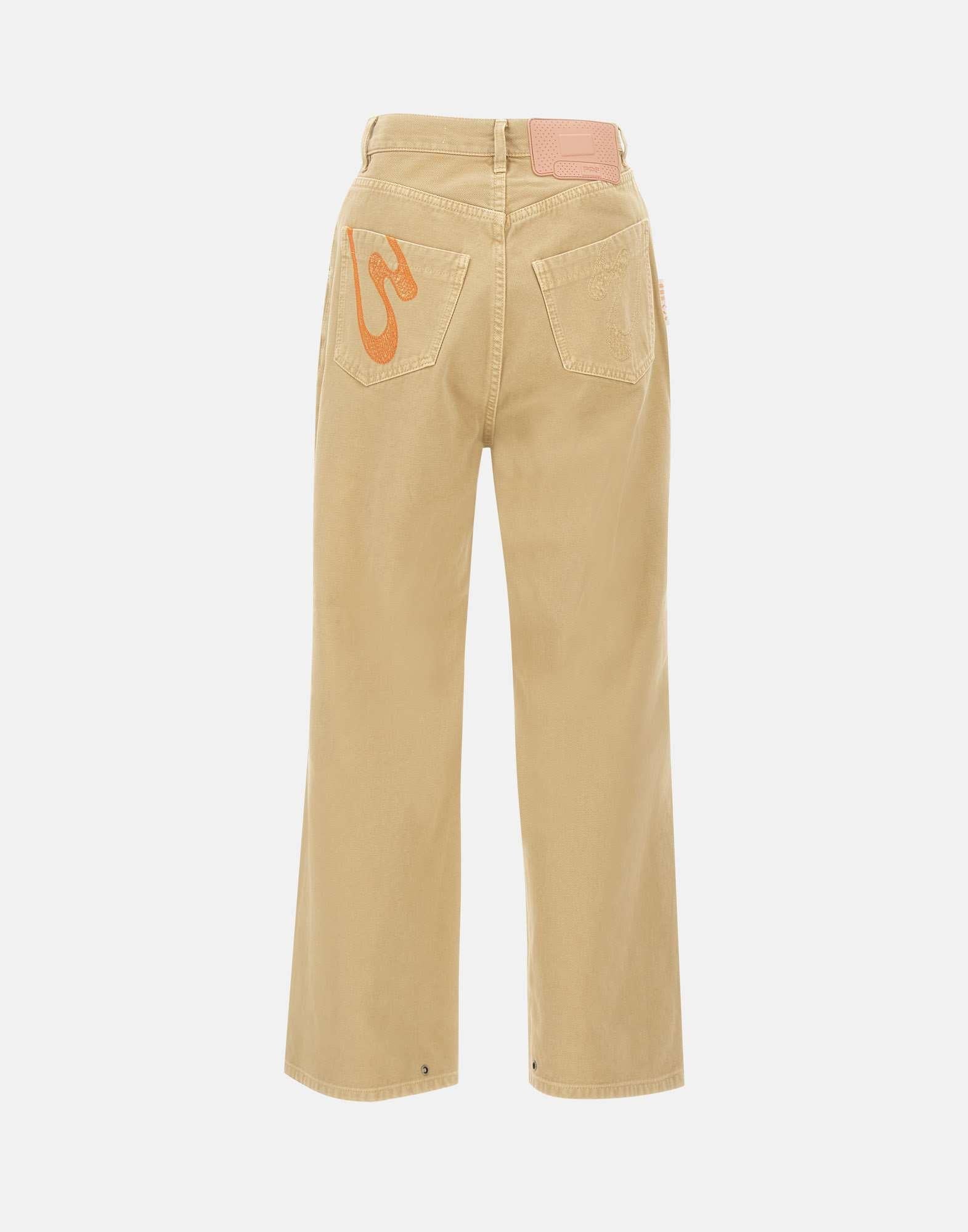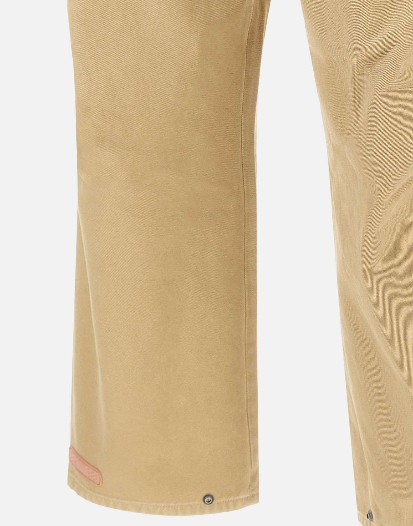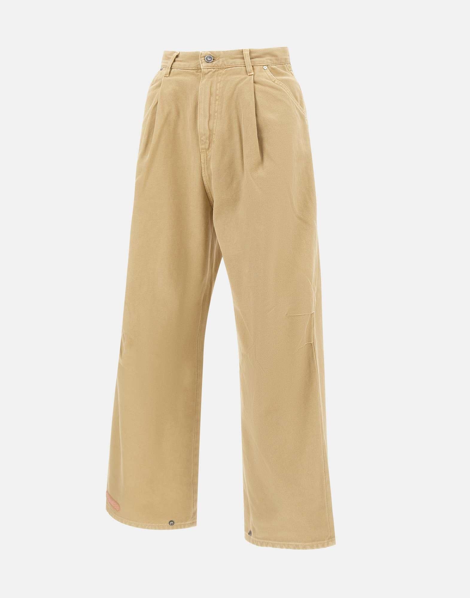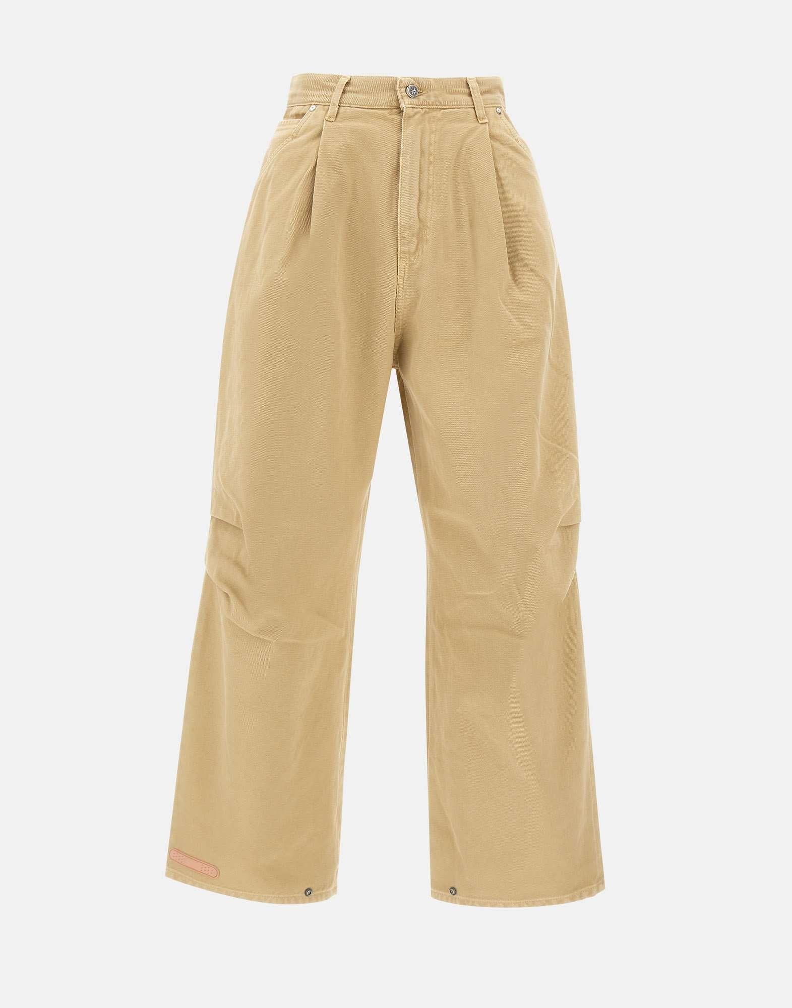 Pantaloni PDF modello "Fat Angelo" colore sabbia, caratterizzati da una vita alta con passanti per cintura e taglio balloon dal volume morbido. Realizzati in tessuto leggero con pince frontali e arricciature sartoriali che ne esaltano la costruzione. Presentano chiusura con zip e bottone gioiello, cinque tasche e liconico logo a cerotto applicato sul retro. Linea contemporanea e comfort elevato per un look casual. Fondo con bottoni 25cm e interno 72cm per la taglia 29. Relaxed fit. Made in Italy.