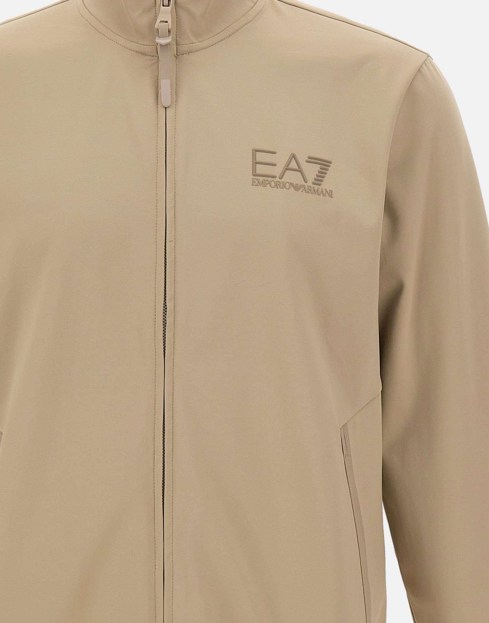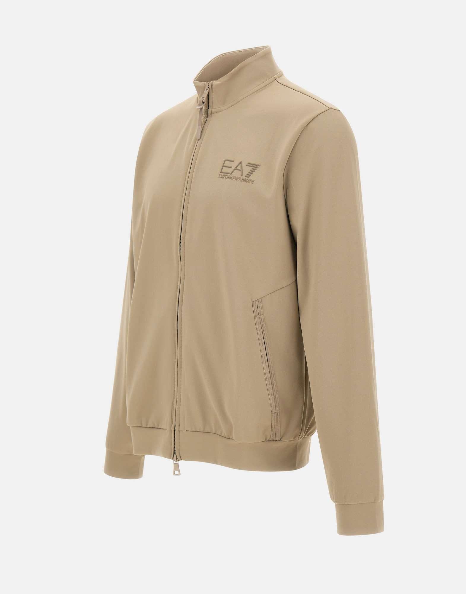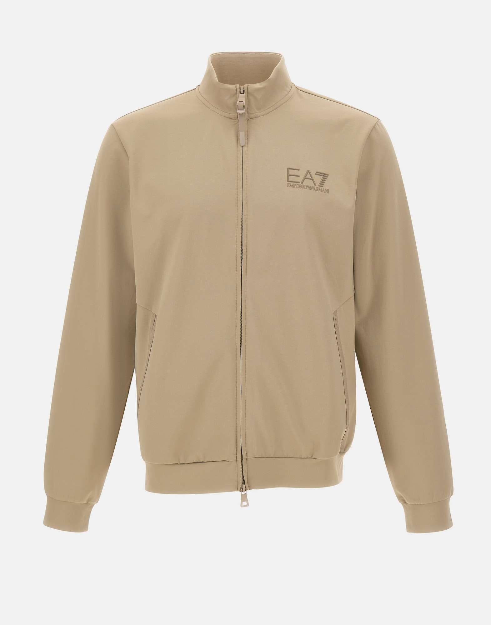 Felpa uomo EA7 "Train Lux" realizzata in nylon elasticizzato color beige, pensata per un look sportivo contemporaneo dal design essenziale. Il modello presenta chiusura con zip a doppio cursore e tasche laterali a filetto, per una linea pulita e funzionale. Il logo impresso ton sur ton sul petto firma il capo con discrezione. Vestibilità regular fit, ideale per outfit versatili dentro e fuori dalla palestra.