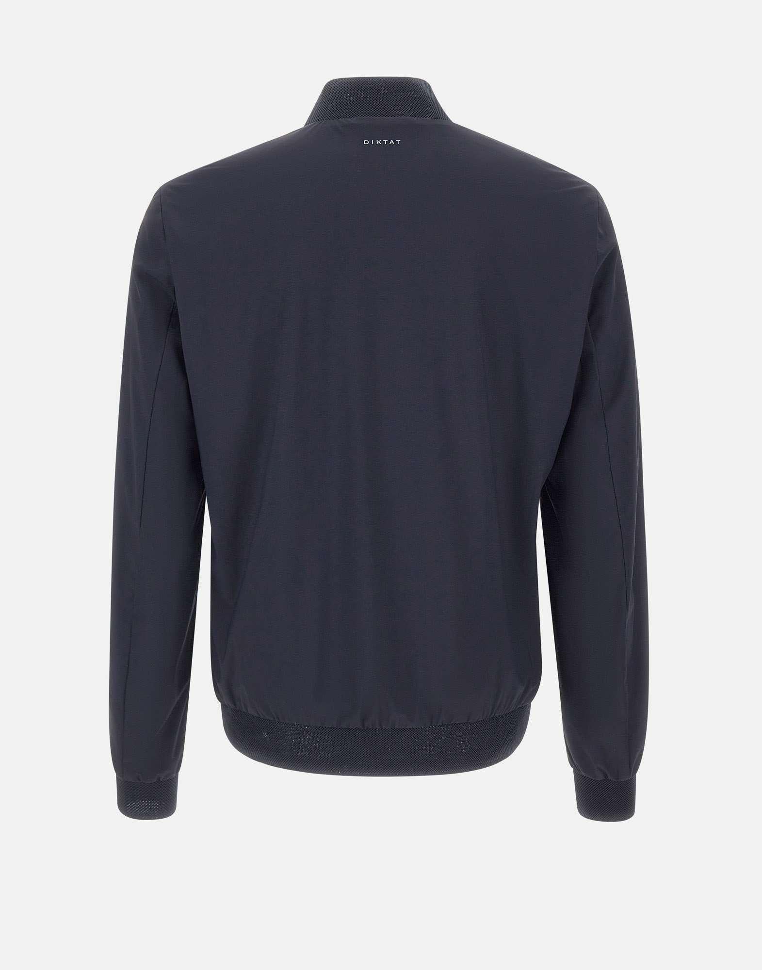 Giacca uomo Diktat "Bomber" realizzata in nylon color blu notte, pensata per un look casual contemporaneo e versatile. Il design bomber è definito da fondo, colletto e polsini in tessuto elasticizzato con trama a intreccio che garantiscono comfort e aderenza. La chiusura con zip a doppio cursore assicura praticità, mentre le tasche laterali con zip completano la funzionalità del capo. Sul retro, sotto al collo, il logo stampato firma il modello con un dettaglio discreto e distintivo.Vestibilità regolare.