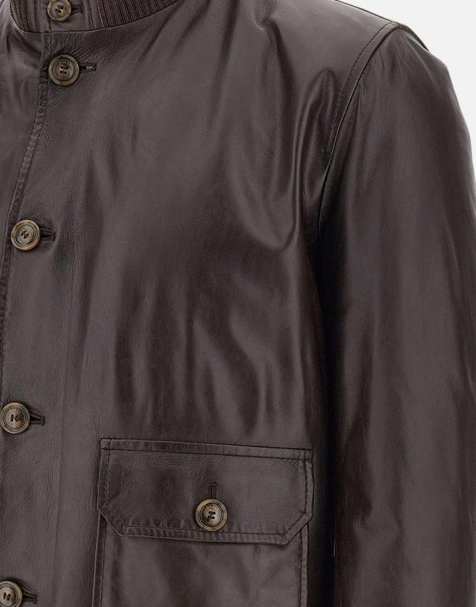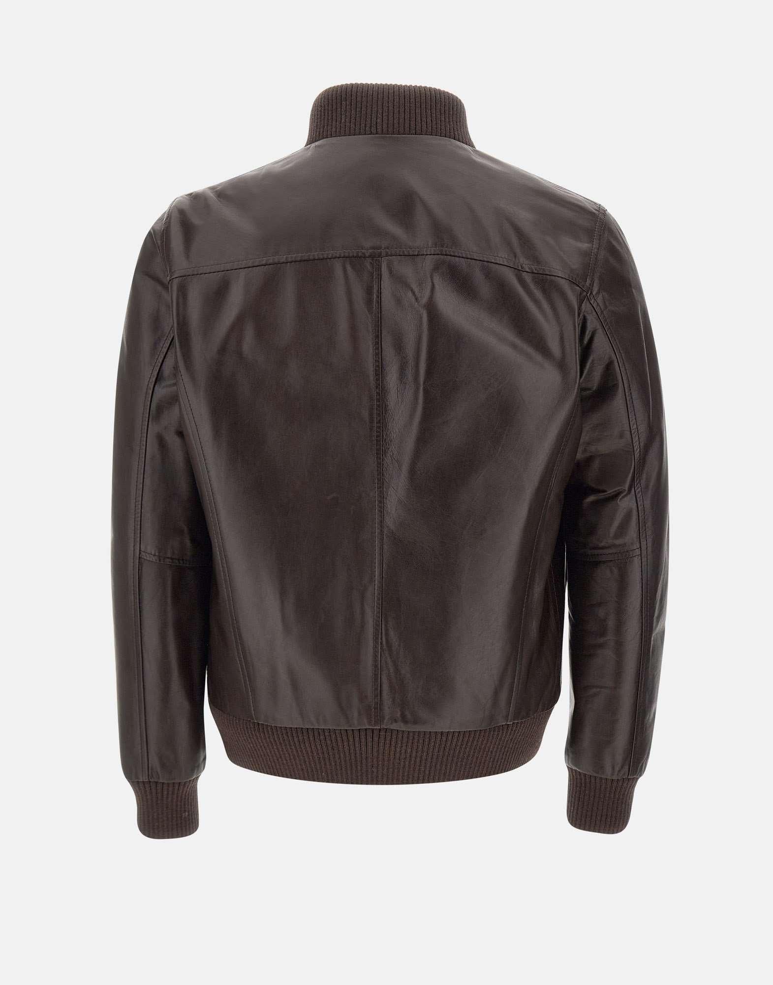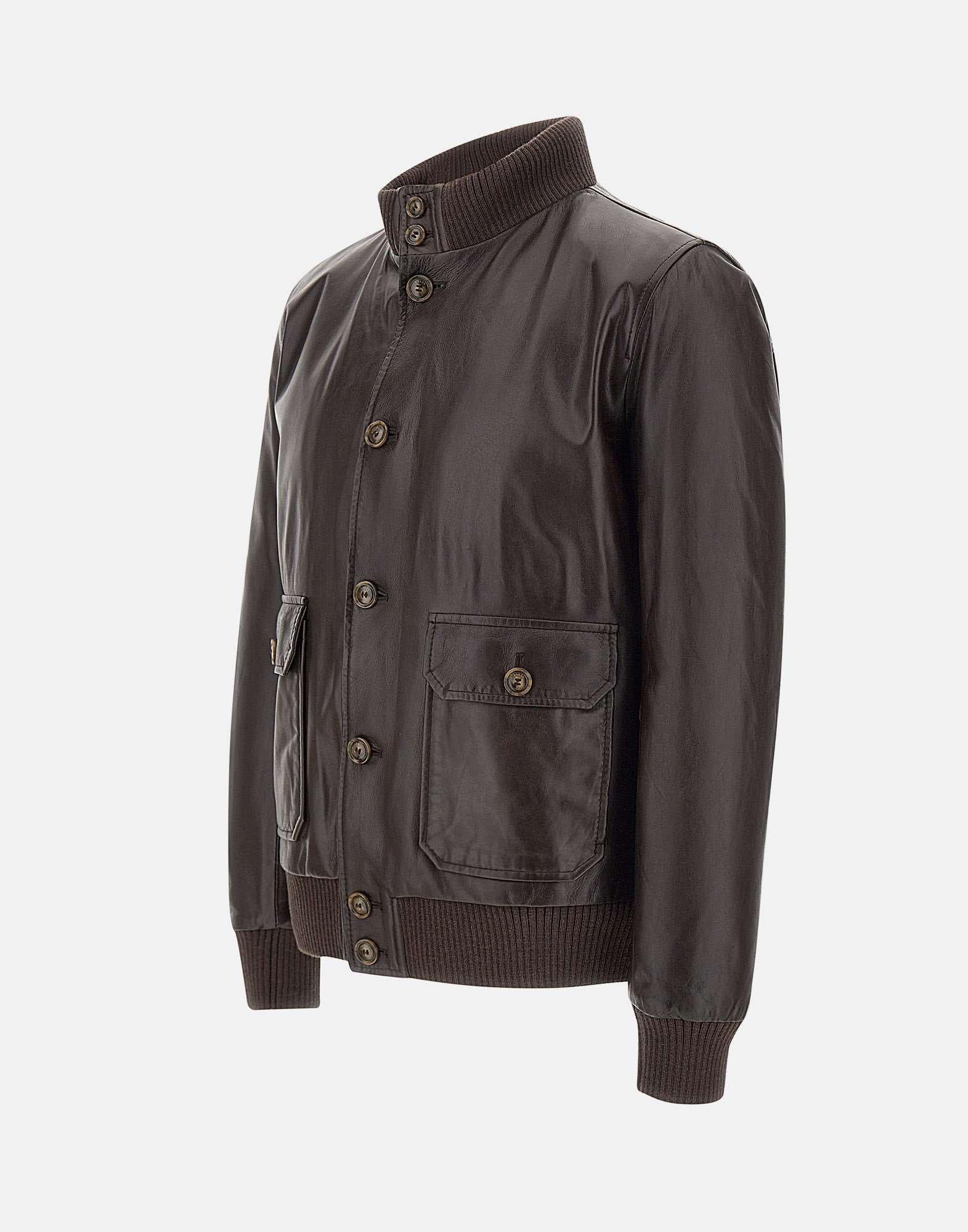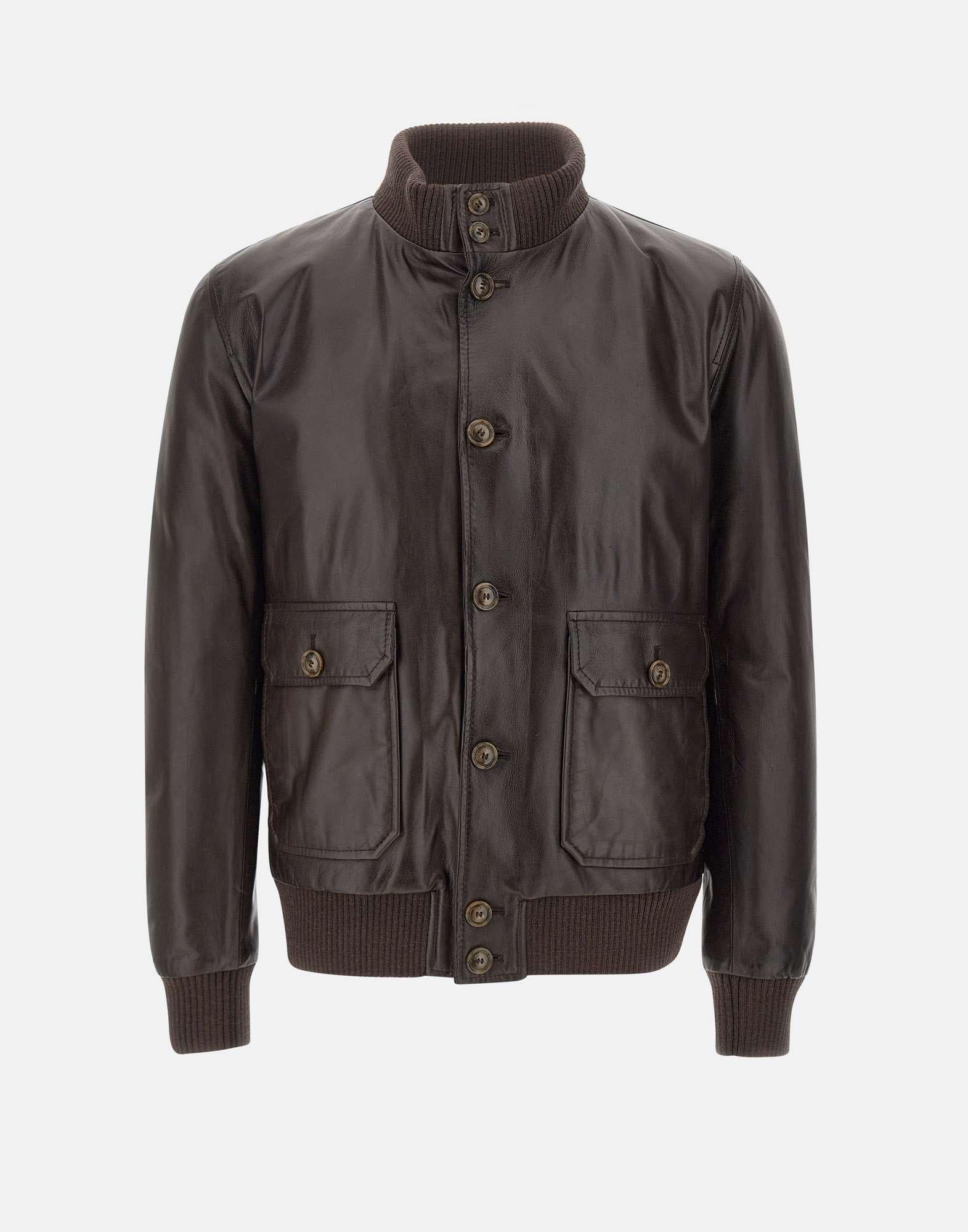 Giubbotto uomo Barba "Vermont" in pregiata pelle ultra morbida, elegante tonalità tabacco, collo e bordi in maglia a coste donano comfort e un accento sportivo, chiusura con bottoni logati a contrasto aggiunge carattere al design, ampie tasche frontali con patta e bottone, foderato e arricchito da imbottitura ecofriendly che assicura calore e leggerezza. Regular fit, Made in Italy, emblema di artigianalità e qualità senza tempo.