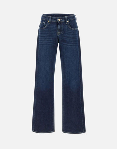 Jeans donna 7 For All Mankind "Low straight Oceandrift" in cotone blu scuro slavato, caratterizzati da una silhouette rilassata a vita bassa che mantiene una linea dritta e classica. Il modello presenta struttura a cinque tasche, chiusura con zip e bottone e passante logato nero. Un denim confortevole e versatile, pensato per un look contemporaneo senza rinunciare alla forma. Ampiezza fondo: 24cm. Made in Italy.