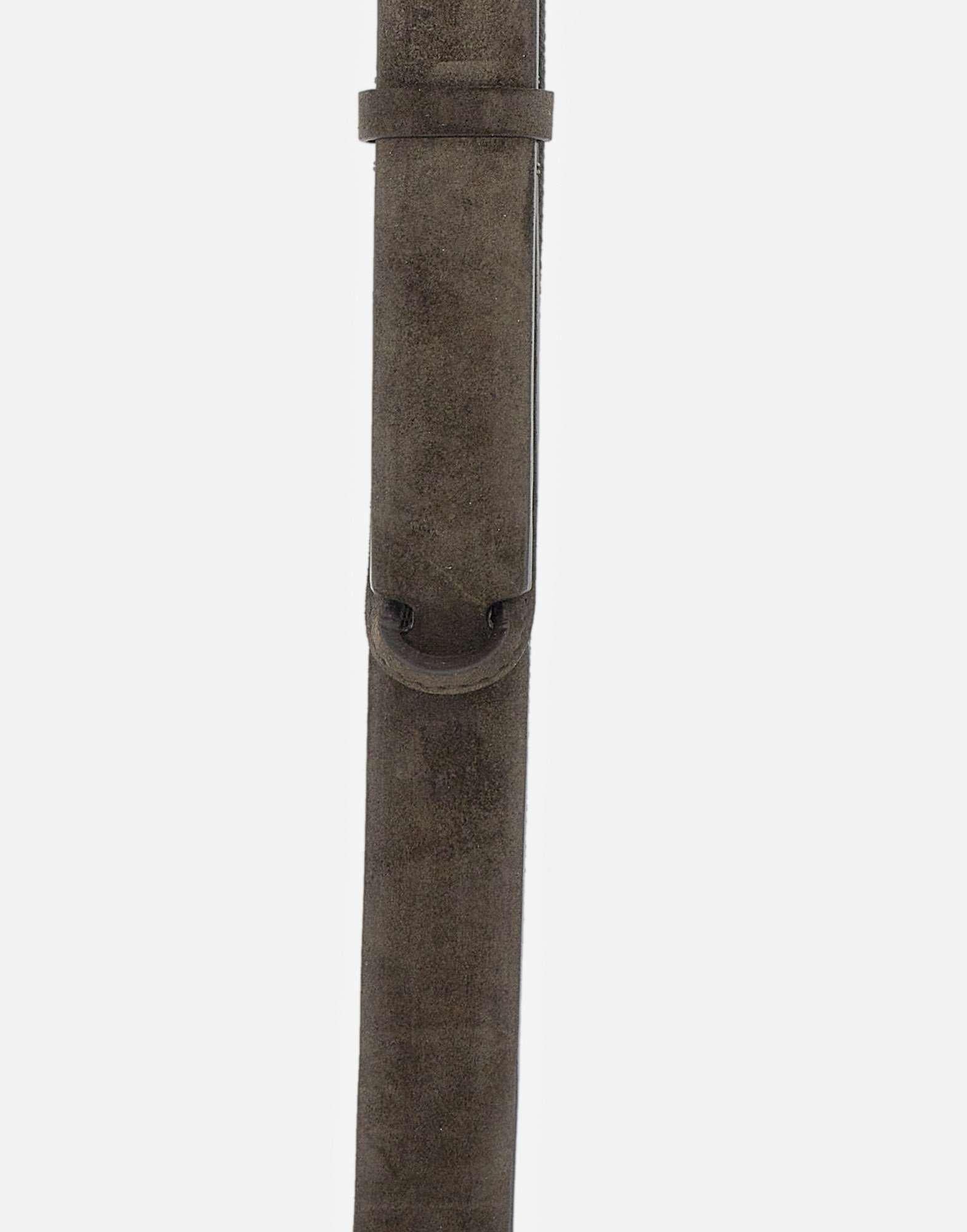 Cintura Orciani "Nobuckle" in camoscio e tessuto testa di moro, dal design essenziale e contemporaneo. Priva di fibbia, presenta chiusura con anello scorrevole e finitura opaca nichel free. Taglia unica regolabile, altezza 3 cm, perfetta per completare look casual con un tocco sofisticato. Made in Italy.