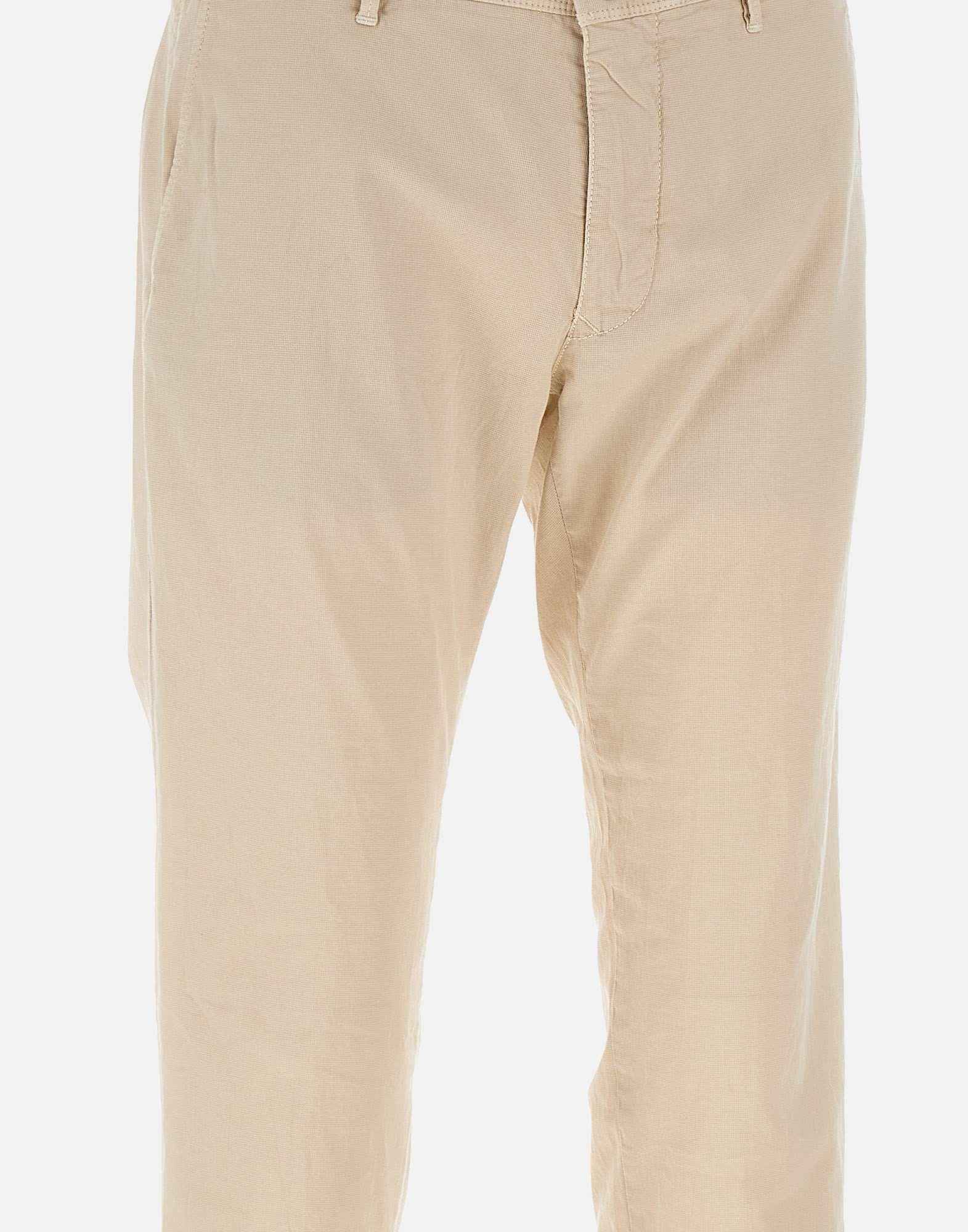 Pantaloni uomo Incotex Slacks "Slowear" in cotone, sabbia, chiusura con zip e bottone, vita con passanti per cintura, tasche laterali a filetto, due tasche monofiletto sul retro e mini logo a ricamo, gamba dritta, slim fit.