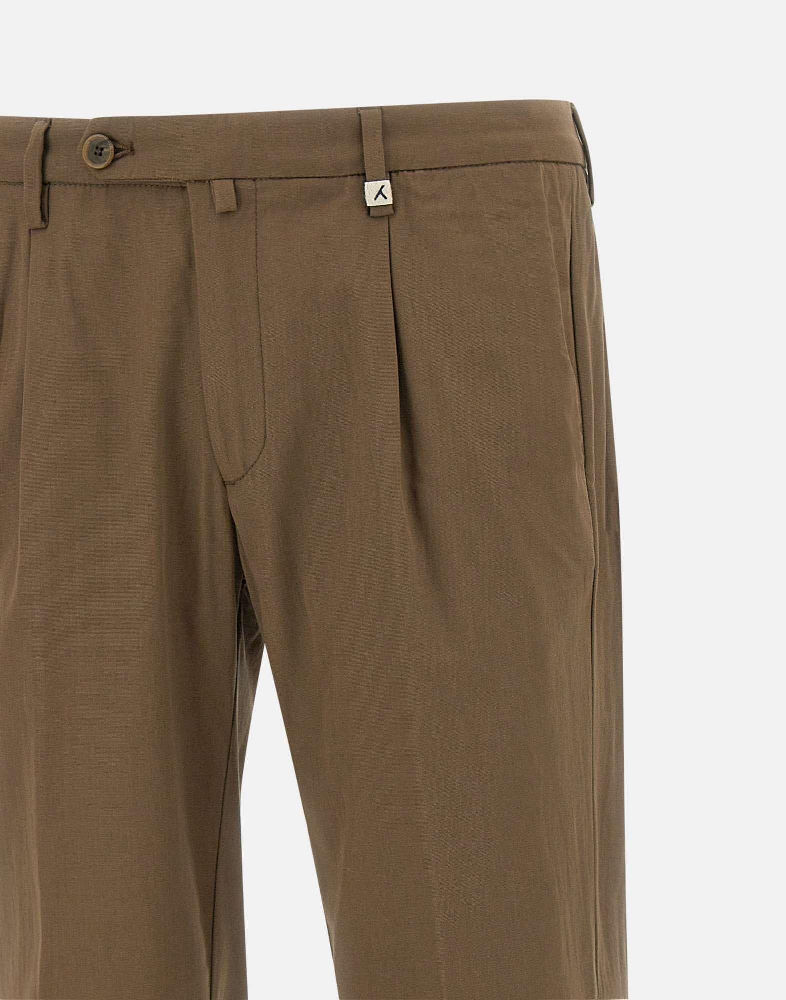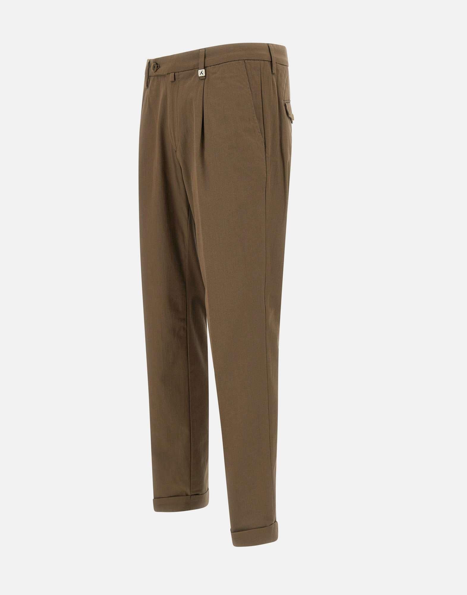 Pantaloni Myths uomo "Zeus P", tabacco, in cotone stretch, Research Attitude Ice Cotton Collection, tessuto Easy care, traspirante, confortevole al tatto e all'indosso, chiusura con bottoni e zip, vita regolare con passanti per cintura, tasche laterali a filetto, tasche sul retro con bottone, pince frontale, fondo gamba 18cm con risvolto 3,5cm, slim fit. Made in Italy