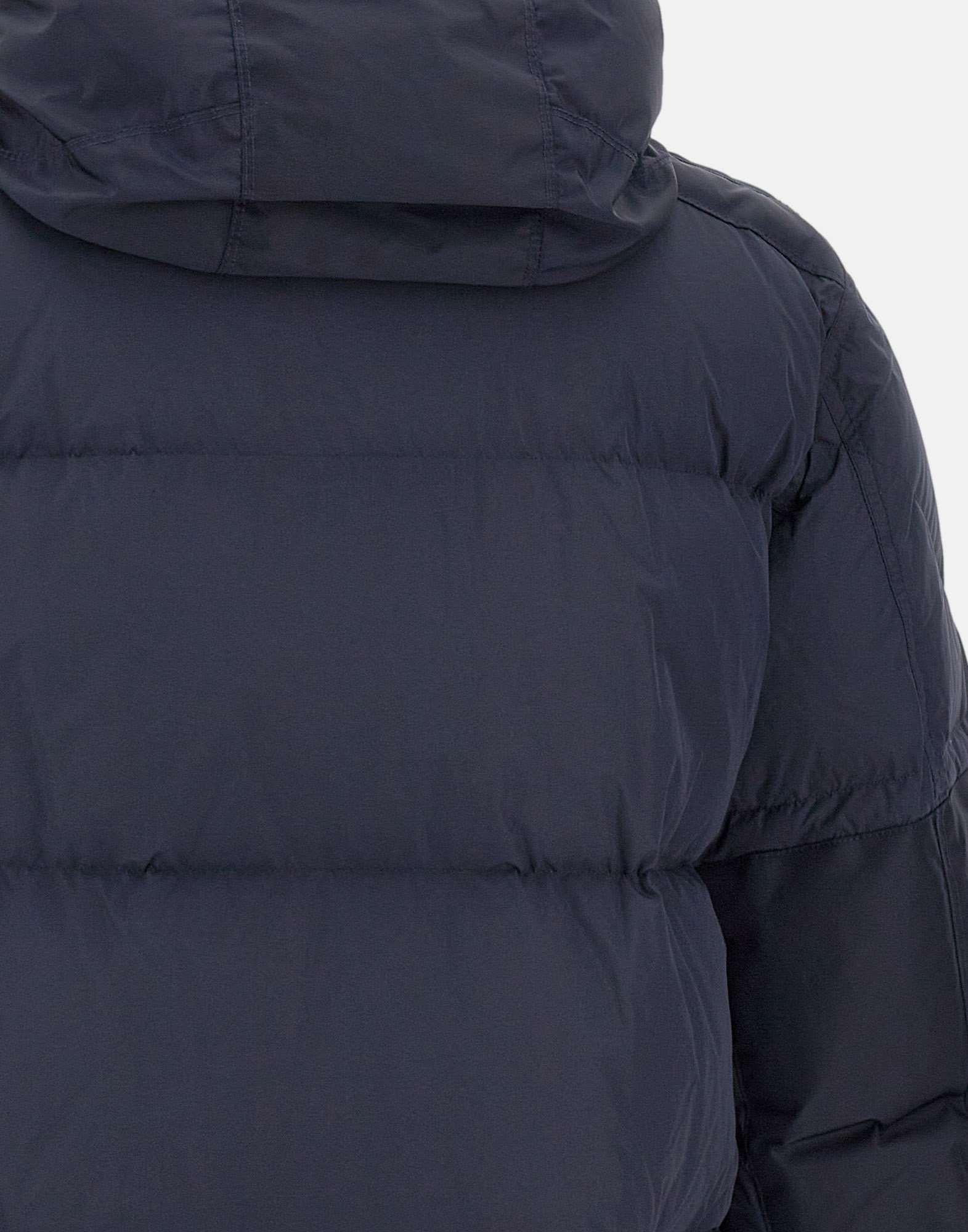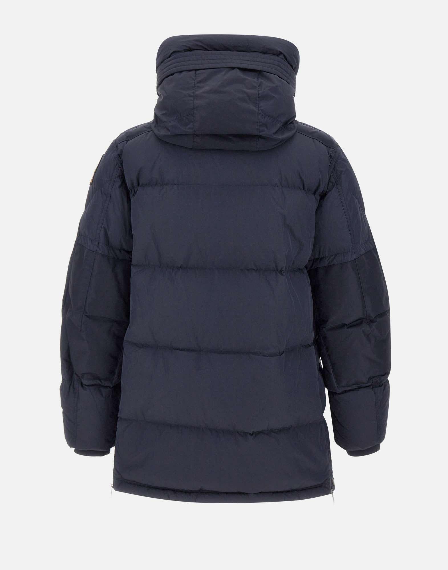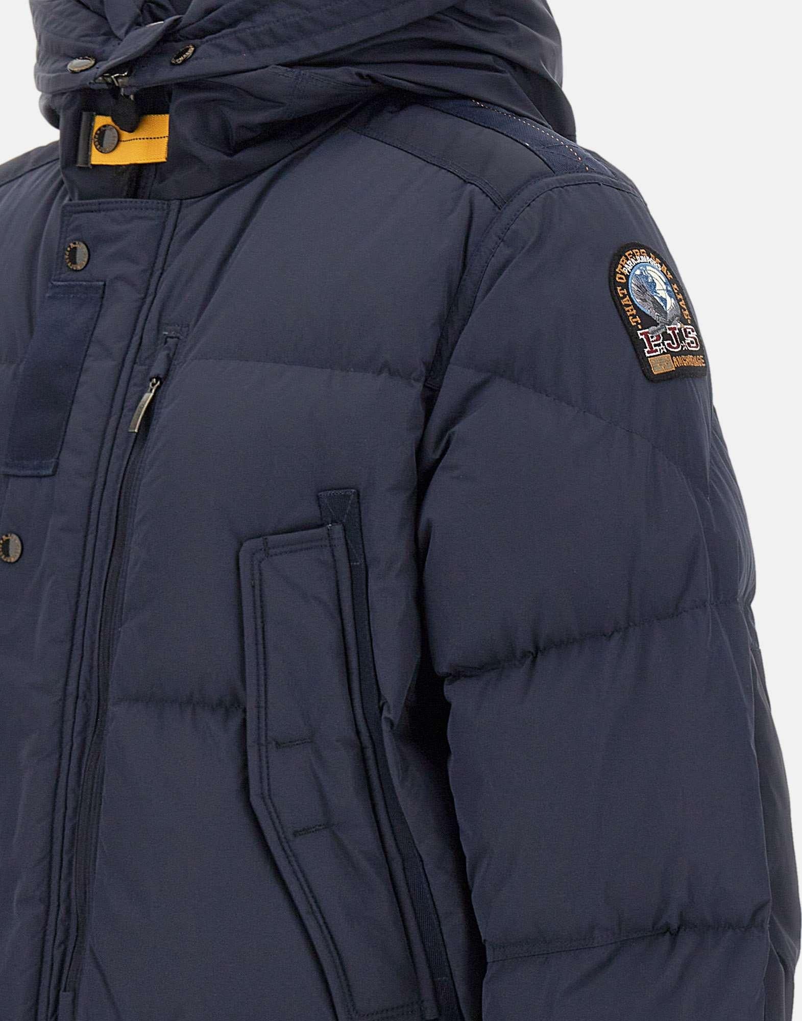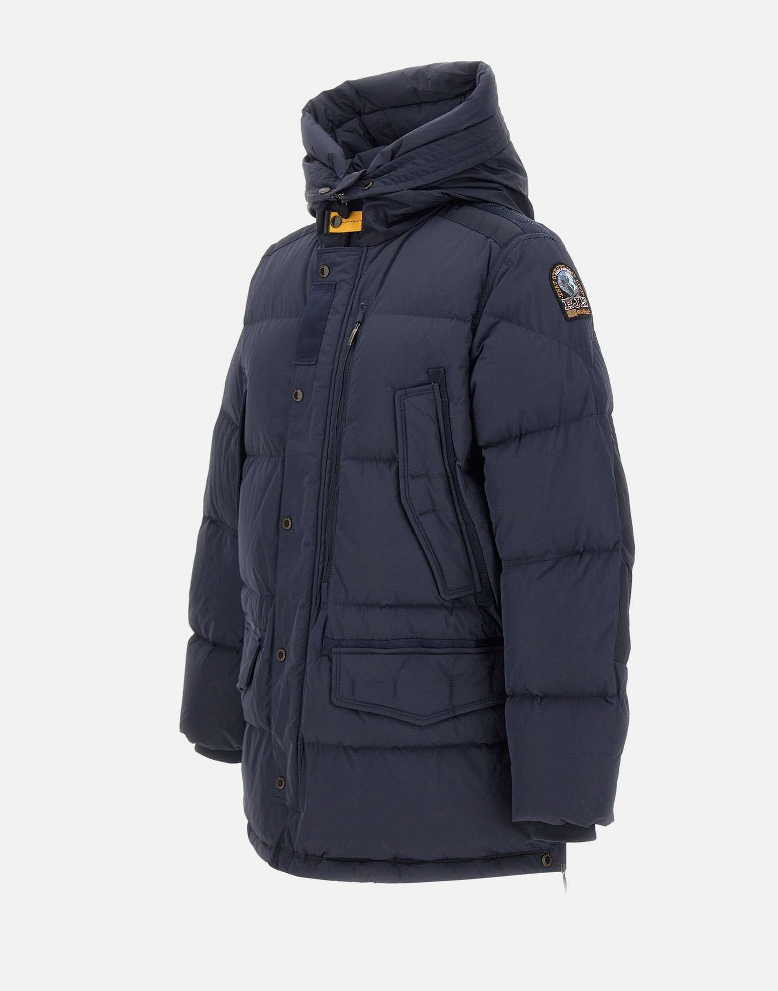 Piumino uomo Parajumpers "Harraseeket" colore blu, realizzato in tessuto micro reps di poliestere ad alta densità con effetto memory, idrorepellente e traspirante. Limbottitura in piumino e piume 90/10 assicura calore e leggerezza, ideale per climi freddi (Classe di temperatura 2).