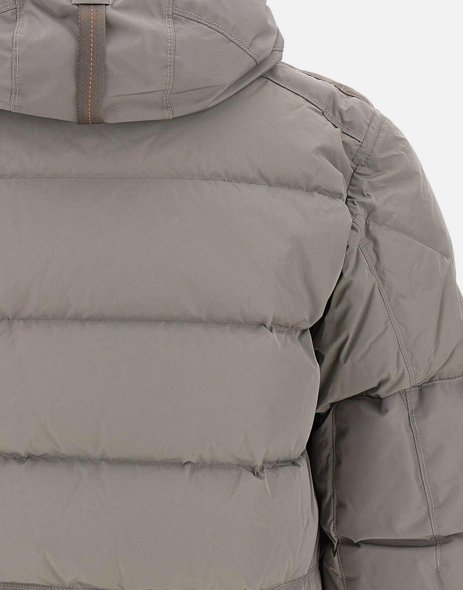 Piumino uomo Parajumpers "Wilmont" colore grigio, realizzato con tessuti tecnici ad alte prestazioni. Il corpo principale è in micro reps high-density di poliestere con effetto memory e trattamento idrorepellente, abbinato a inserti in oxford di nylon riciclato laminato. La fodera in taffetà di nylon riciclato 20 denari dona leggerezza e comfort, mentre limbottitura in piuma danatra certificata RDS, con fill power 735, garantisce un elevato isolamento termico.