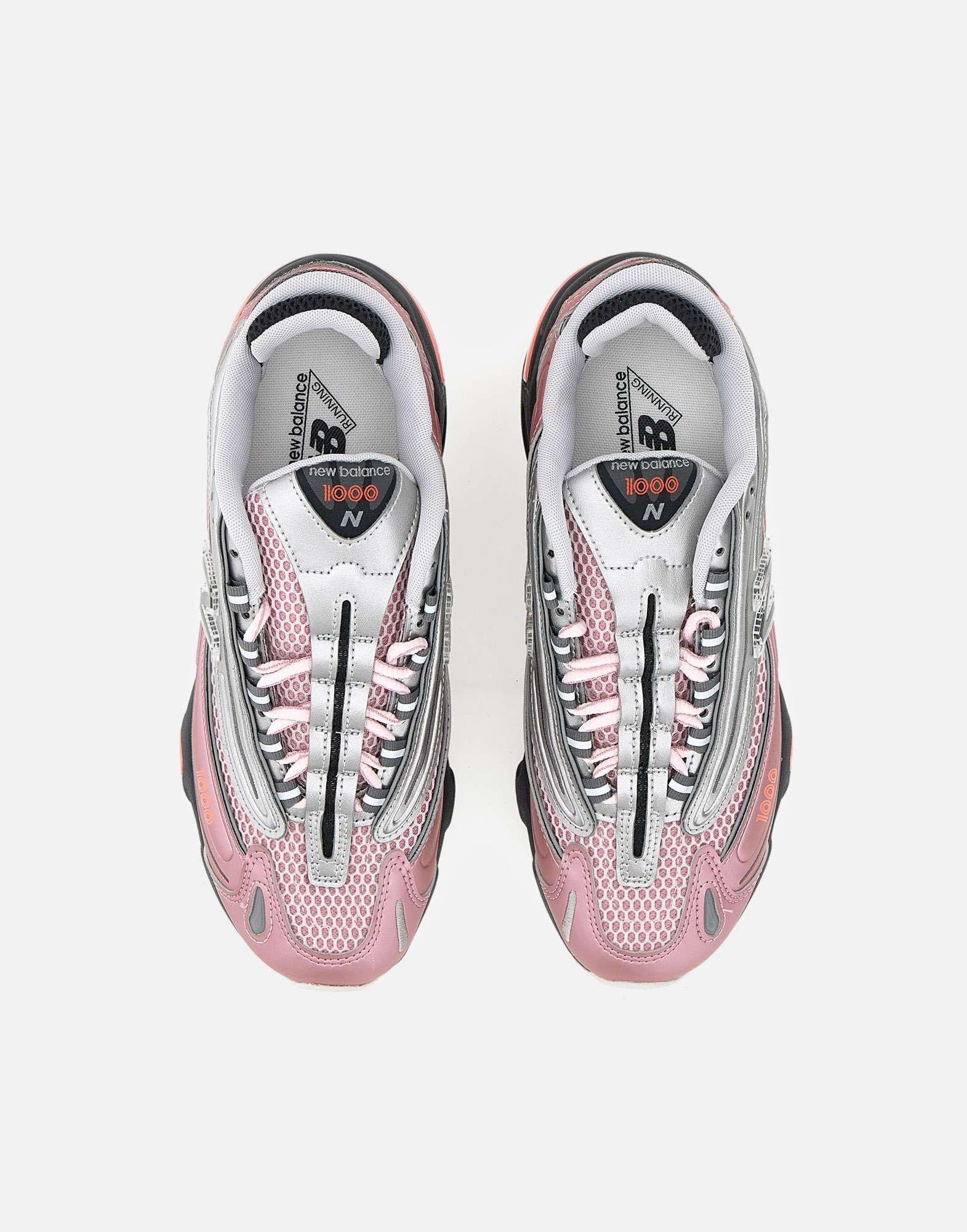 Sneakers New Balance "M1000U", colore rosa e grigio, combinazione di poliuretano e intersuola ABZORB con ammortizzazione sul tallone e sull'avampiede, tecnologia Stability Web nella suola per un ulteriore sostegno dell'arcata plantare, trama a rete, dettagli riflettenti, logo "N" gommato, struttura di allacciatura esterna con occhielli in nylon. Calzata regolare. Taglia US7 corrisponde eu/it 40. Converti la tua taglia abituale con la tabella di conversione CALZATURE UNISEX USA