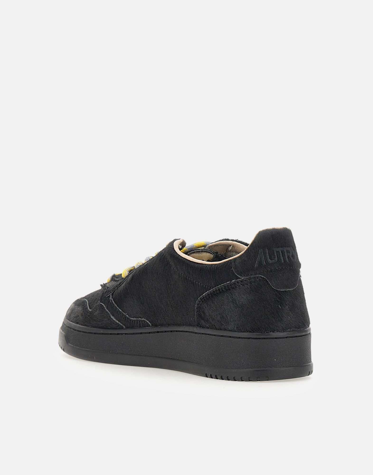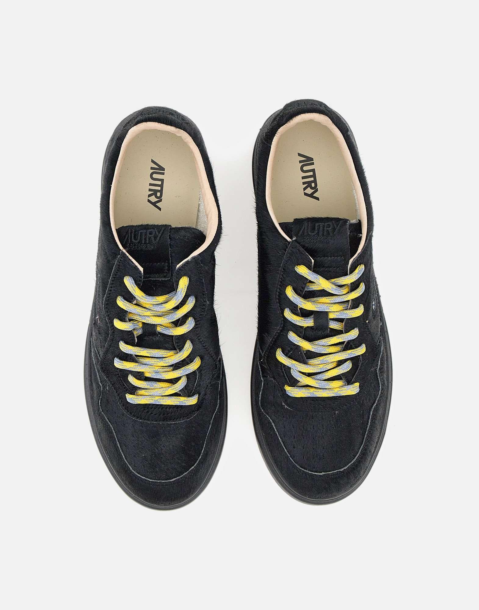 Sneakers da uomo Autry "Medalist Low" in cavallino nero, versione invernale delliconico modello ispirato al tennis anni 80. La tomaia in cavallino dona un effetto materico ricercato, mentre linterno in pelle garantisce comfort e traspirabilità. La suola in gomma tono su tono assicura aderenza e durata. Completano il design i lacci gialli a contrasto, con una coppia aggiuntiva di lacci bianchi intercambiabili inclusa. Una sneaker distintiva, pensata per affrontare linverno con stile ed esprimere personalità attraverso il dettaglio cromatico.