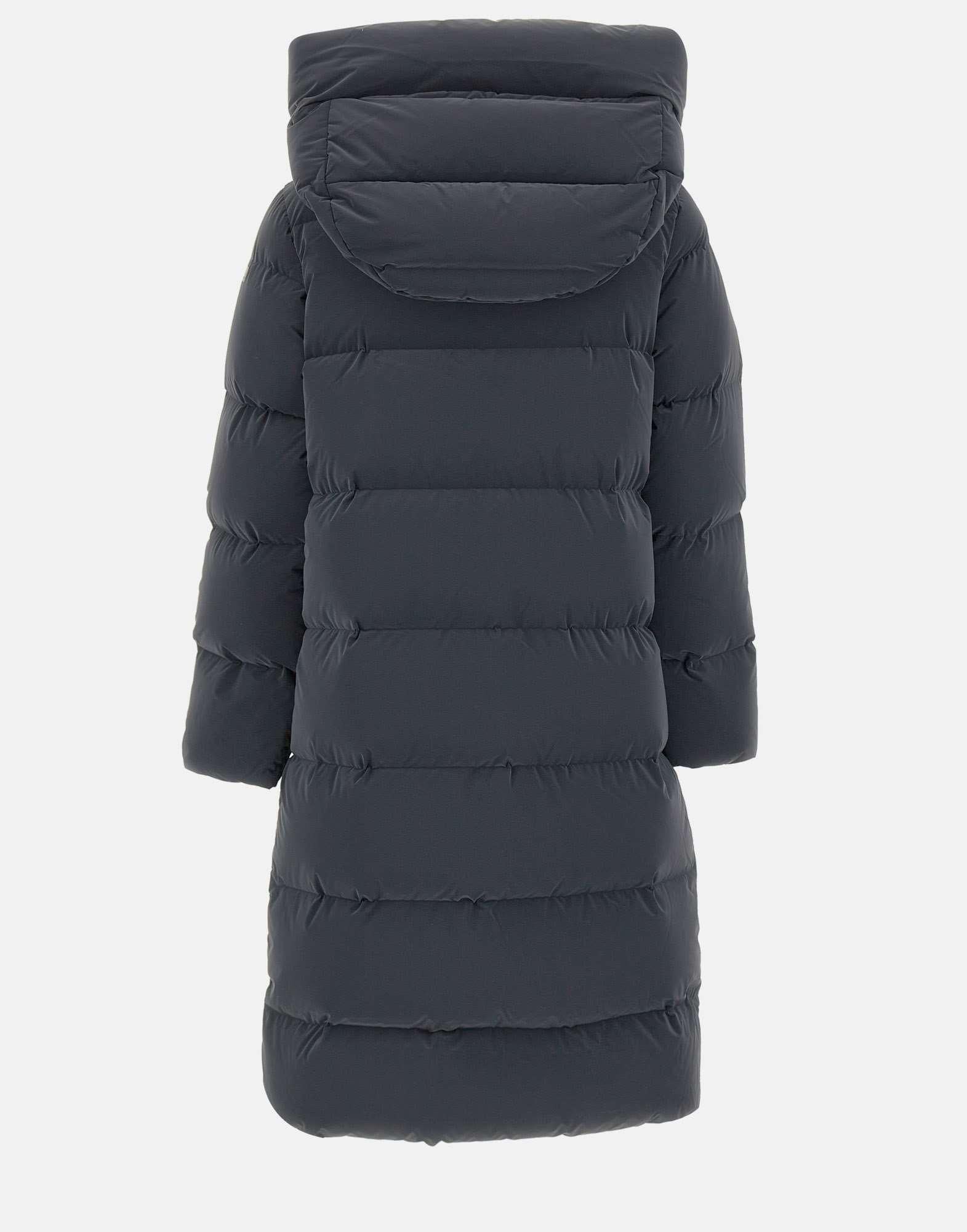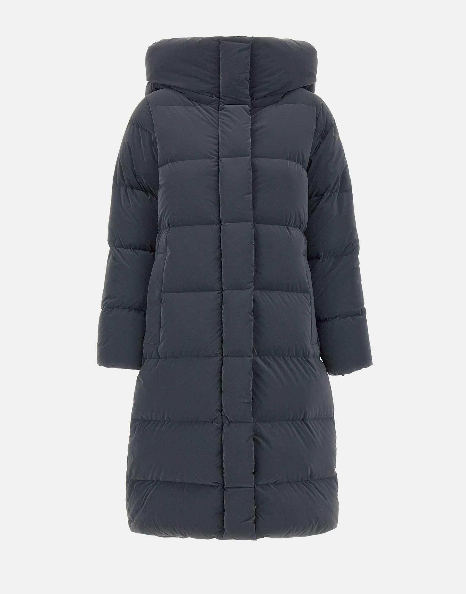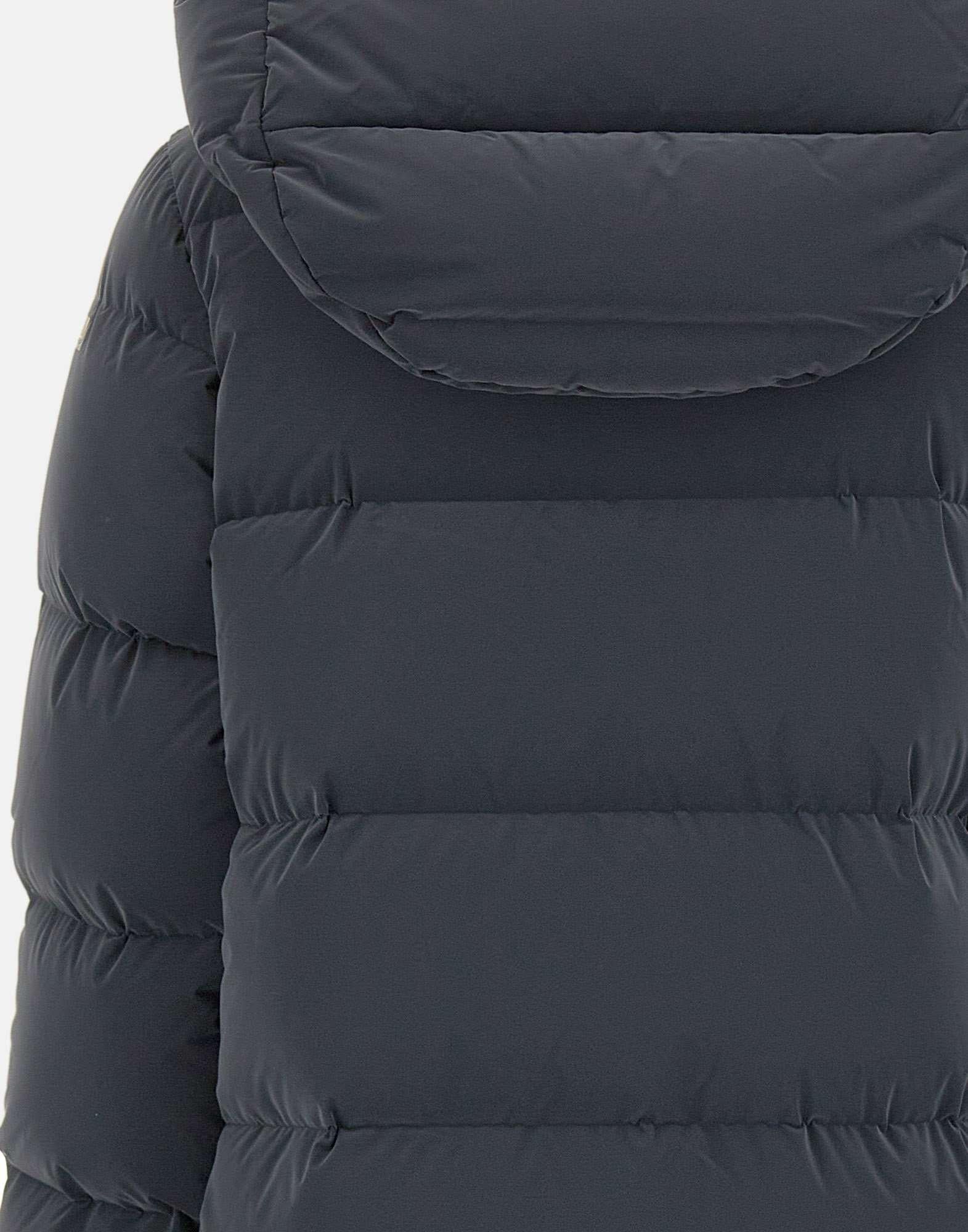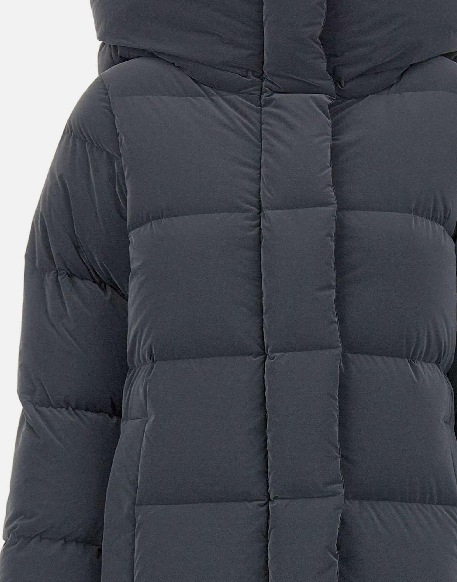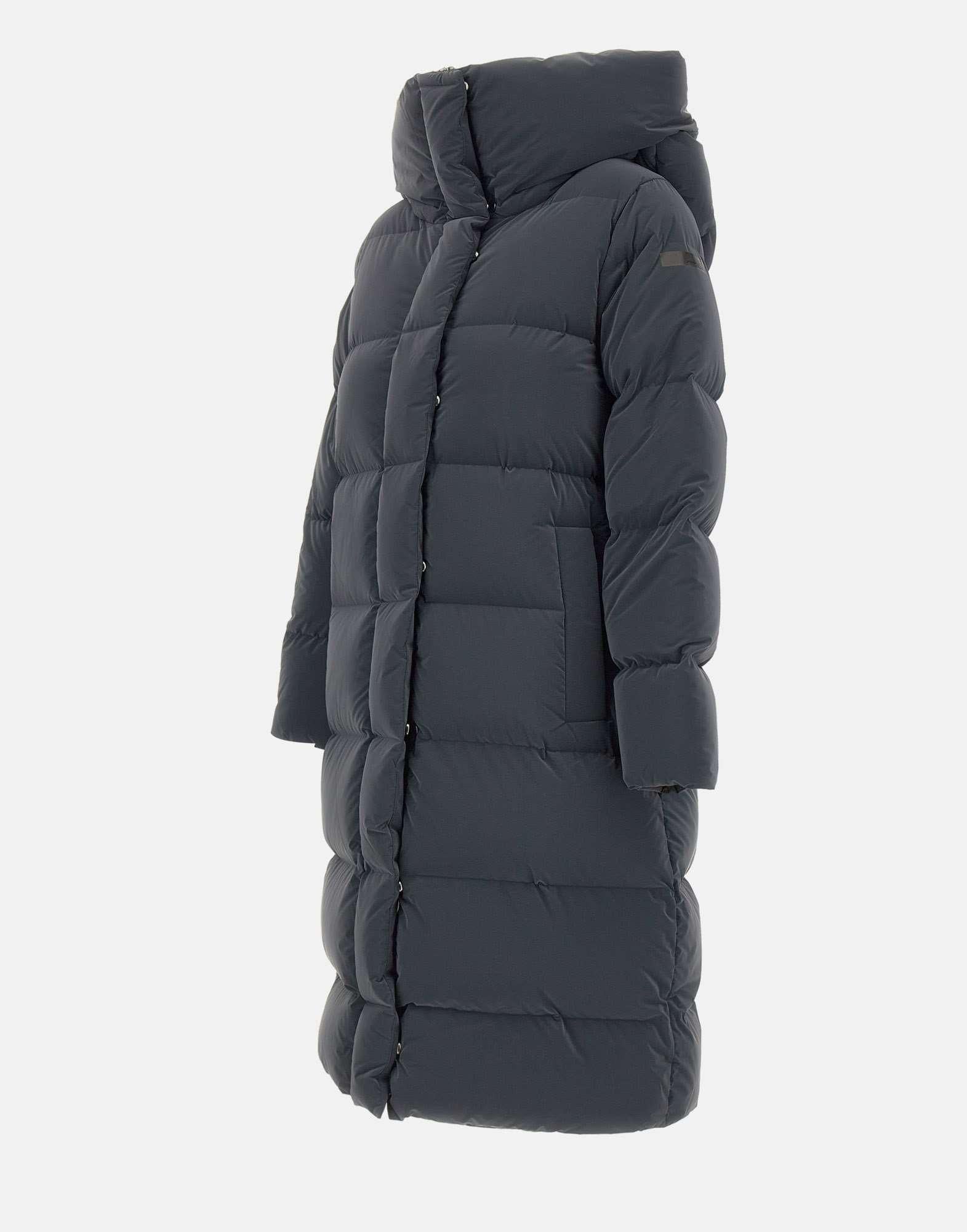 RRD donna "Superrduck! Tubic 14 Parka Deta Sleeve Wom Jkt" in tessuto Stratofabric grigio antracite, esclusivo del brand, caratterizzato da un touch estremamente morbido e da un effetto cangiante. Il design presenta un importante cappuccio, trapuntatura orizzontale con ampi canali tubici che custodiscono limbottitura in piuma danatra 90/10, garantendo calore e leggerezza. La zip termonastrata nascosta da pattina, le tasche a pistagna e il logo a microiniezione sulla manica sinistra completano un capo dallo stile tecnico e sofisticato. Regular fit.