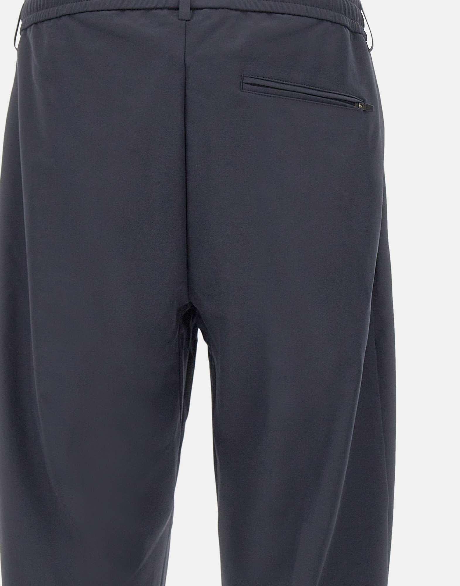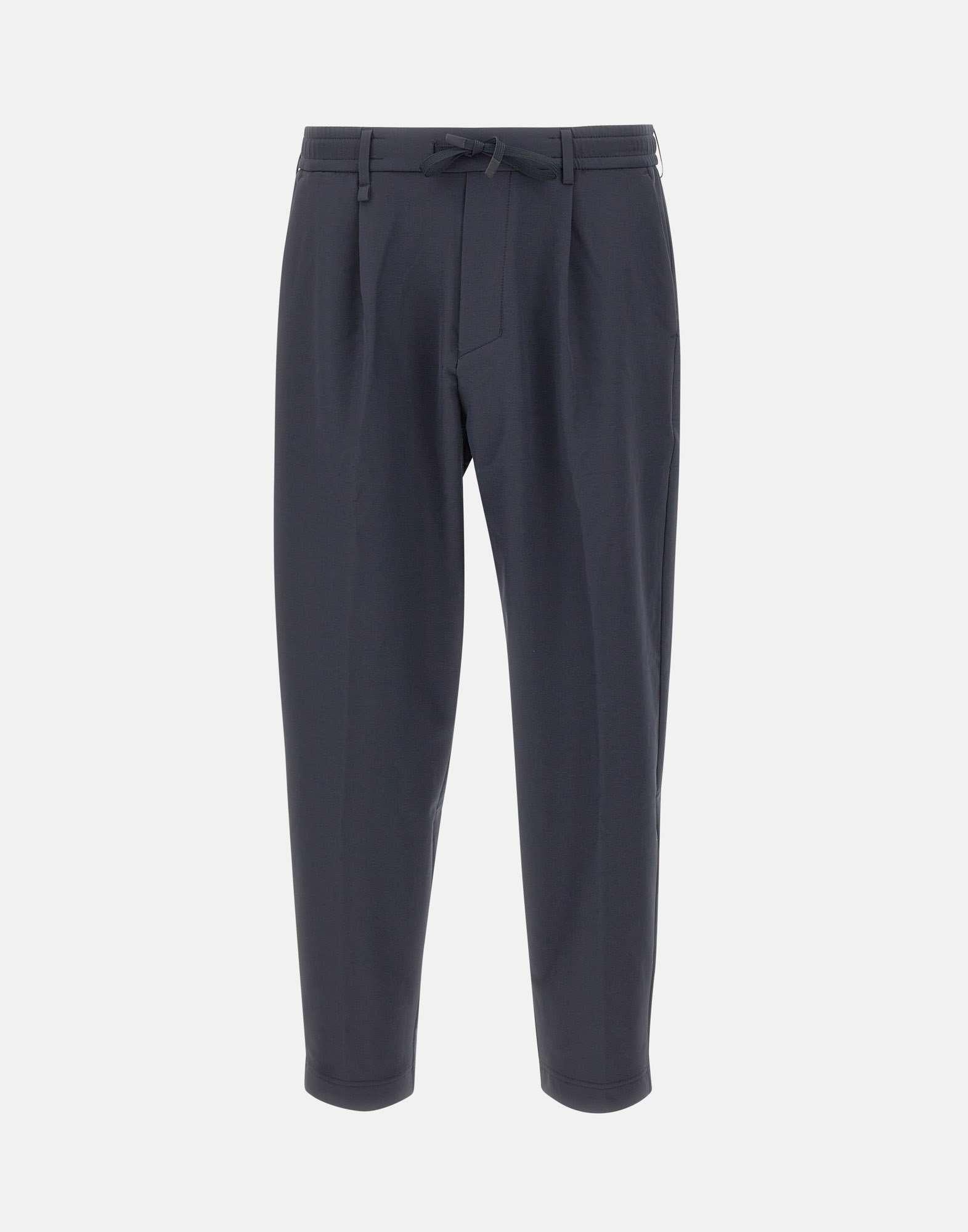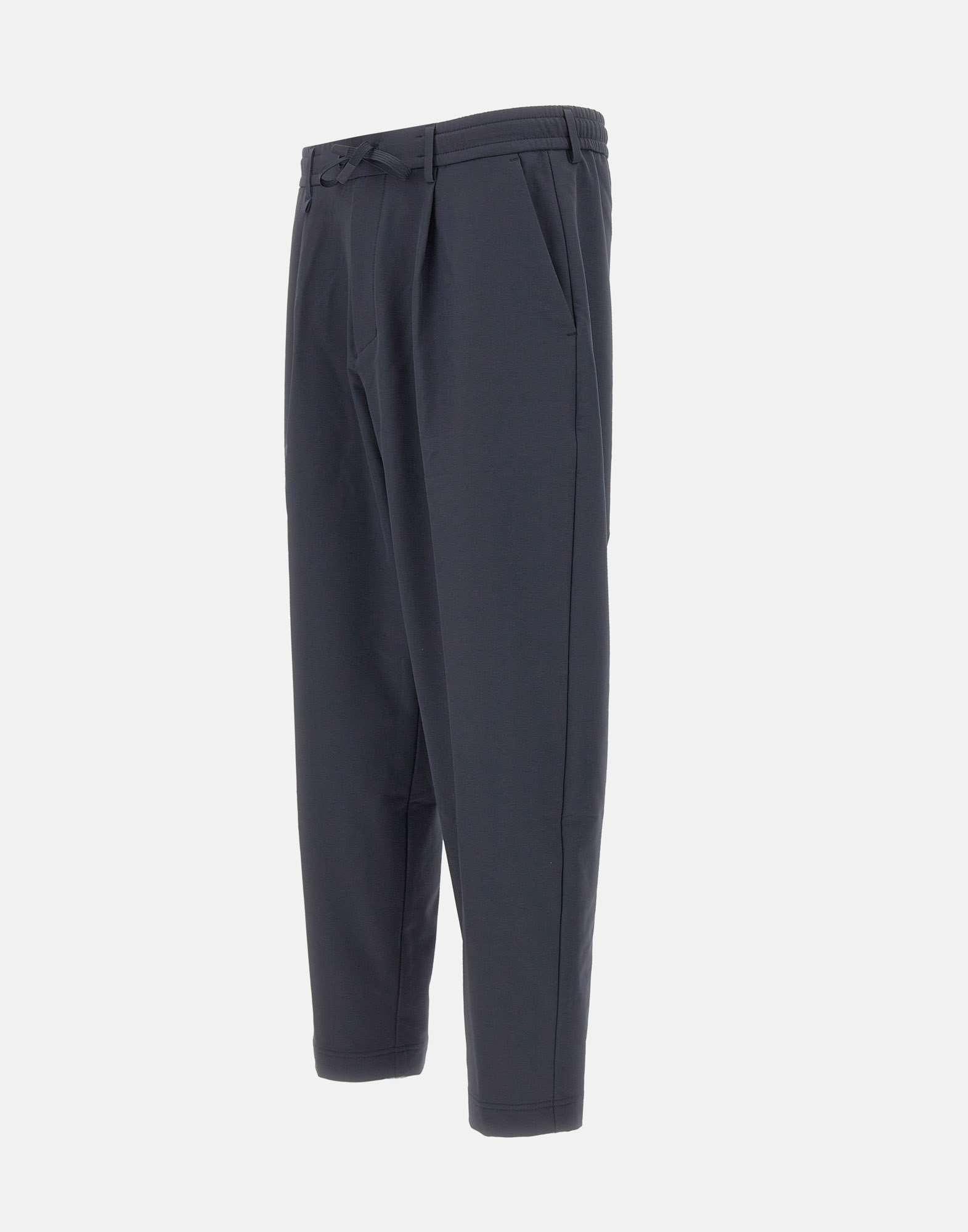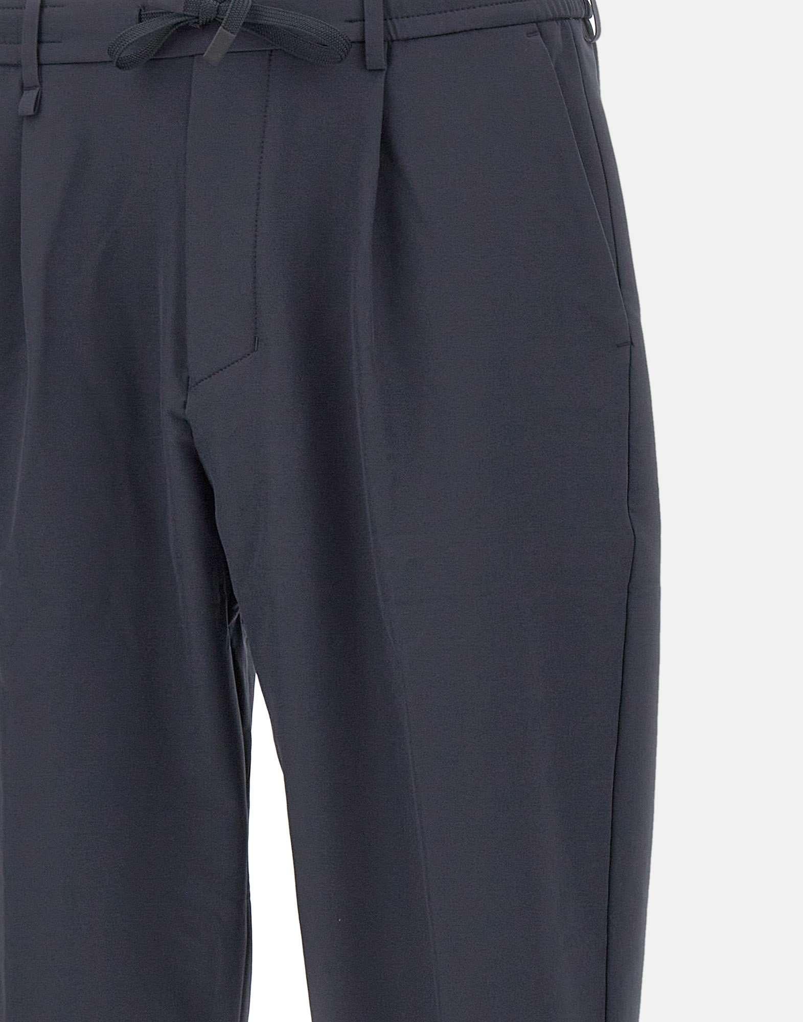 Pantaloni uomo Boss "T_Convert-Pleat", realizzati in tessuto blu navy elasticizzato in quattro direzioni per garantire massimo comfort e libertà di movimento. Finitura easy-care che mantiene il capo sempre in ordine. Presentano pince frontali, vita semi-elasticizzata con passanti per cintura, chiusura con zip e tasche alla francese. Taglio a cono con fondo 17 cm e interno gamba 65 cm, vestibilità tapered fit.