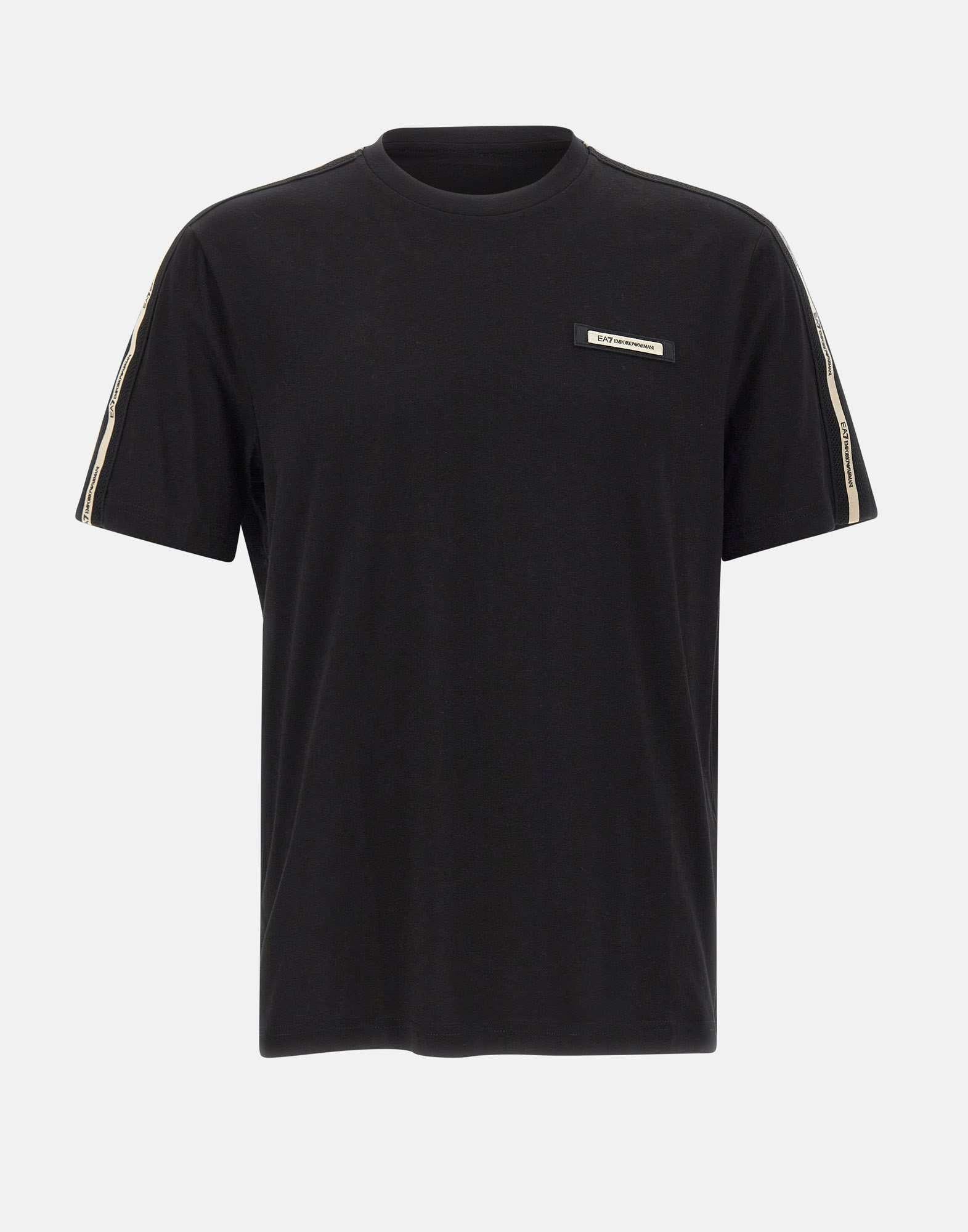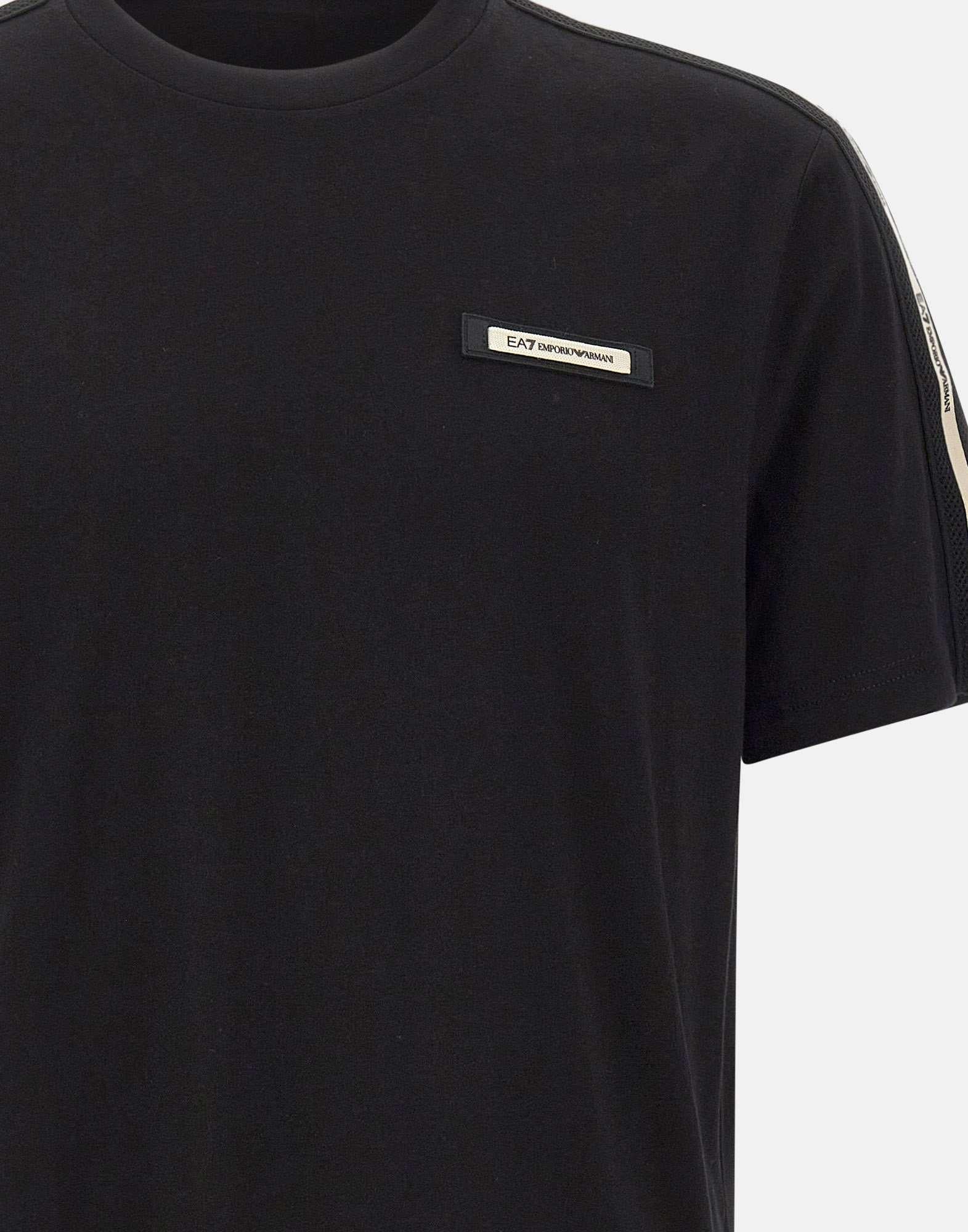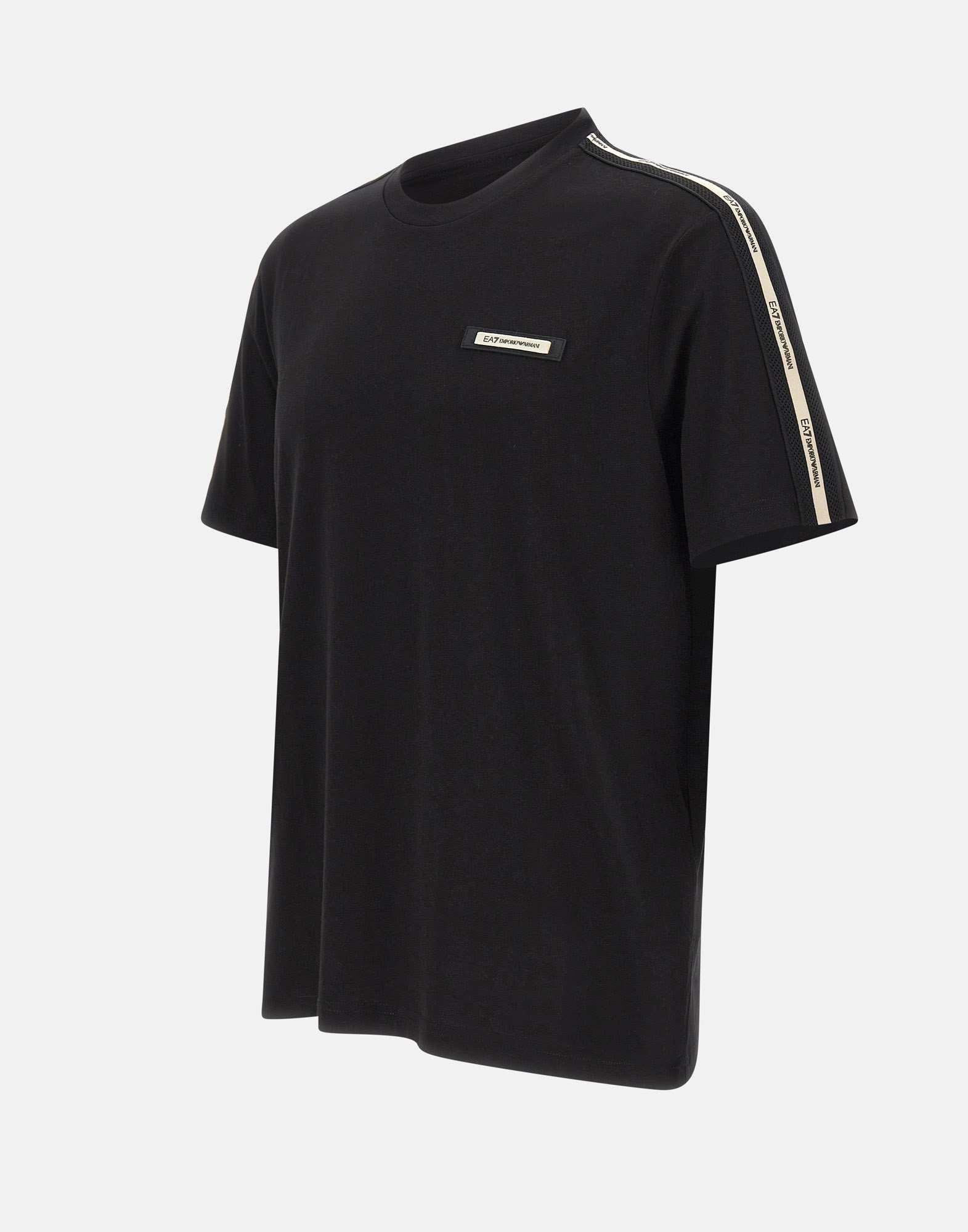 T-shirt uomo EA7 "Logo Series" realizzata in morbido cotone color nero, pensata per uno stile sportivo dall'attitude urbana. Questa t-shirt girocollo a maniche corte si distingue per il dettaglio logo tape a contrasto sulle spalle e per il logo EA7 a contrasto sul petto, elementi grafici che definiscono l'identità della linea Logo Series. La vestibilità regular fit assicura comfort e facilità di movimento, rendendo questa t-shirt ideale per la palestra e per il tempo libero. Un capo versatile della collezione EA7, perfetto per creare total look sportivi in abbinamento ai jogger di collezione e per completare outfit casual dal gusto premium.