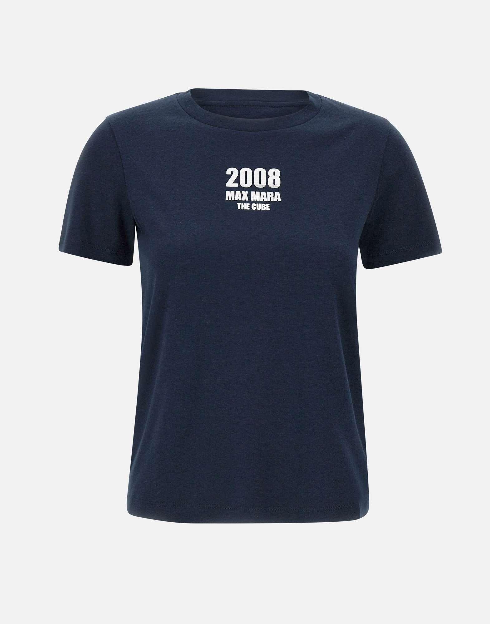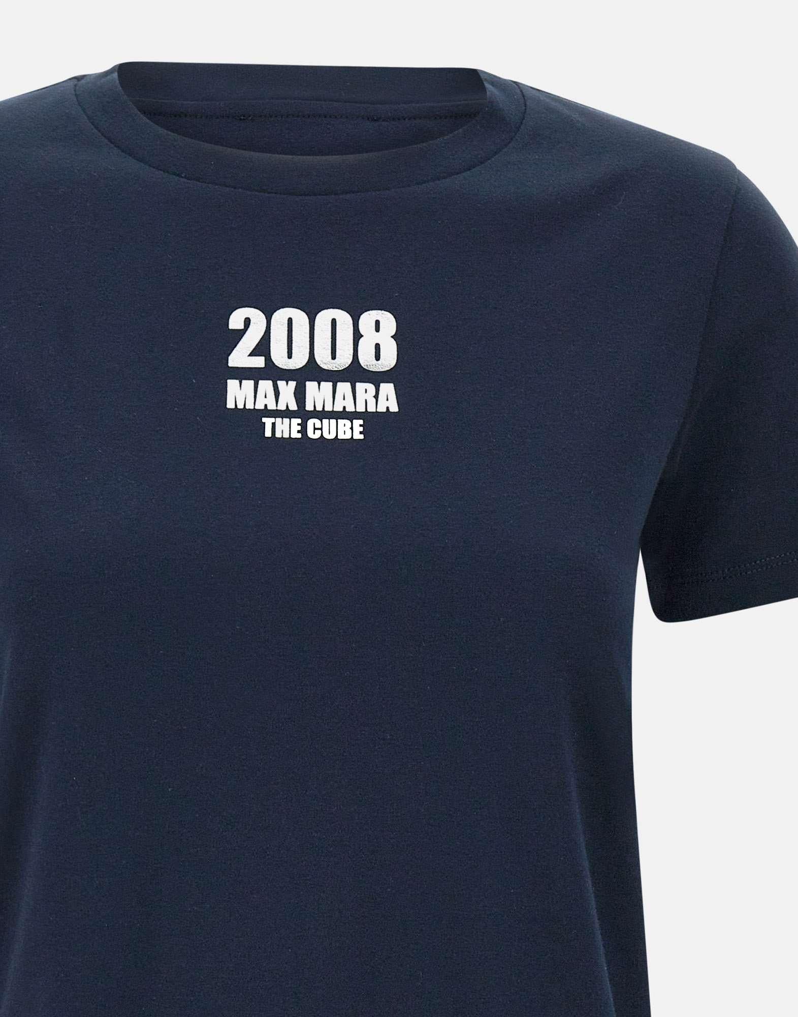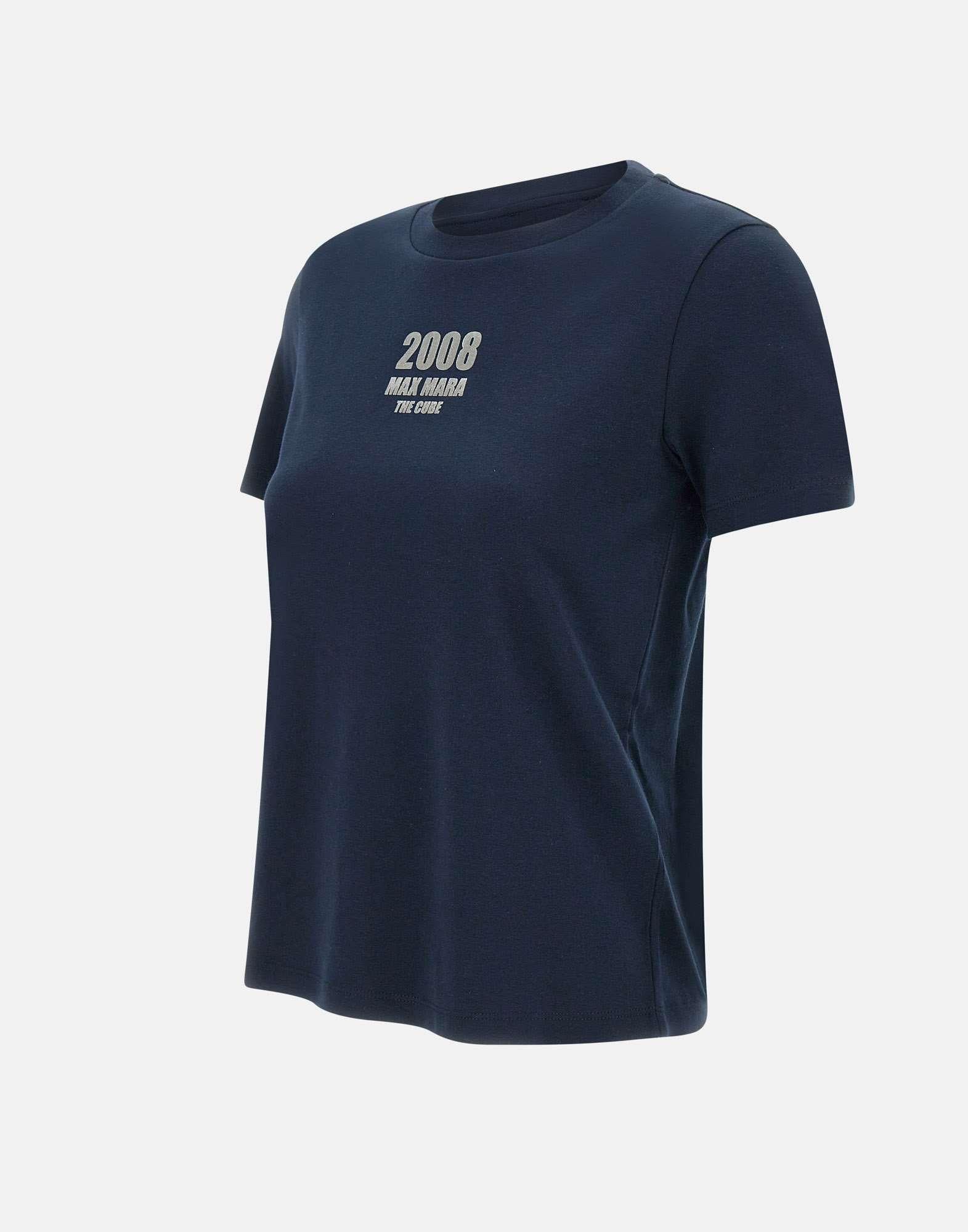 T-shirt "Quieto" donna 'S Max Mara in cotone, blu navy, stampa logo argento frontale, maniche corte, girocollo, regular fit.