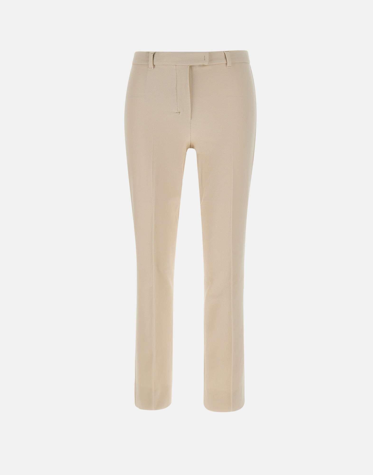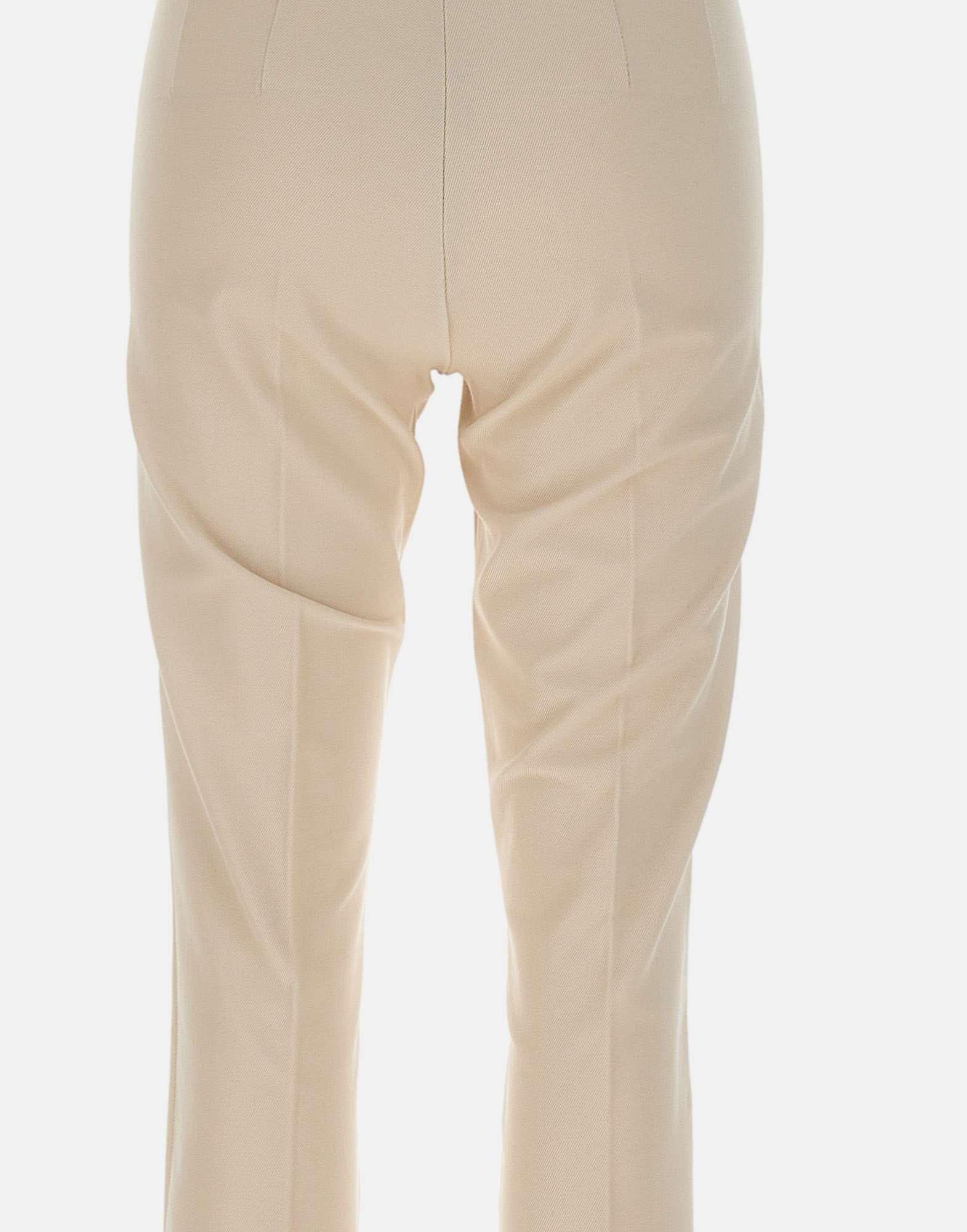 Pantaloni 'S Max Mara "Umanità", burro, in tessuto di misto cotone stretch, costruzione sartoriale, linea leggermente svasata al fondo, chiusura con listino alto in vita, zip con patta e gancetto, piega stirata, passanti per cintura, pinces cucite in vita sul retro, fondo 18cm, interno gamba 70 cm( taglia40), slim fit