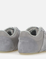 "Anatomic Sneakers" donna MM6 Maison Margiela, colore grigio ghiaccio, in morbidissima pelle, inserti in camoscio, interno misto cotone, lacci a chiusura, numeric signature MM6 laterale, white stitch line sul retro, fori per la traspirazione, calzata regolare, suola in gomma, made in Italy.