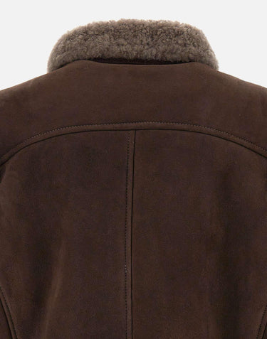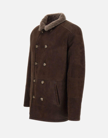 Giacca uomo Barba "Merlin" in pregiata pelle di montone ultra morbida, sofisticata tonalità cioccolato, colletto con linguetta e bottone e interno in shearling offrono calore avvolgente e un tocco di lusso, gioco di tagli sartoriali con impunture a vista, tasche laterali a filo, chiusura doppiopetto con bottoni logati, vestibilità regolare. Un capo Made in Italy, simbolo di eccellenza manifatturiera e gusto intramontabile