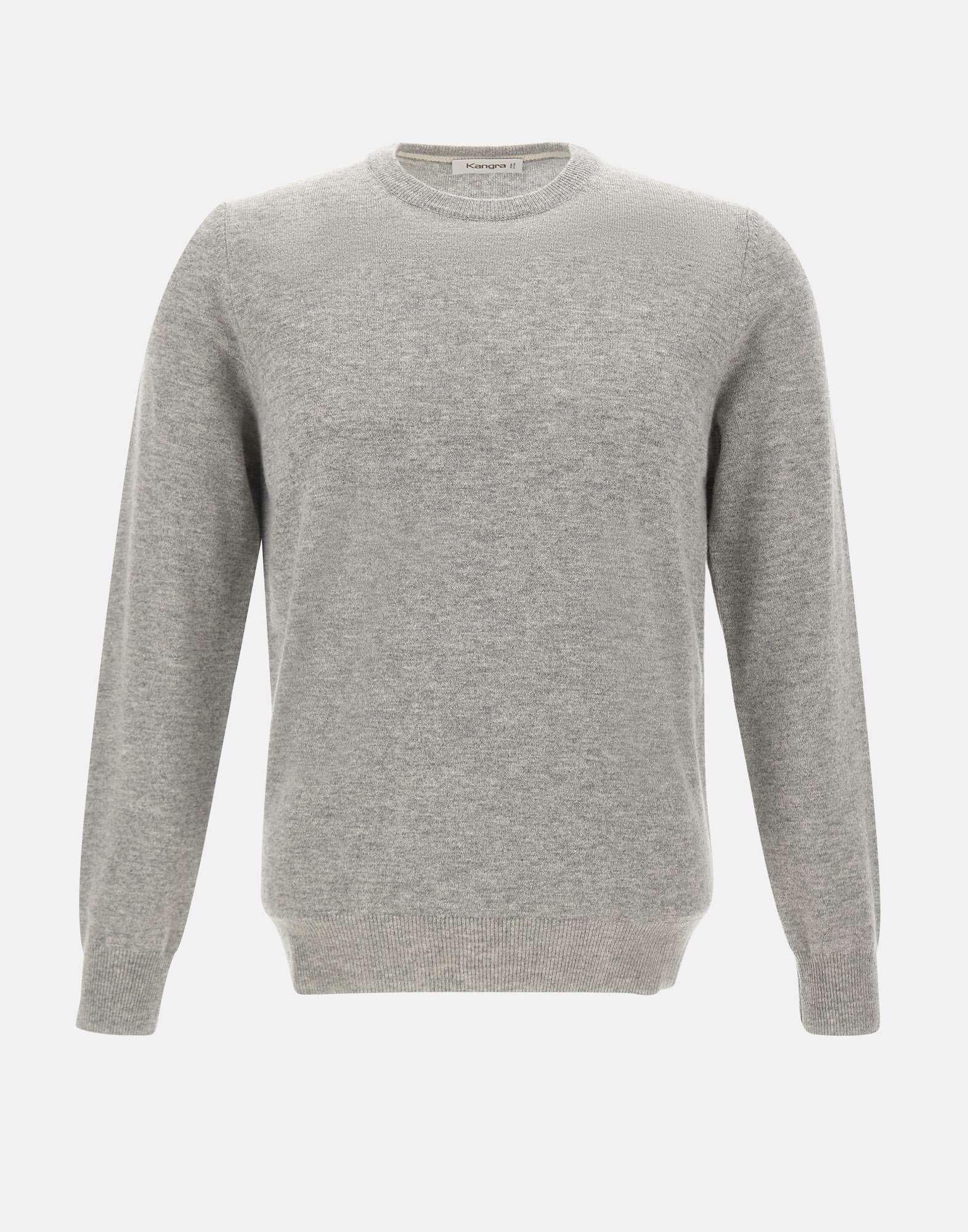 Maglia Kangra da uomo in morbida lana e cashmere color grigio, esempio di eleganza essenziale e comfort naturale. Presenta girocollo basico, maniche lunghe e bordi a costine, per una vestibilità comoda e impeccabile in ogni occasione. Un capo iconico del guardaroba maschile, perfetto da indossare da solo sotto giacche e cappotti. Regular fit. Made in Italy.