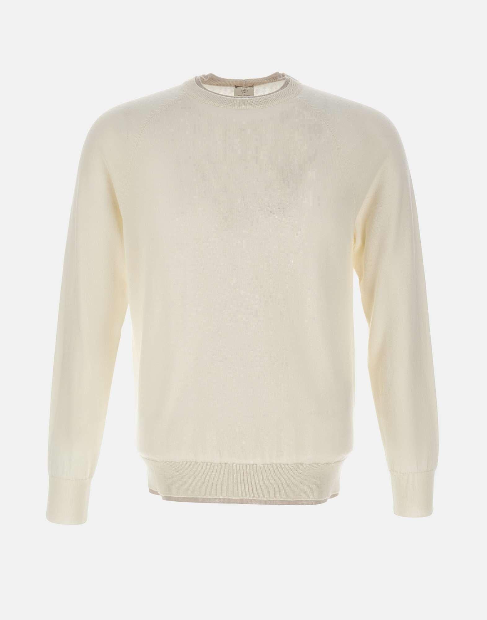 Maglia uomo Eleventy in lana, latte, linea Platinum, bordi a costine con sovrapposizione di tessuto a contrasto di colore, maniche lunghe, girocollo, regular fit, made in Italy
