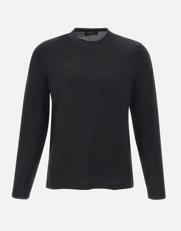 Maglia da uomo Gran Sasso, Athleisure, realizzata in fresco lana nero con trattamento H2Dry, che la rende altamente traspirante e confortevole. Il design presenta girocollo, maniche lunghe e linee essenziali, perfette per uneleganza casual e funzionale. Vestibilità regular. Made in Italy.