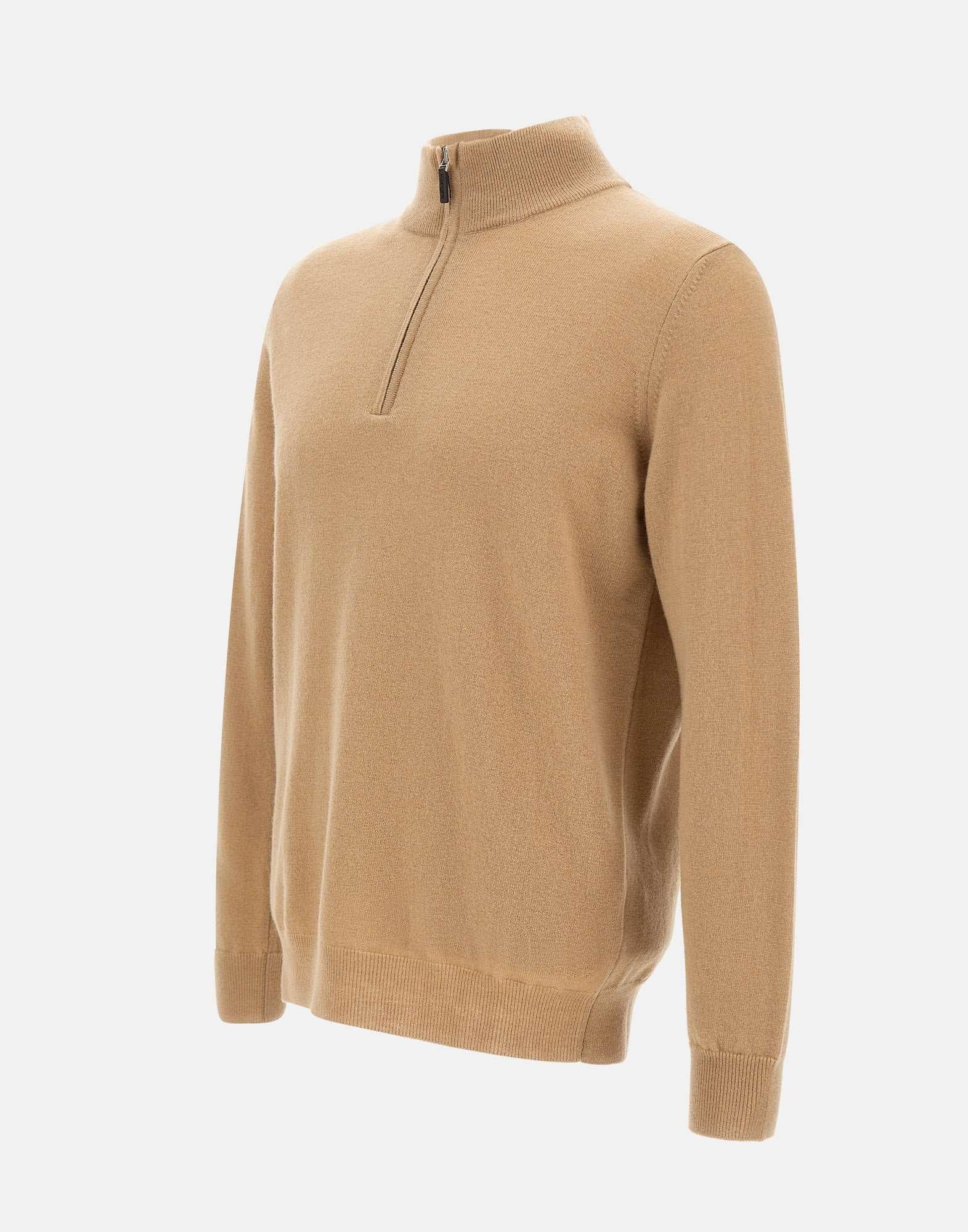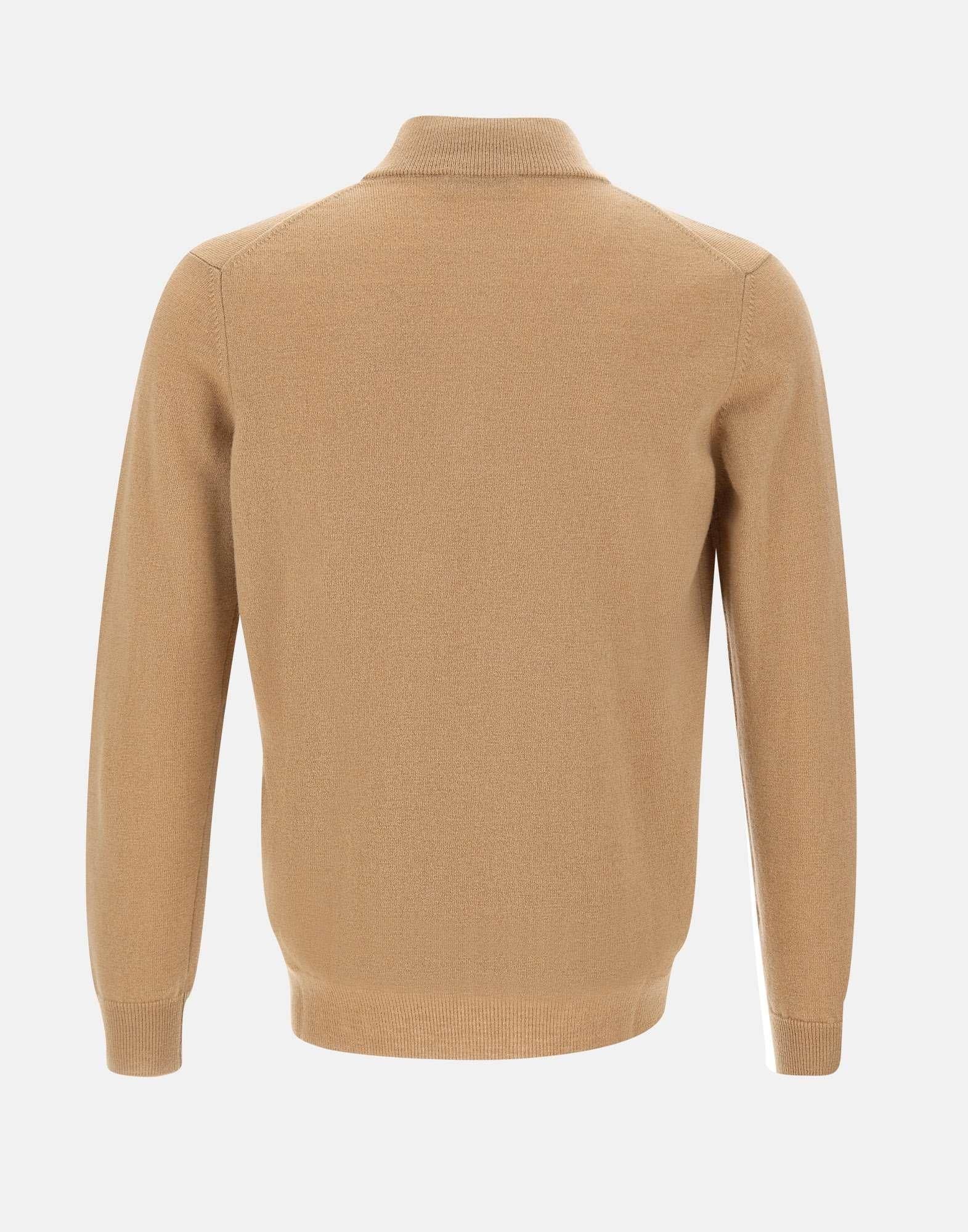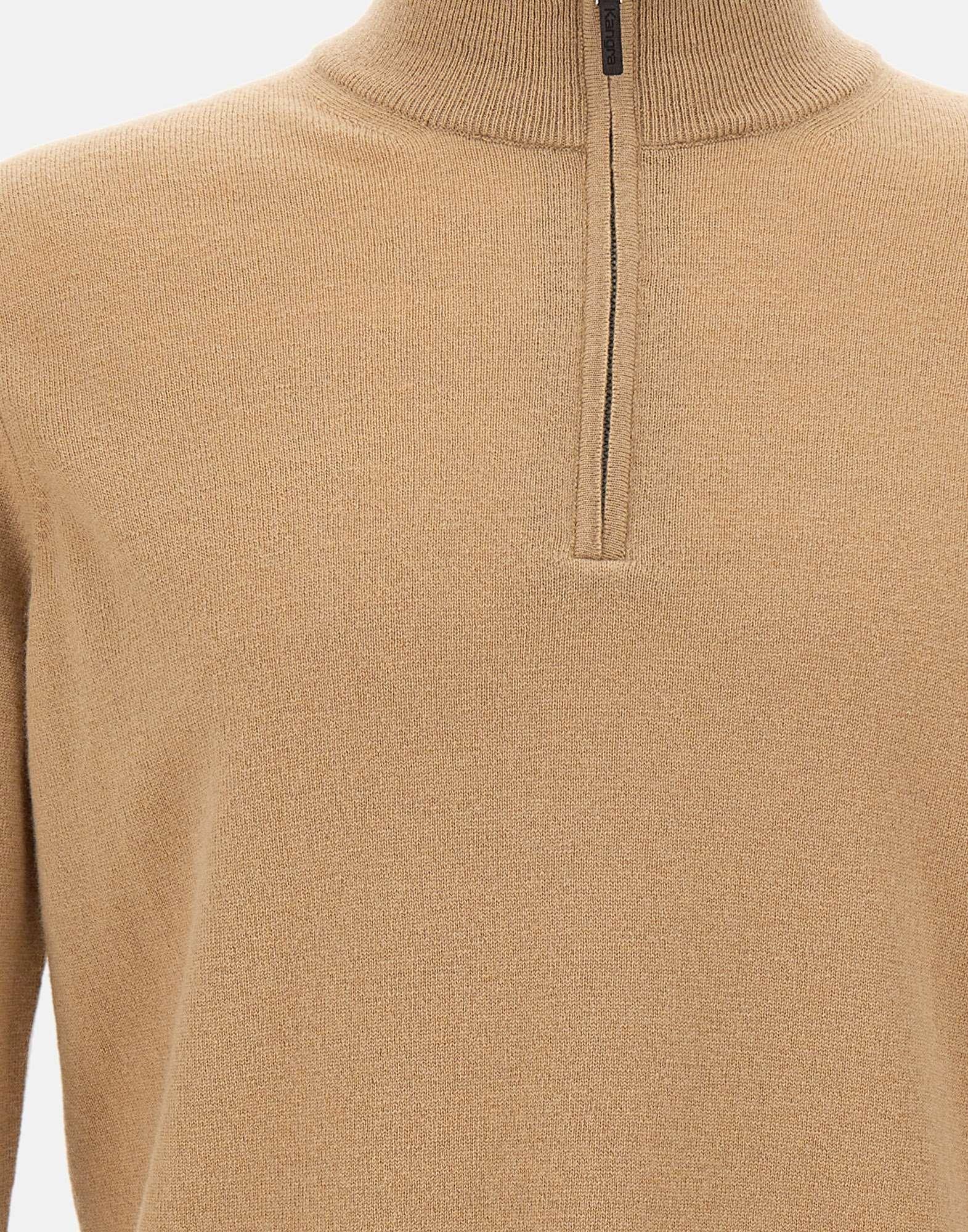 Maglia uomo Kangra in lana, caffelatte, modello serafino con chiusura mezza zip e colletto in piedi. Presenta maniche lunghe, bordi a costine su polsini e fondo per una migliore vestibilità e finitura. Realizzata in Italia con filati pregiati, offre un comfort termico eccellente e uno stile casual-elegante. Vestibilità regular.