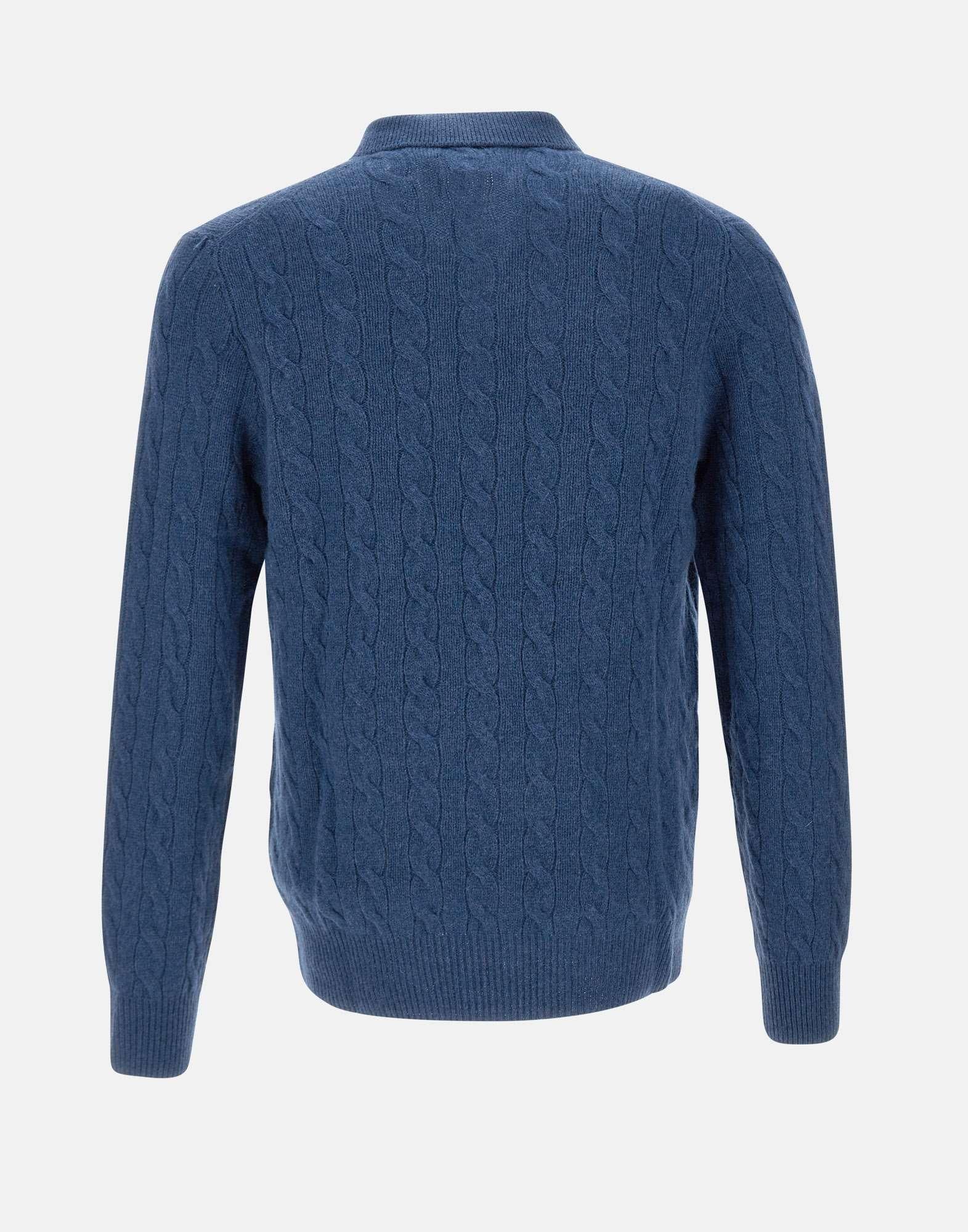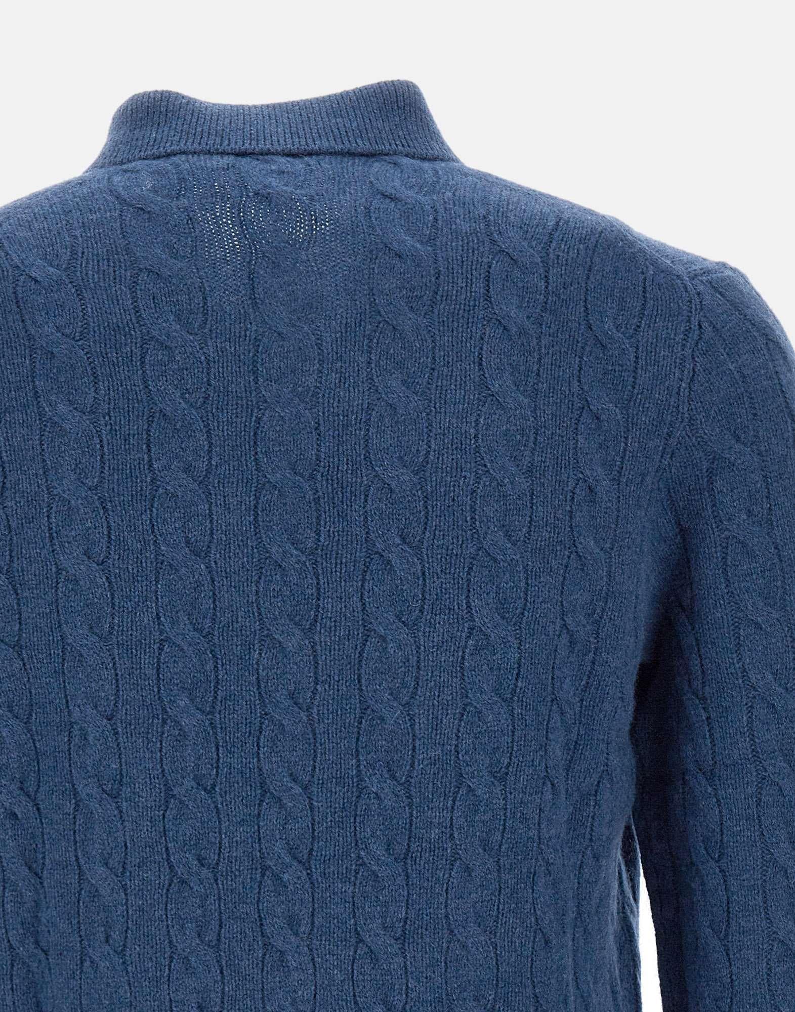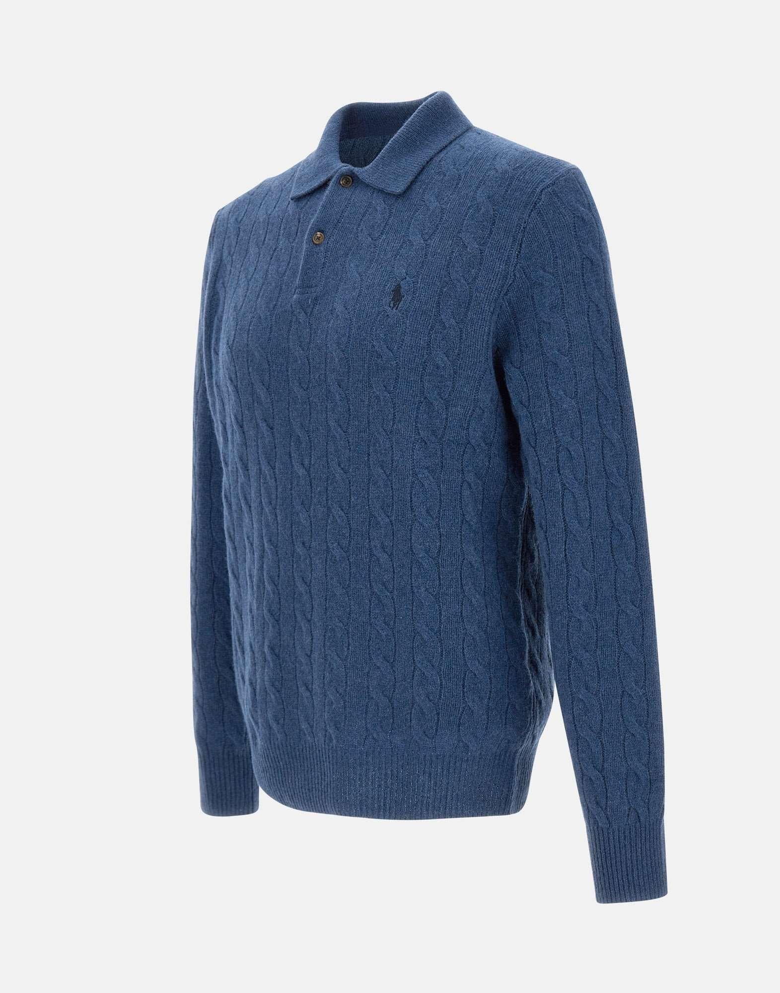 Maglia uomo Polo Ralph Lauren "Classics" in lana e cashmere blu. Modello polo con colletto classico e chiusura a due bottoni, lavorazione a trecce e maniche lunghe. Rifinita con bordi a coste e impreziosita dall’iconico logo pony ricamato sul petto. Vestibilità regolare.