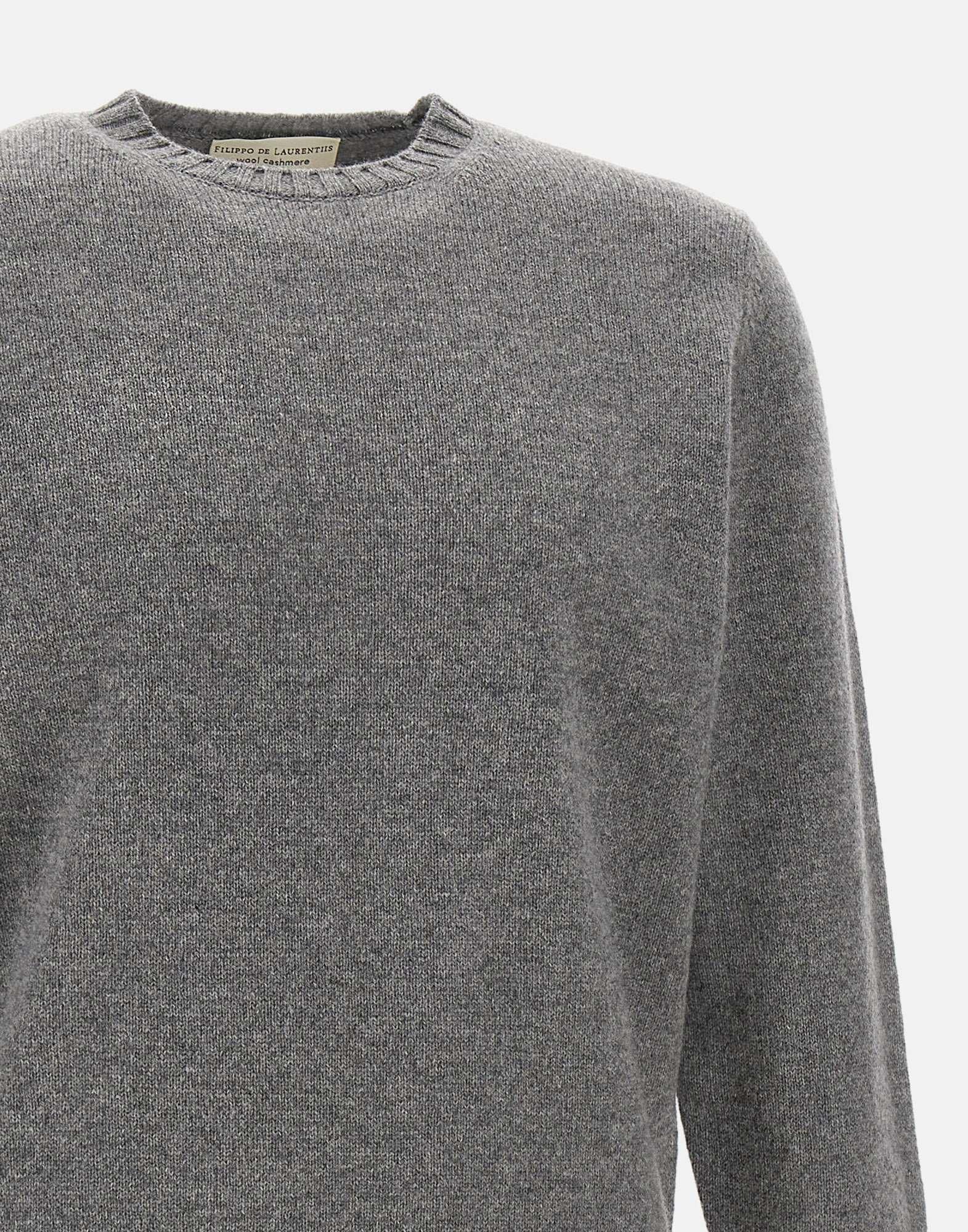 Pullover uomo Filippo De Laurentiis in lana e cashmere, grigio mèlange, girocollo, orli a coste larghe, regular fit, morbida e calda ideale per la stagione autunnale ed invernale. Made in Italy.