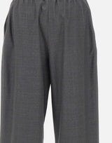 Pantaloni Loulou De Saison modello "Cove", colore grigio antracite, realizzati in morbida lana chambray per un look elegante e confortevole. Caratterizzati da gamba ampia con doppie pinces frontali, vita con cintura e coulisse regolabile, tasche laterali a filo e fondo gamba 27 cm. Vestibilità regular, ideali per completare outfit sartoriali contemporanei.