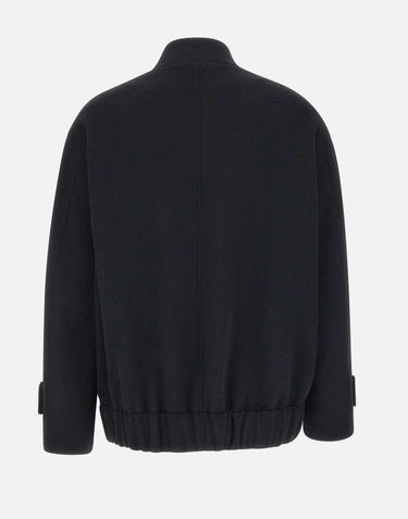 Bomber donna Liu-Jo, colore nero, in panno di misto lana, colletto college, chiusura con maxi bottoni logati argento, polsini con cinturino e bottone, tasche laterali con patta e bottone, fondo parzialmente elasticato, sfoderato, regular fit.