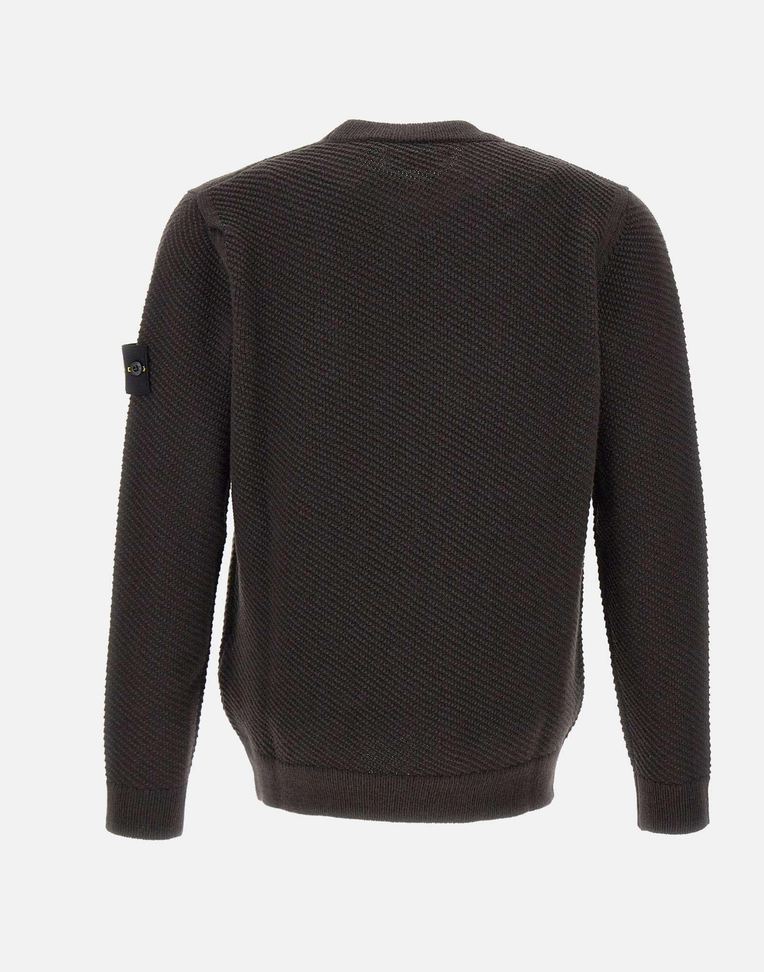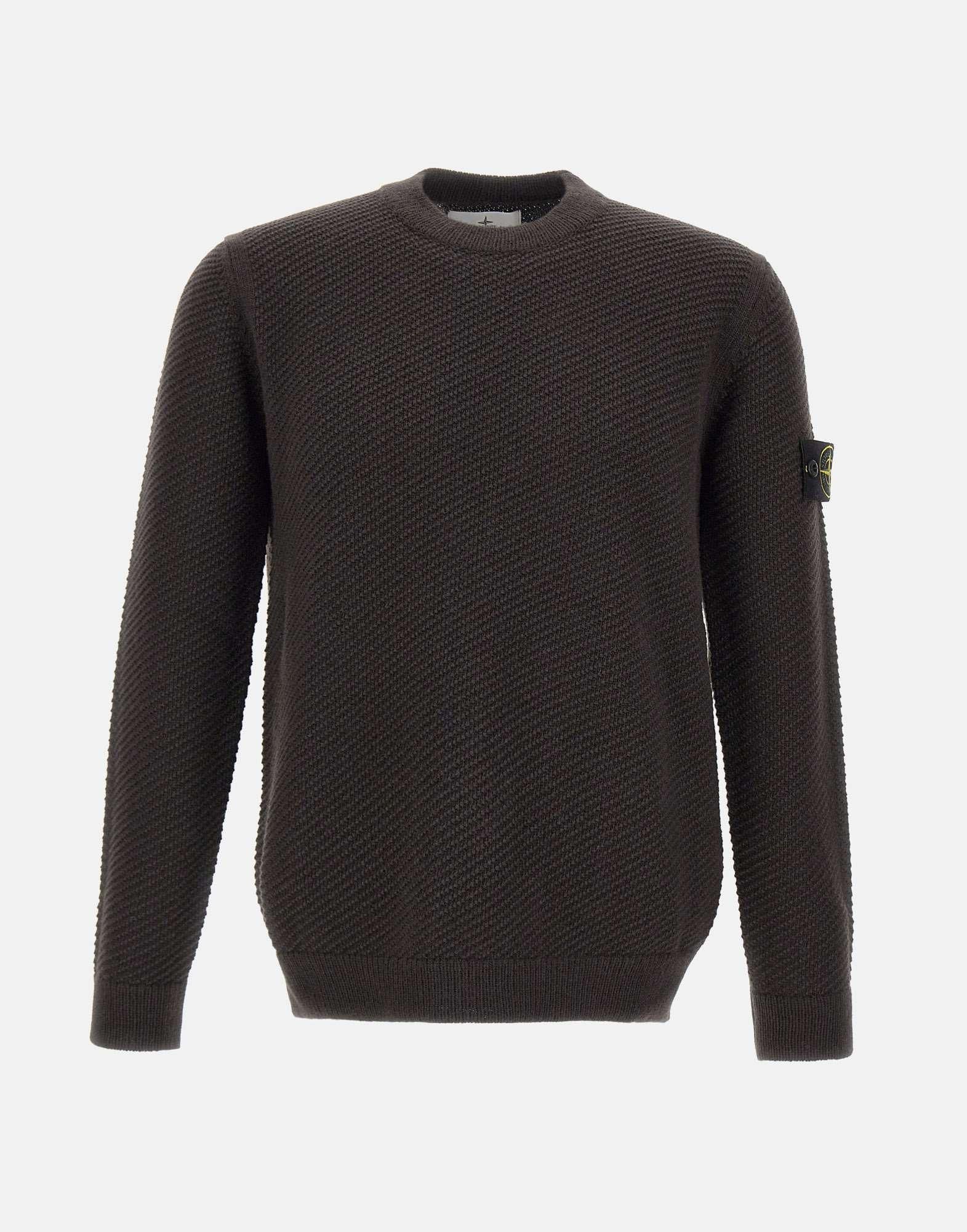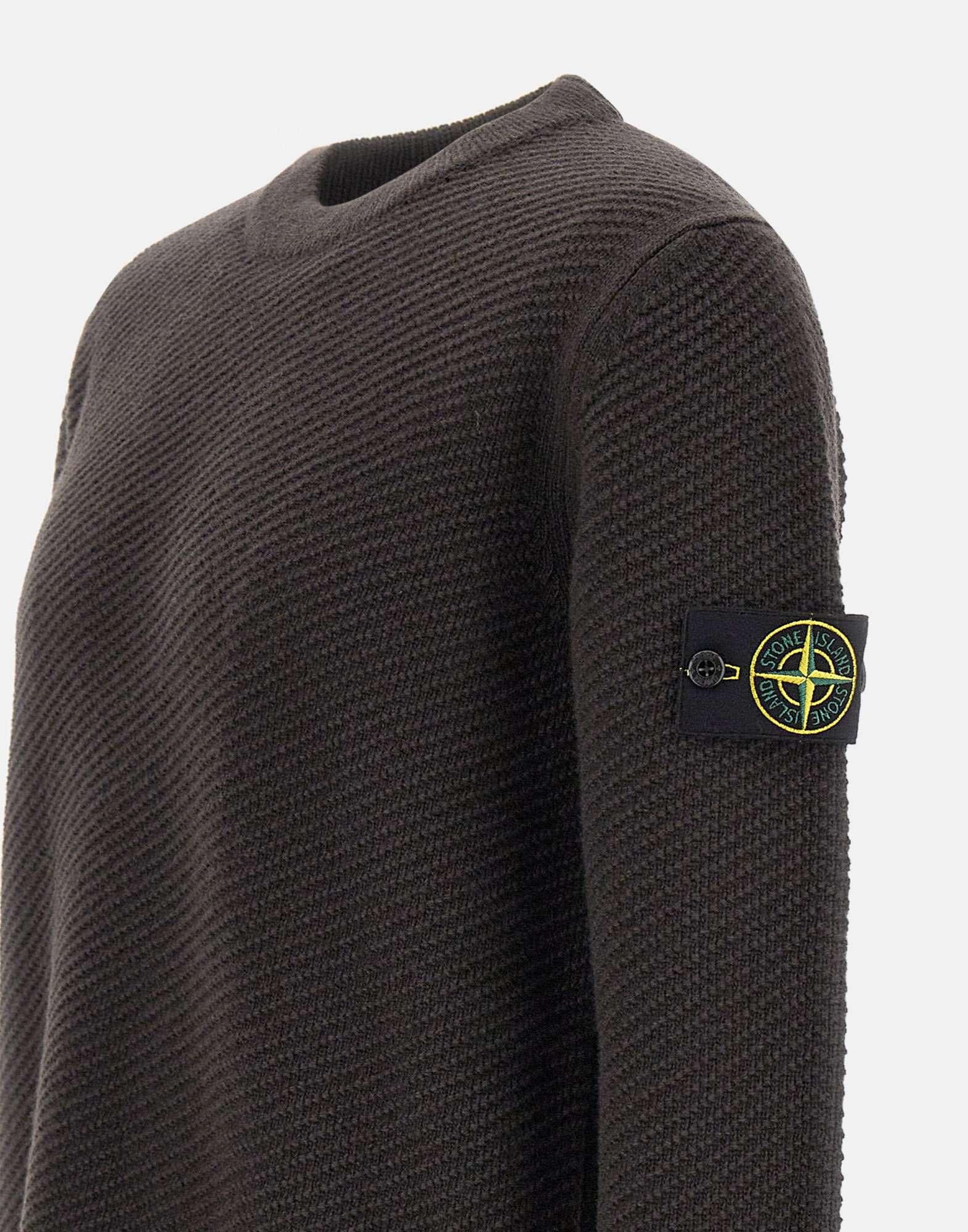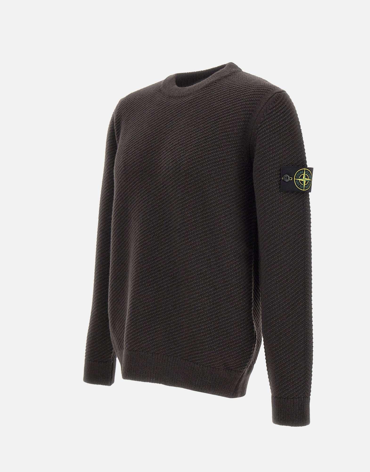 Maglione uomo Stone Island in lana, grigio fumo, trama operata micro nido d'ape,extra morbida al tatto e all'indosso, maniche lunghe, girocollo, orli a costine, iconico badge logo sulla manica sinistra, regular fit, made in Italy