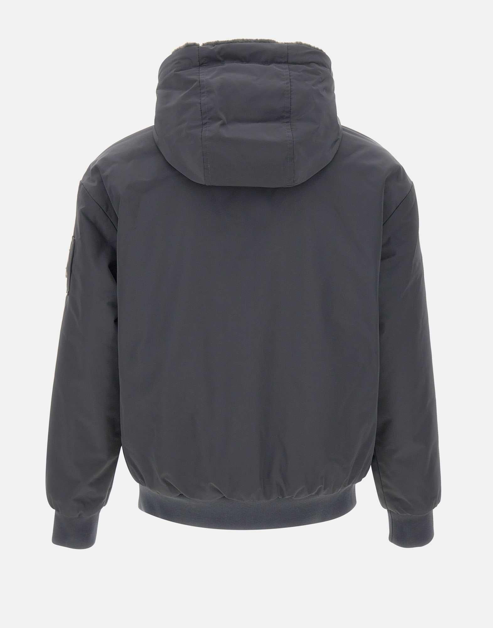 Giacca Moose Knuckles "Roland Reversible Bunny" colore grigio fumo, due capi in uno: lato A in morbida pelliccia sintetica per un look cozy e lato B in guscio tecnico ad alte prestazioni per protezione contro gli agenti atmosferici. Progettata per offrire un calore ottimale (thermal experience da 0°F a 14°F). Cappuccio regolabile con coulisse, chiusura con zip a doppio cursore, tasche a filetto sul lato A e tasche con zip sul lato B. Dettagli iconici: logo in metallo su un lato e patch logo sullaltro. Lunghezza schiena 69 cm per la taglia M. Vestibilità regular.