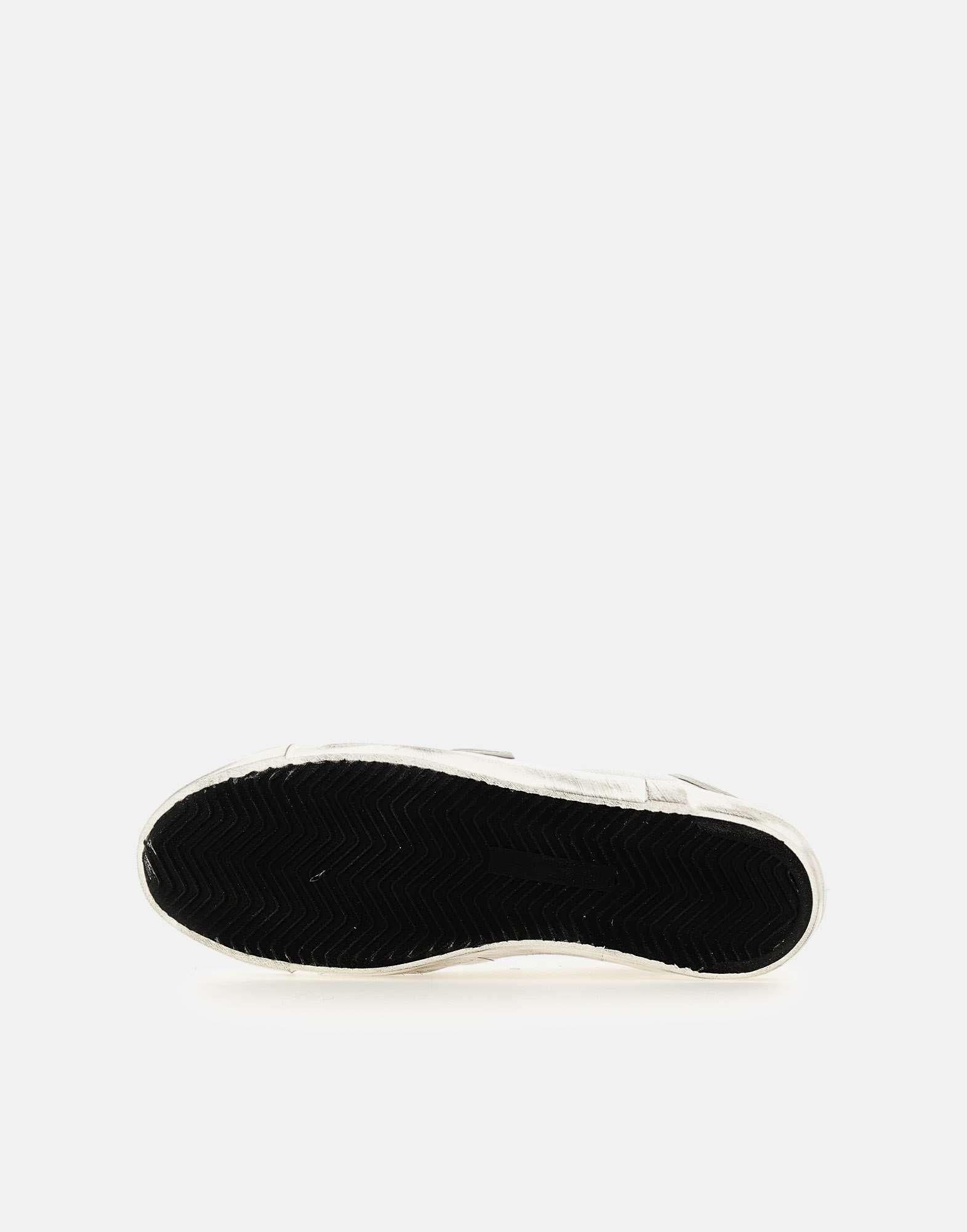 Sneakers uomo Philippe Model Paris "Prsx Low", total white, tomaia realizzata in pelle bianca lavata con sporcature ad effetto vintage come sinonimo di artigianalità, suola volutamente imperfetta brevettata dal marchio, patch logo laterale a rilievo e in tinta, fori per la traspirazione, punta tonda, lacci in tinta, suola alta 2,5 centimetri in gomma spazzolata. Made in Italy. Calzata regolare.