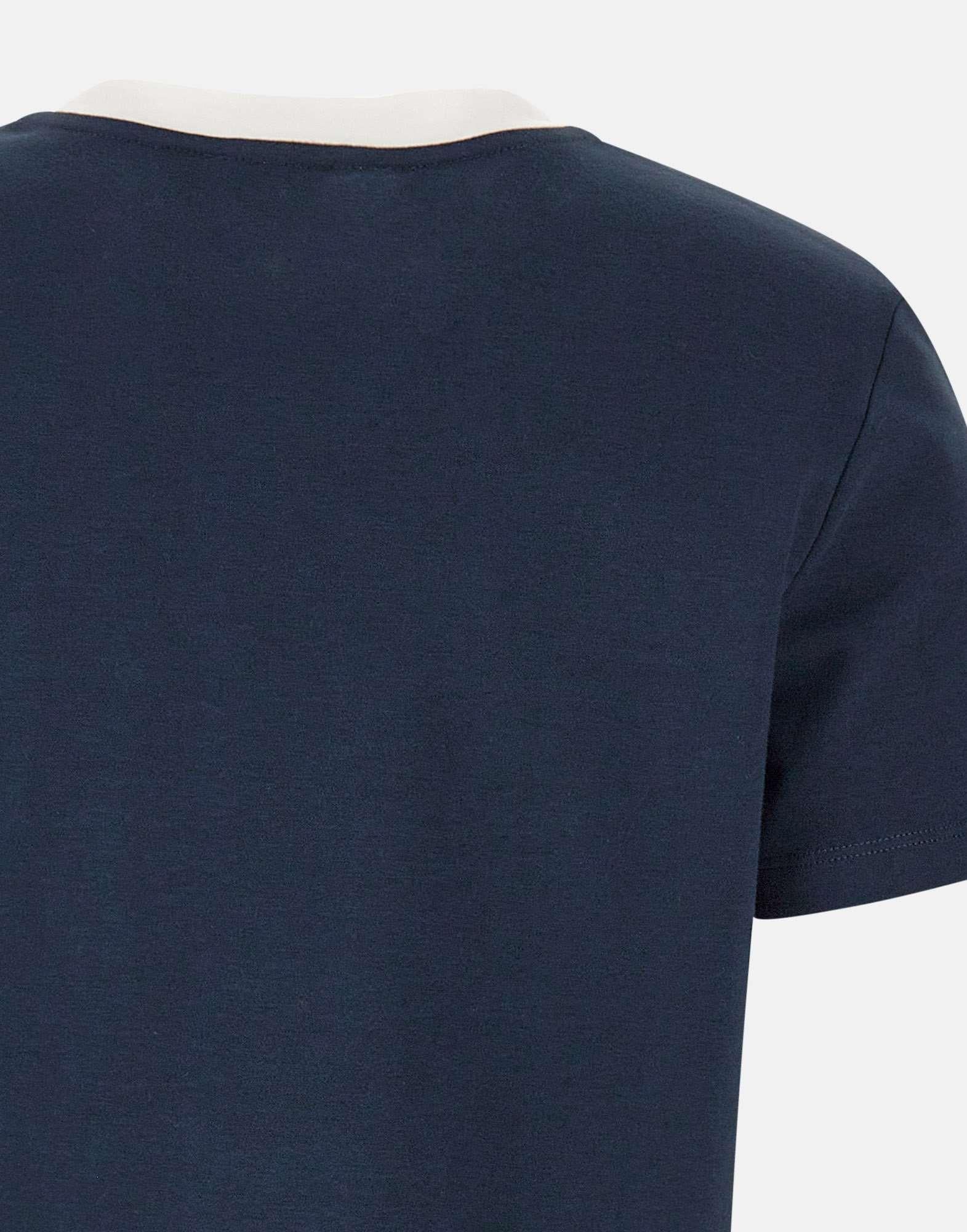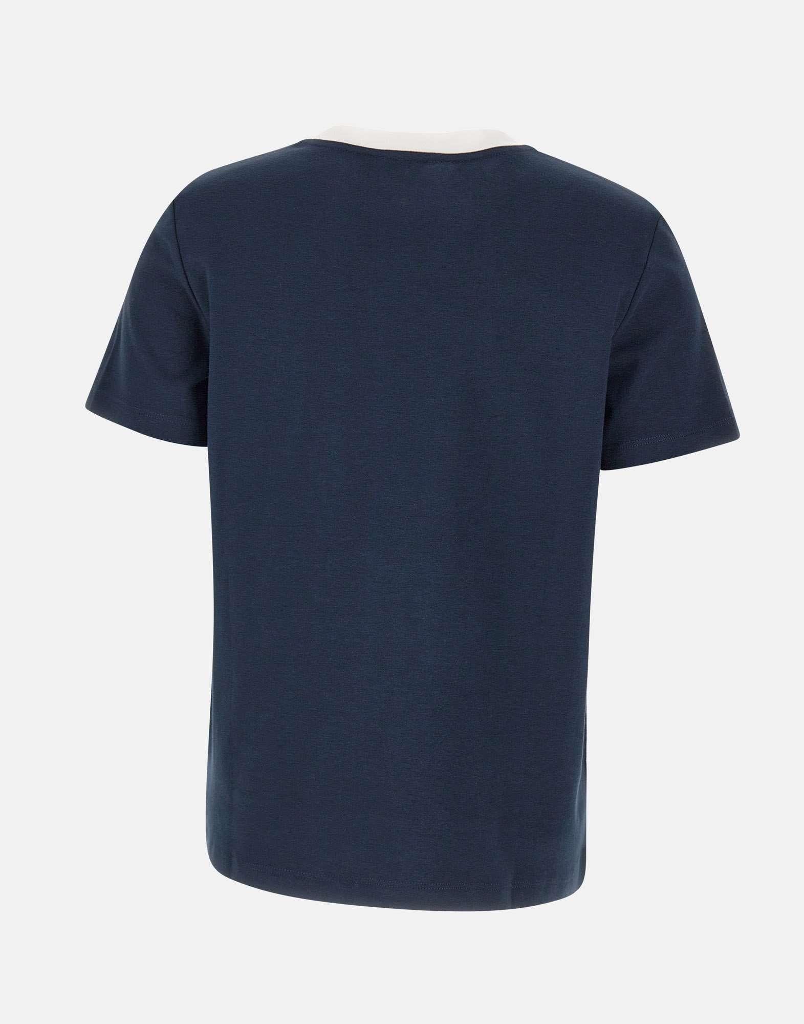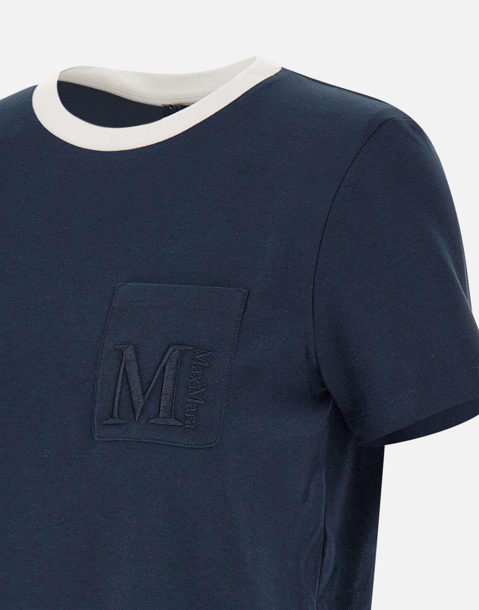 T-shirt "Madera" 'S Max Mara, blu, basica, in jersey di puro cotone, maniche corte, scollo tondo a contrasto di colore, taschino applicato sul petto e logo M Max Mara ricamato in tono, taglio dritto, regular fit