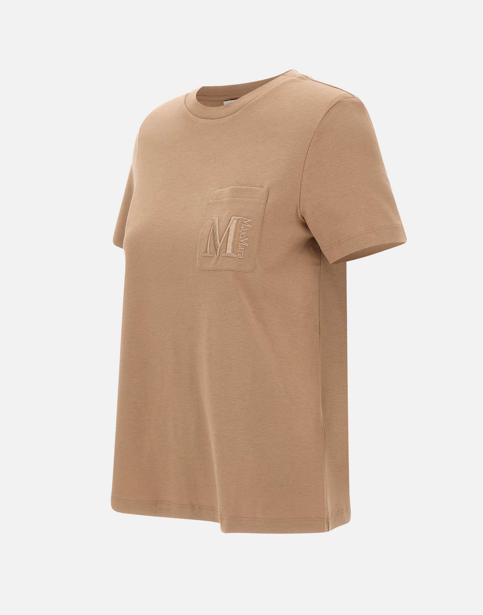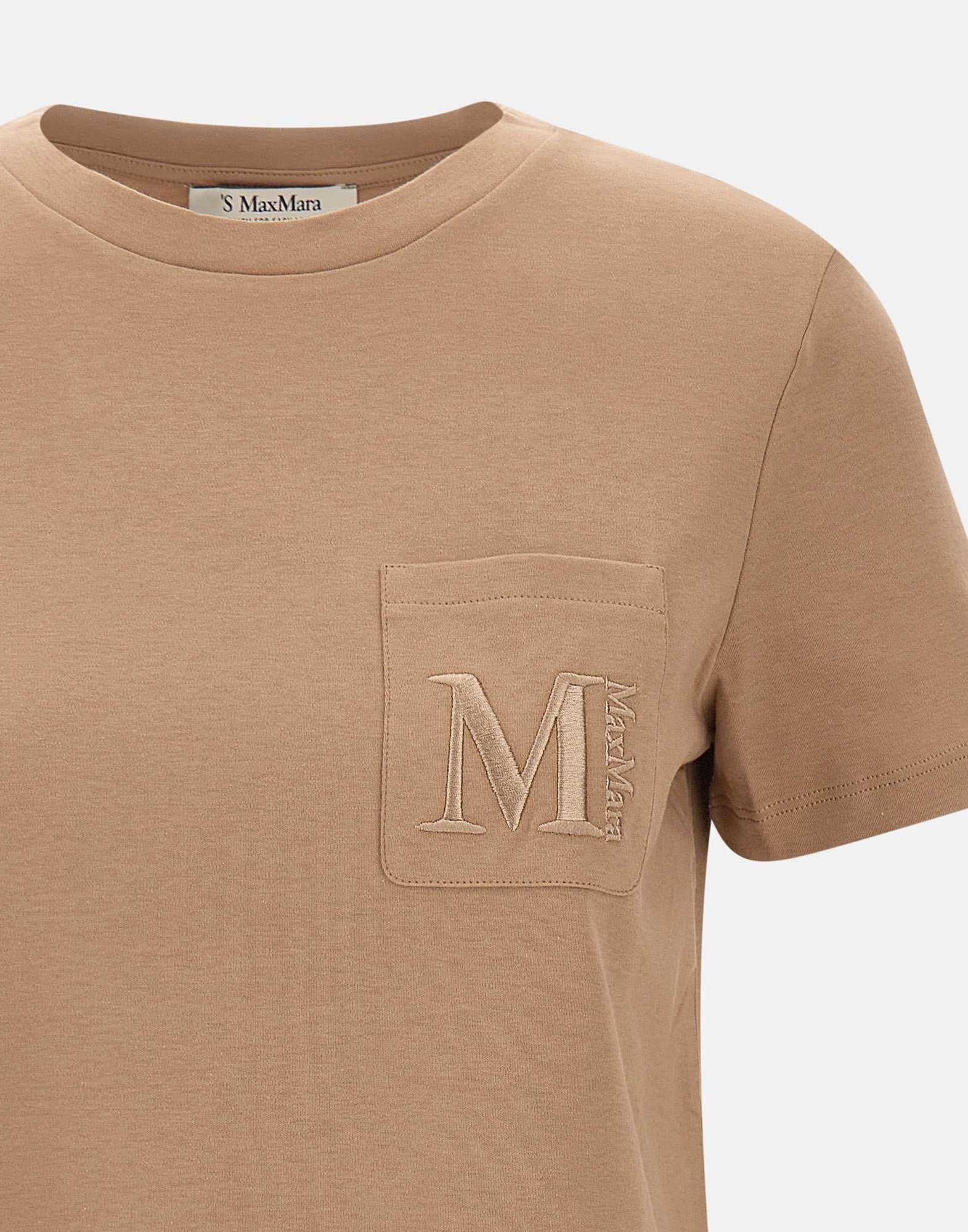 T-shirt "Madera" 'S Max Mara, caramello, basica, in jersey di puro cotone, maniche corte, scollo tondo, taschino applicato sul petto e logo M Max Mara ricamato in tono, taglio dritto, regular fit