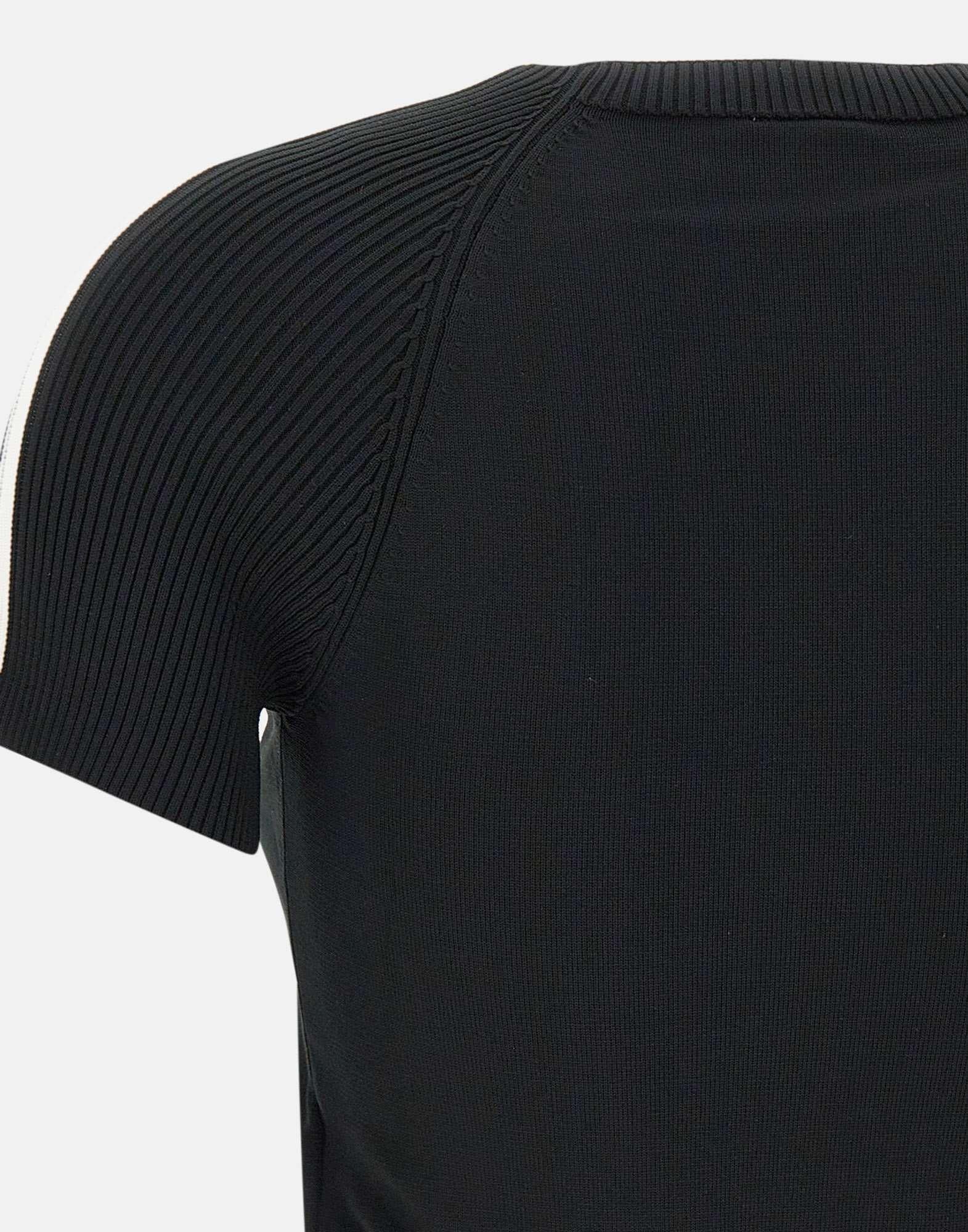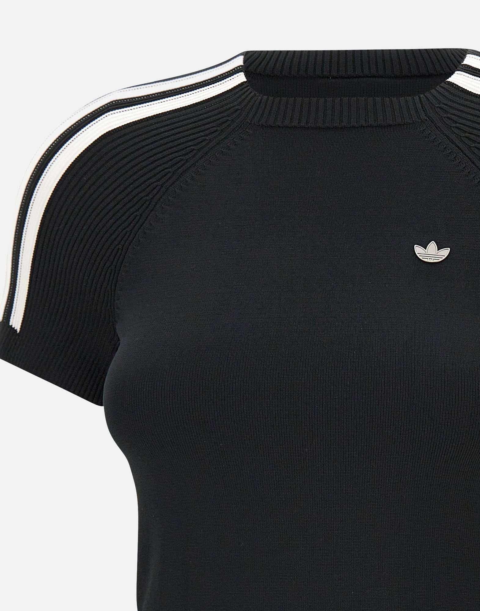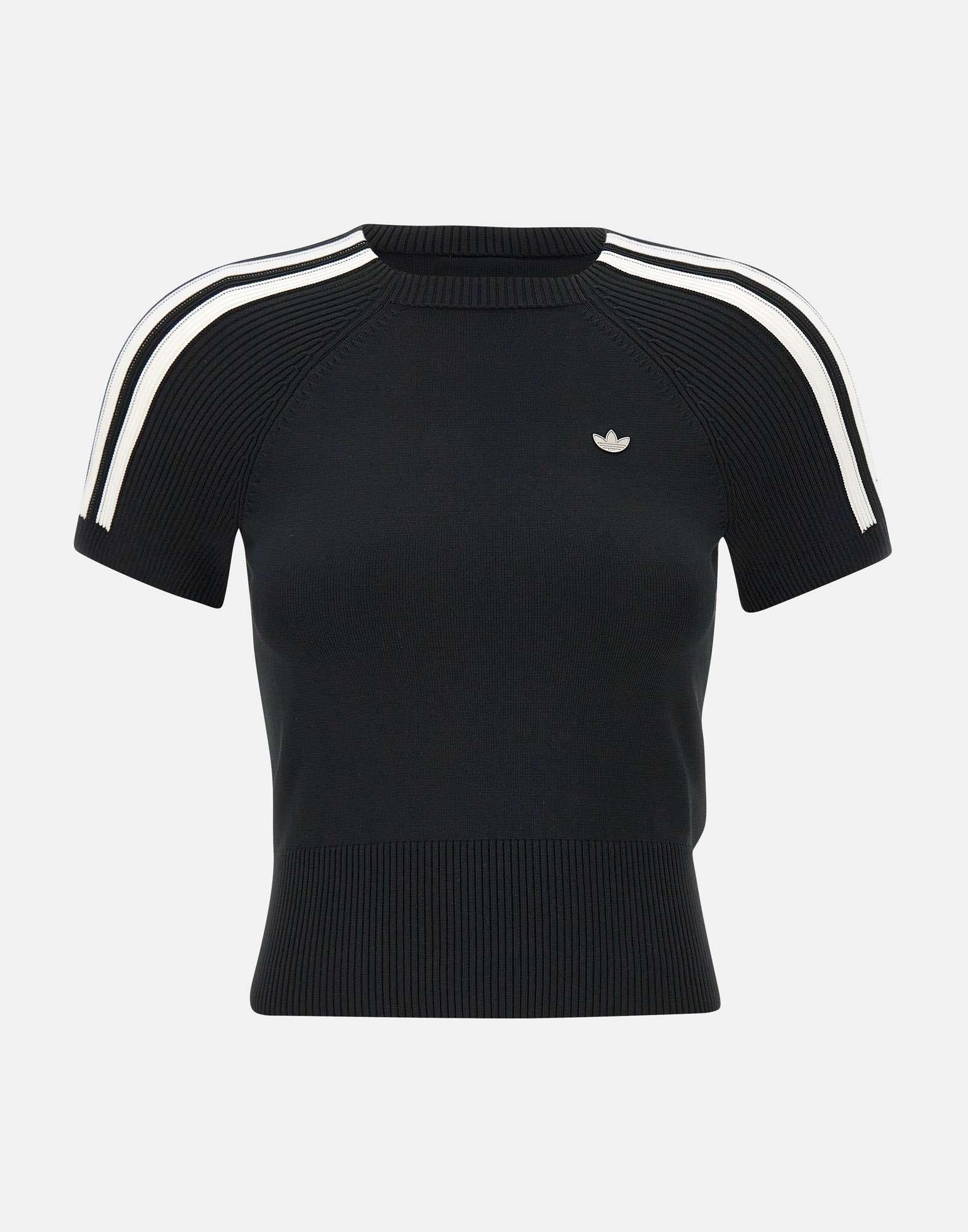T-shirt da donna Adidas modello "Sock Cali", ispirata allo stile anni 90 e realizzata in poliestere riciclato. Proposta in colore nero, presenta maniche corte, scollo tondo e dettagli a coste con profili a contrasto che ne esaltano il design sportivo. La vestibilità slim valorizza la silhouette mantenendo un tocco casual e versatile.