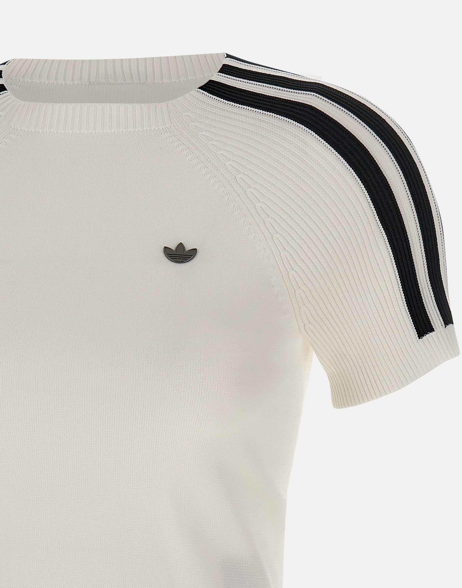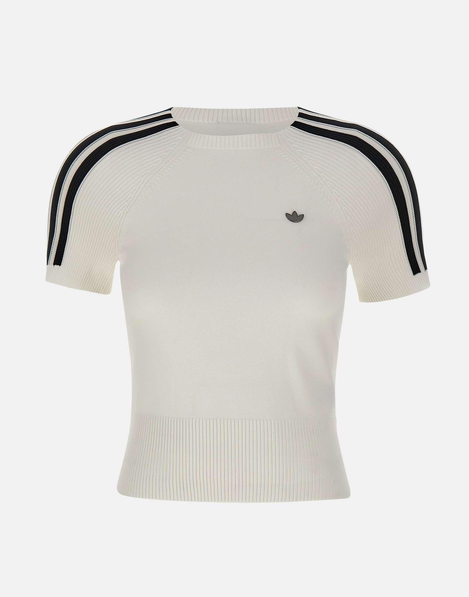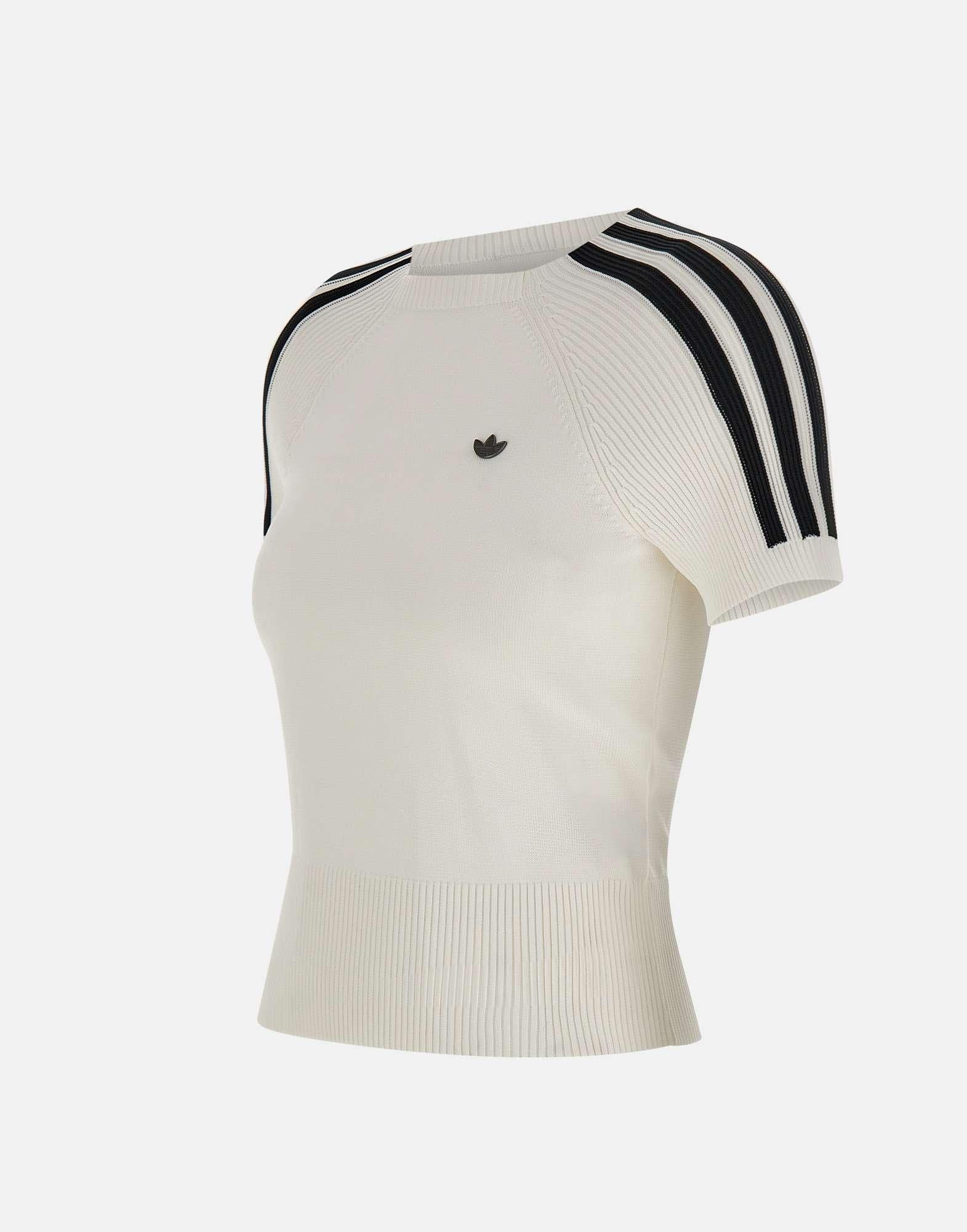 T-shirt da donna Adidas modello "Sock Cali", ispirata allo stile anni 90 e realizzata in poliestere riciclato. Proposta in colore bianco, presenta maniche corte, scollo tondo e dettagli a coste con profili a contrasto che ne esaltano il design sportivo. La vestibilità slim valorizza la silhouette mantenendo un tocco casual e versatile.