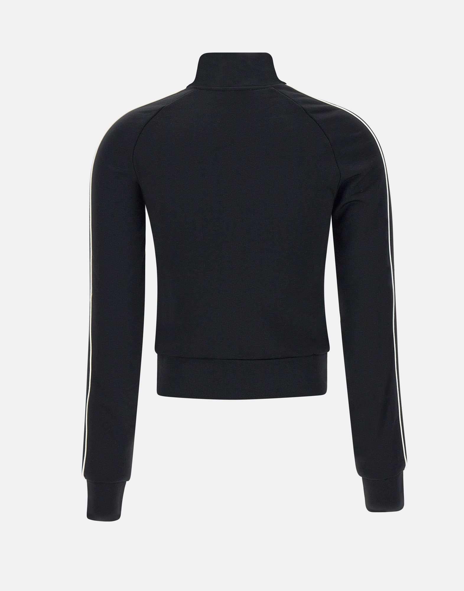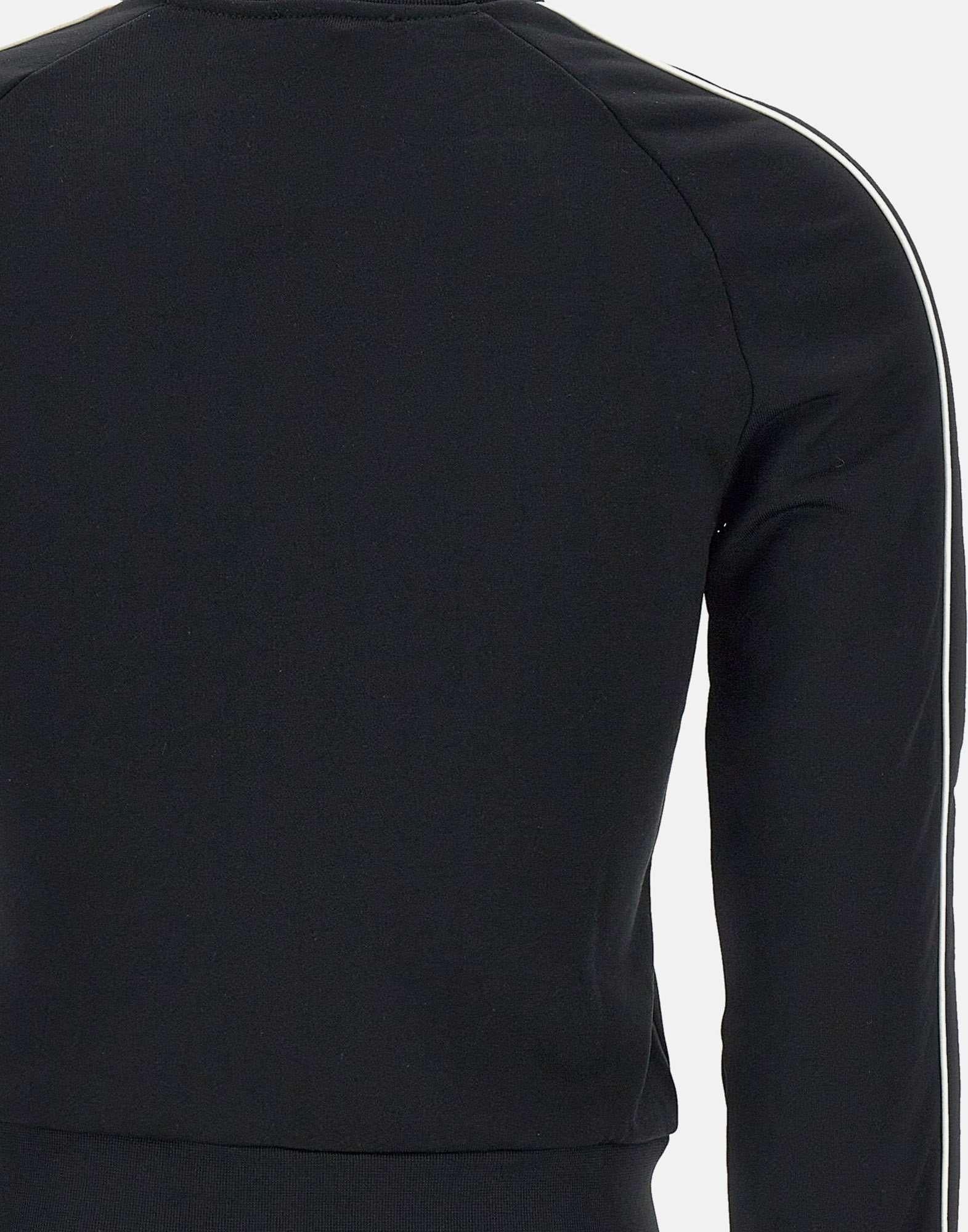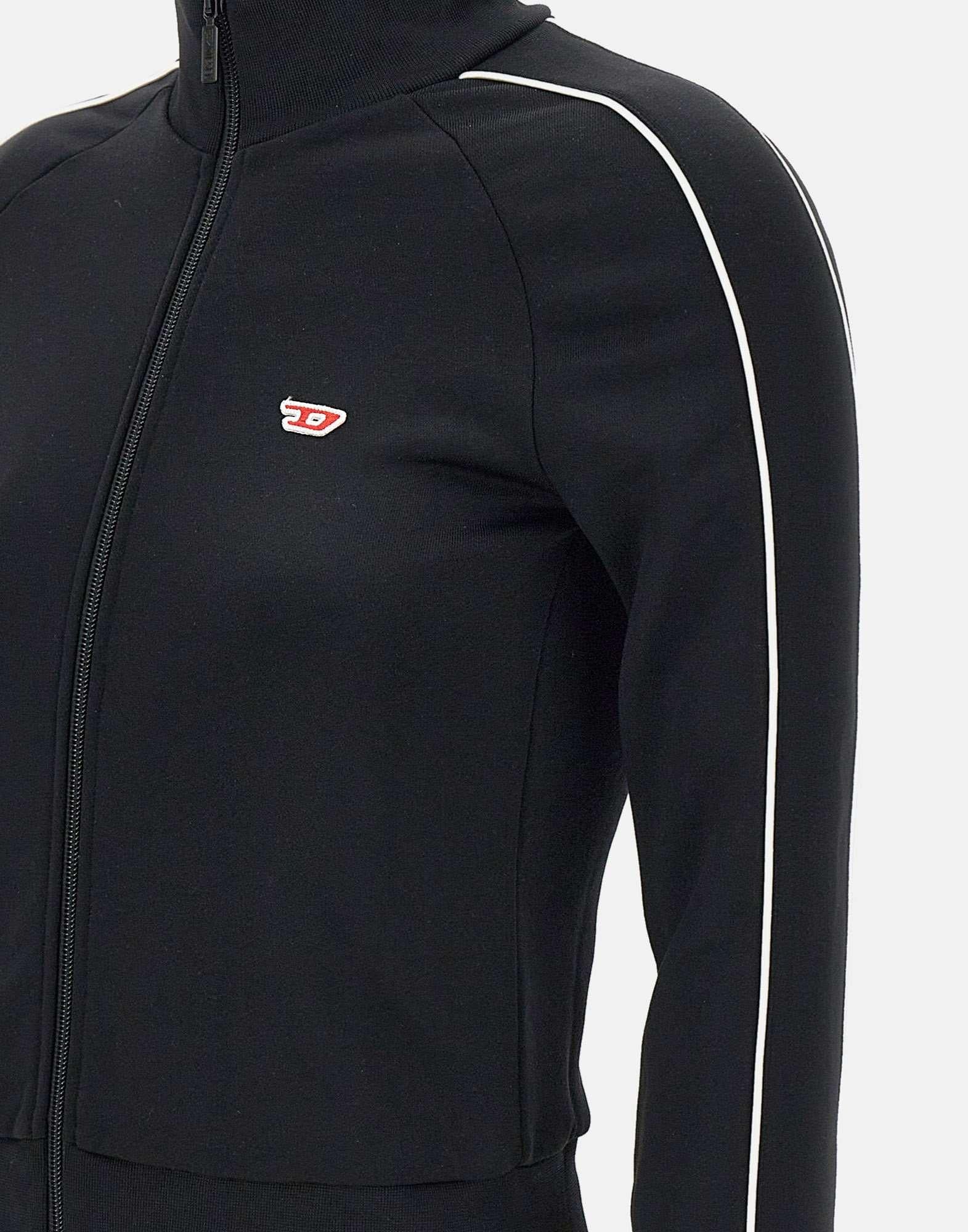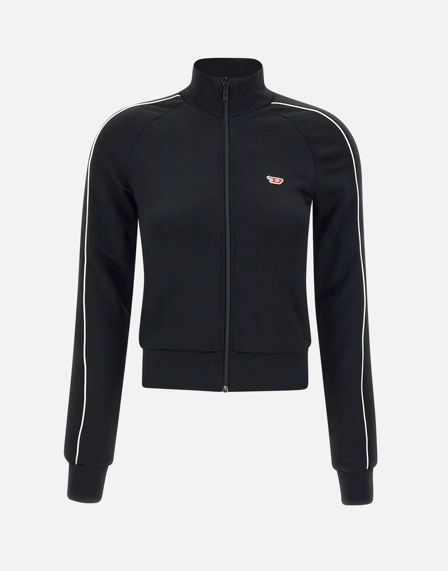 "F jamila piping" felpa donna Diesel, colore nero, misto cotone, Essential Collection, profili a contrasto colore bianco, maniche lunghe, colletto in piedi, chiusura full zip, mini logo sul petto, bordi a costine, regular fit.