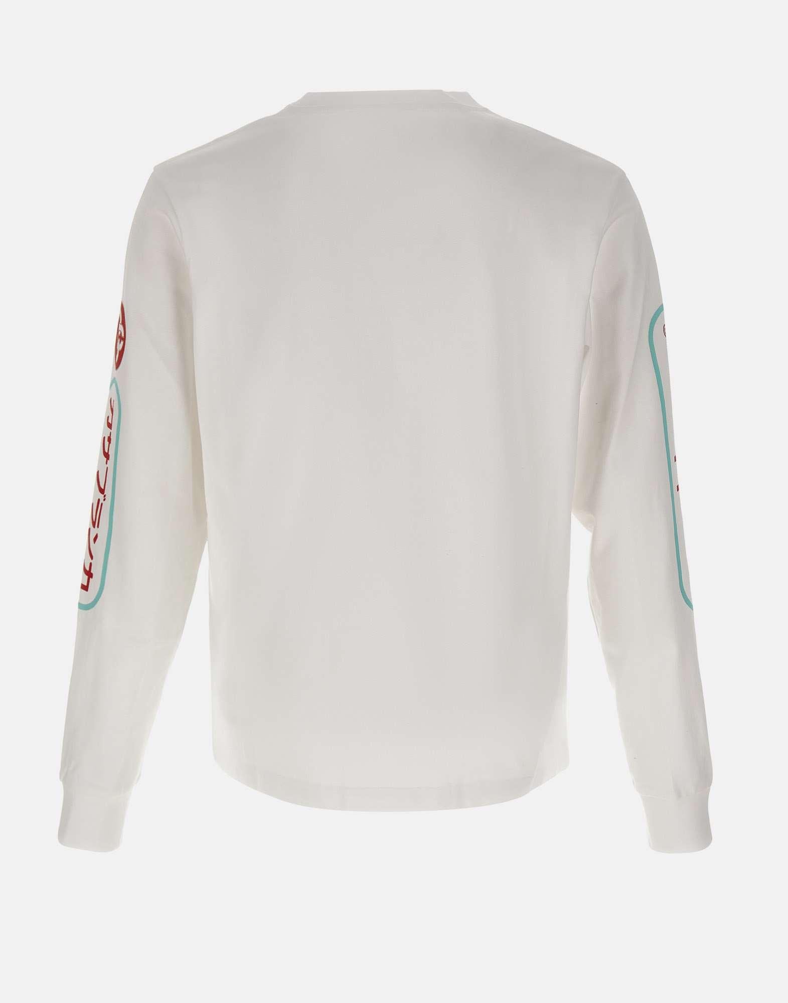 "Fuji dream sweater" uomo Casablanca, colore bianco, maniche lunghe, girocollo, bordi a costine, loghi multicolor sul petto e sulla lunghezza delle maniche, regular fit