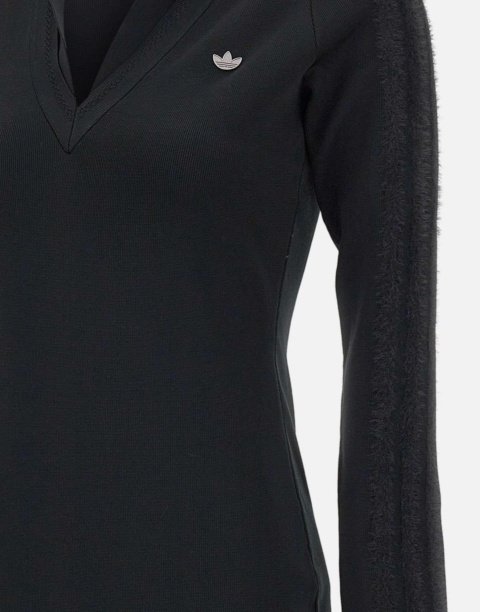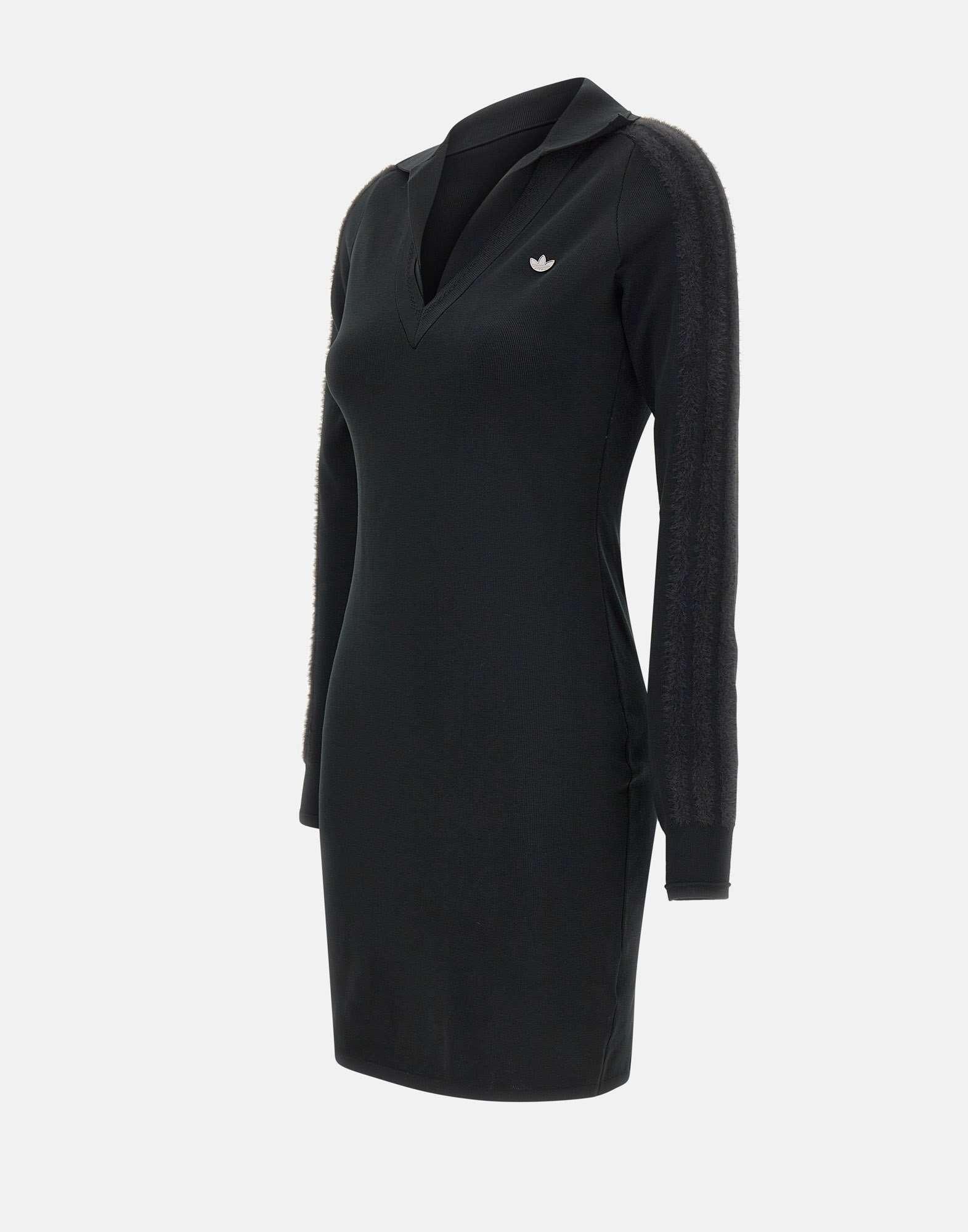 "LS Dress" Adidas, nero, ispirato al mondo del calcio. Realizzato in 100% poliestere riciclato, presenta scollo a V a coste con colletto, maniche lunghe e iconiche 3-Stripes a contrasto lungo i lati. Logo Trifoglio sul petto. Vestibilità slim che valorizza la silhouette.