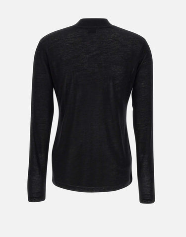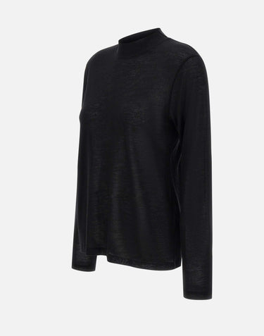 Top da donna Filippa K modello "Lyocell Cashmere", realizzato in un pregiato mix di cashmere e lyocell. Proposto in colore nero, presenta maniche lunghe, colletto mock a costine e una vestibilità regular che unisce comfort e raffinatezza essenziale, tipica dello stile minimal.