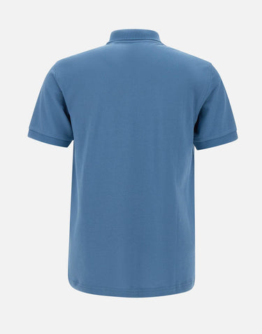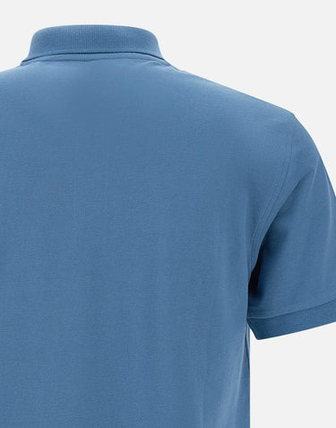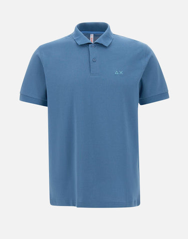 "Polo basic" Sun68 uomo, blu avio, maniche corte, in piquet cotone stretch, colletto classico chiuso da bottoni in tinta logati, logo a ricamo e contrasto di colore sul petto, mini spacchetti al fondo, bordi a costine, regular fit.