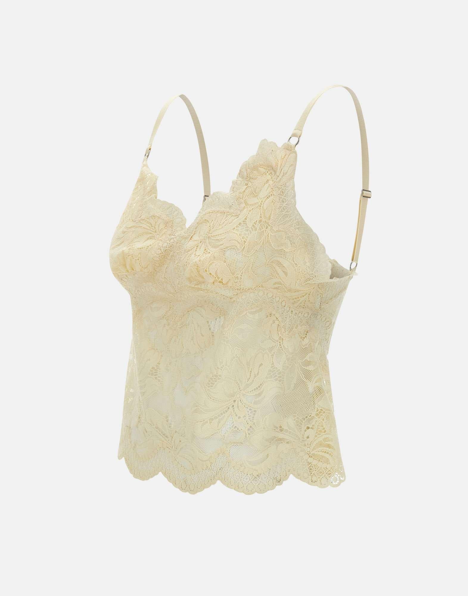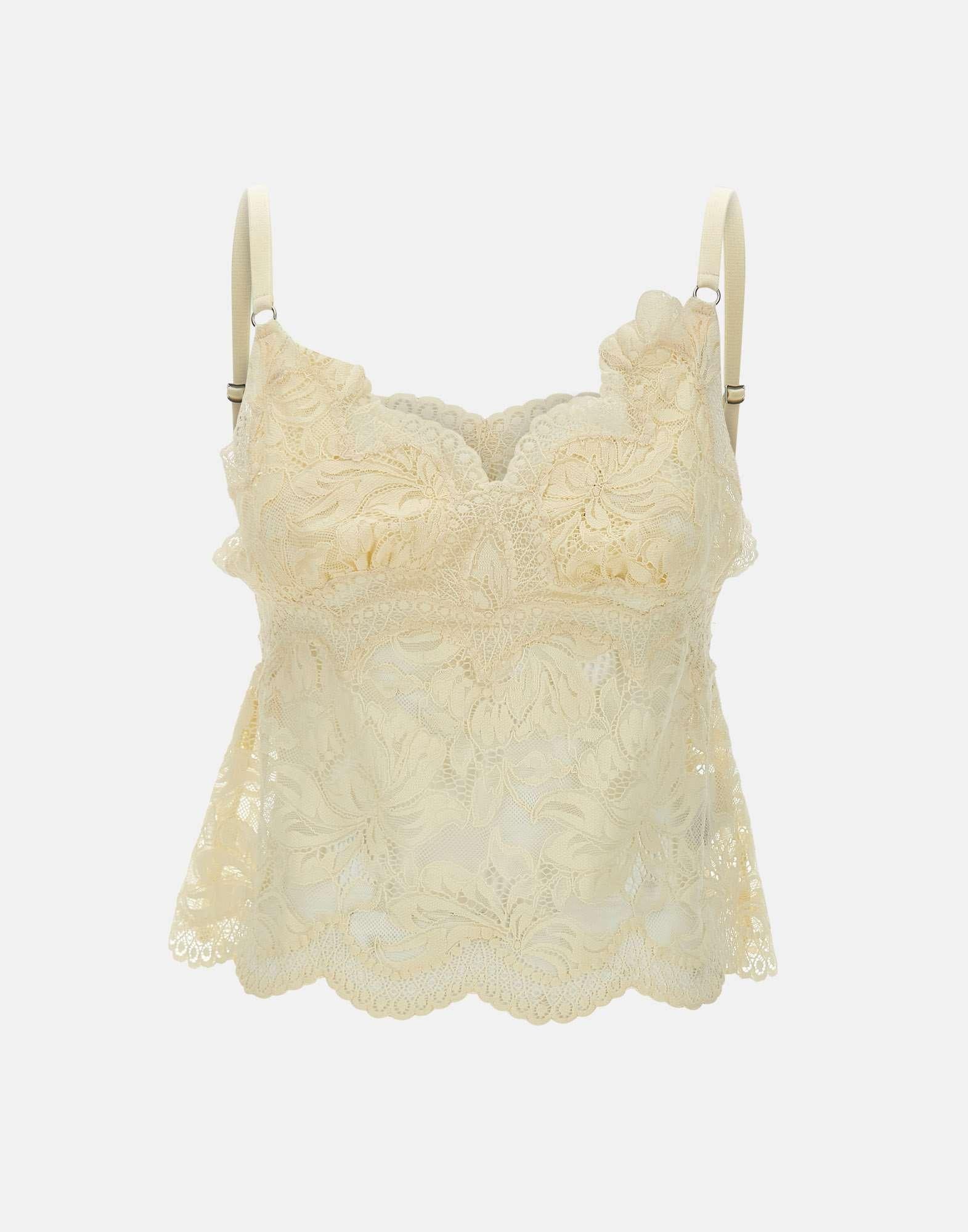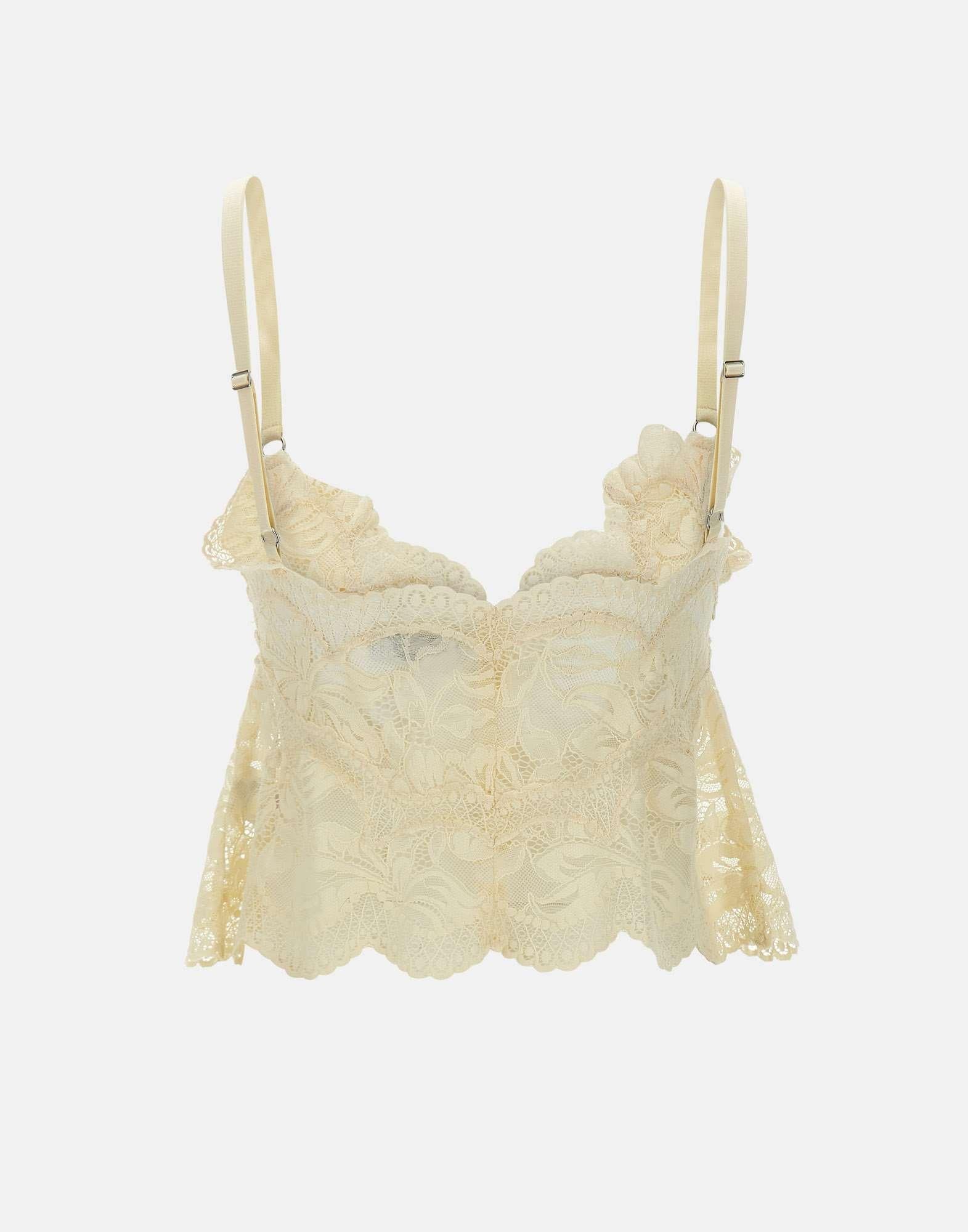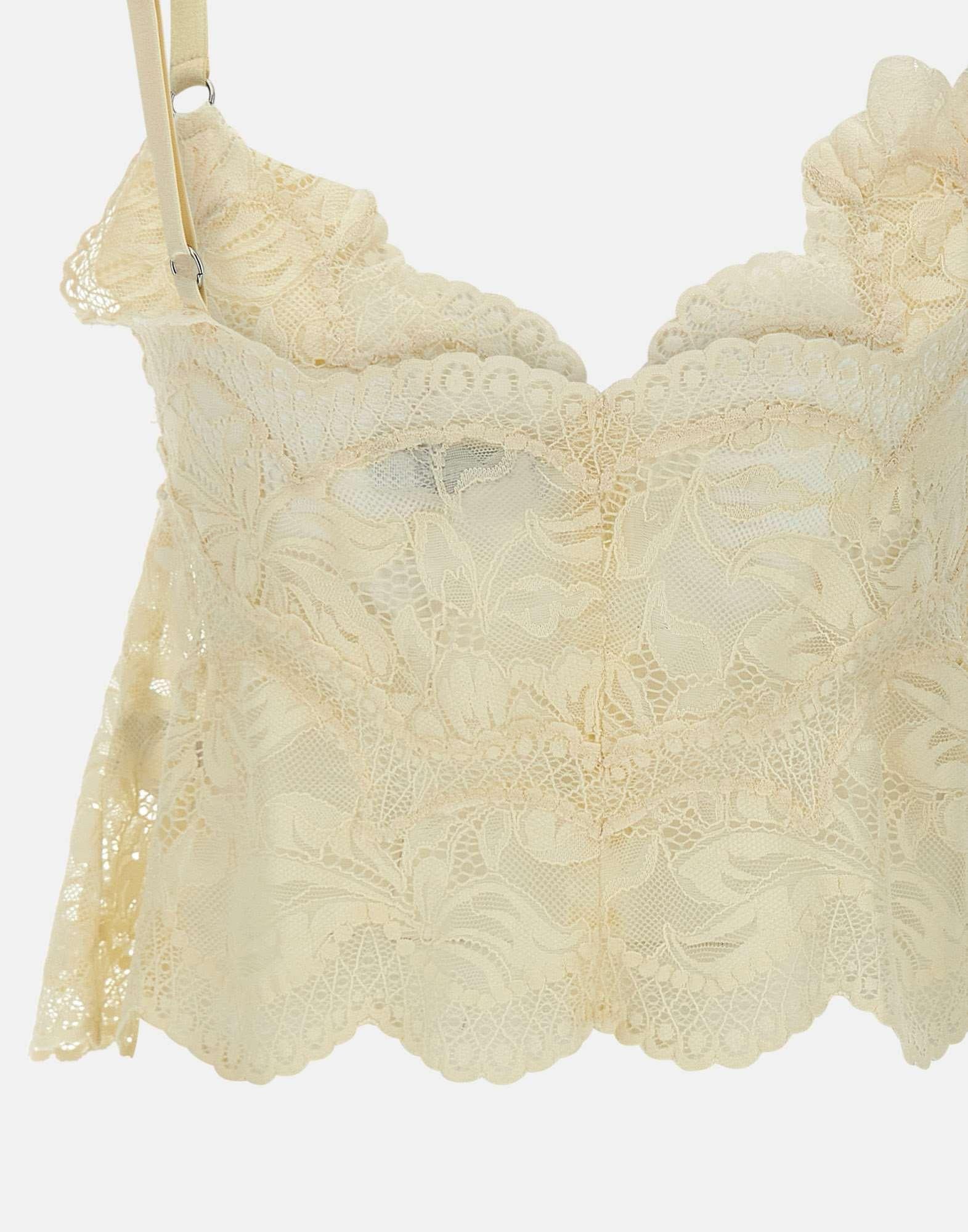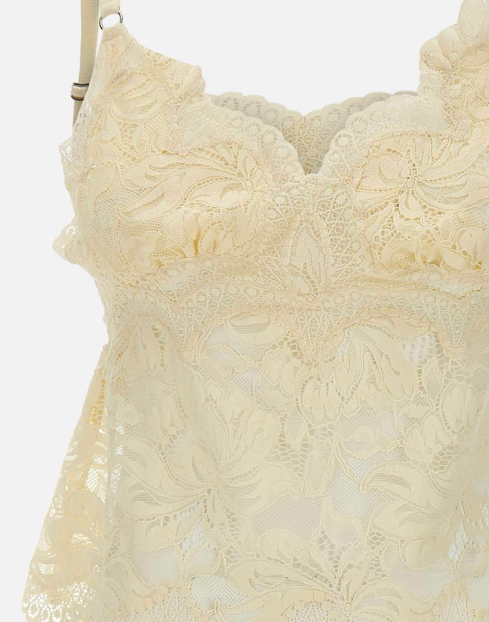 "Tank top in lace" Rabanne, avorio, in pizzo stretch, scollo a V, bretelline regolabili, bordi smerlati, regular fit