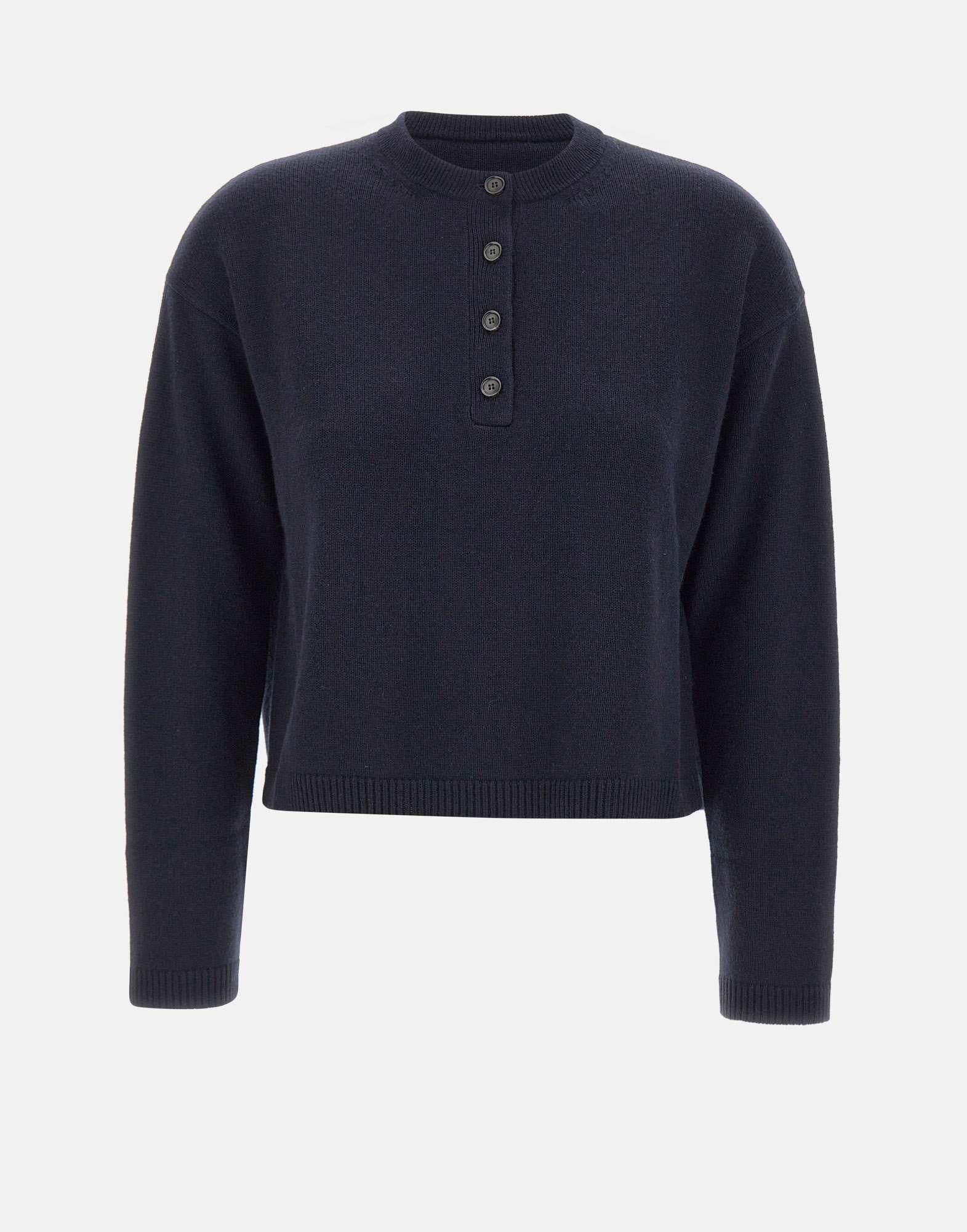 Maglia "London" 'S Max Mara, realizzata in pregiato filato di lana e cashmere, proposta in colore blu scuro. Modello essenziale con scollo tondo e maniche lunghe, perfetta come capo passe-partout per look sofisticati e stratificazioni eleganti. Vestibilità confortevole.