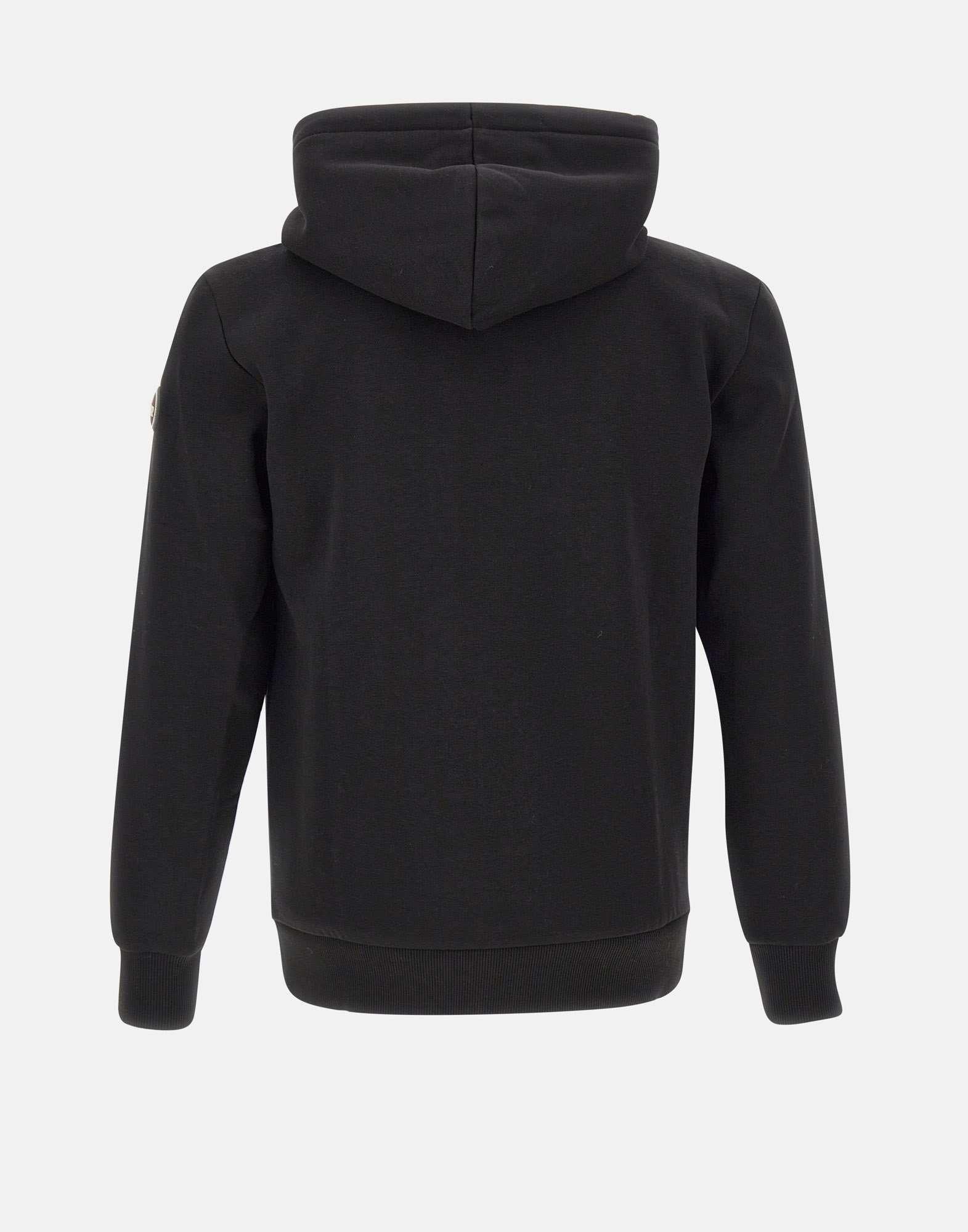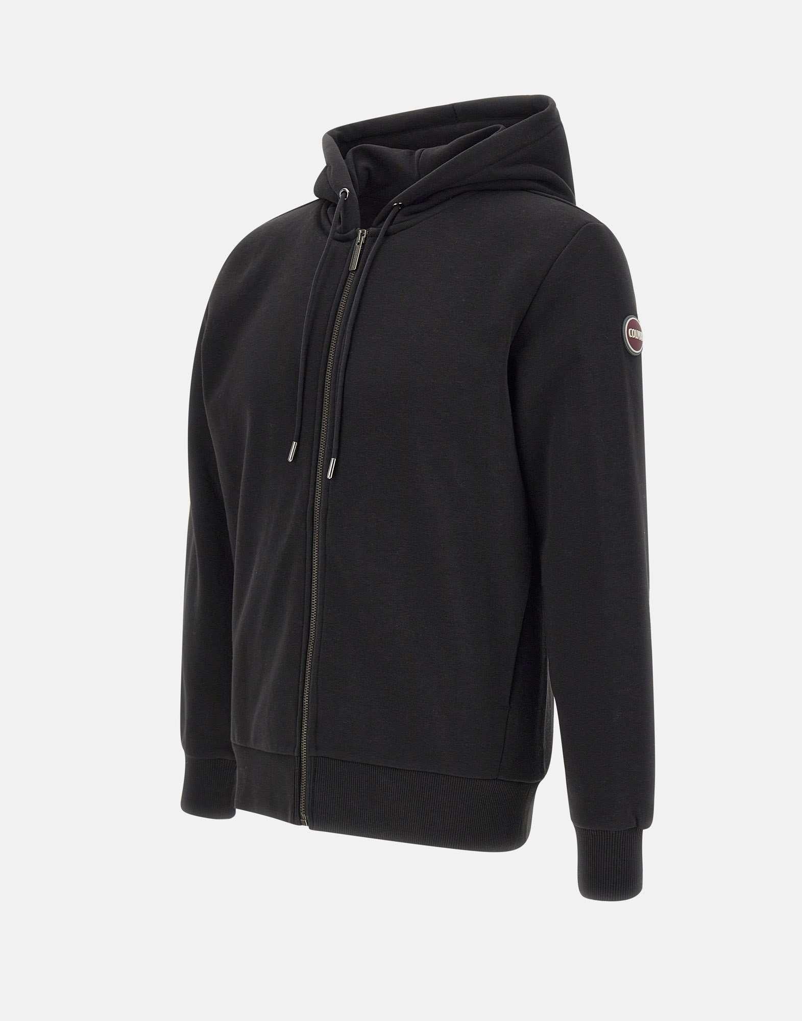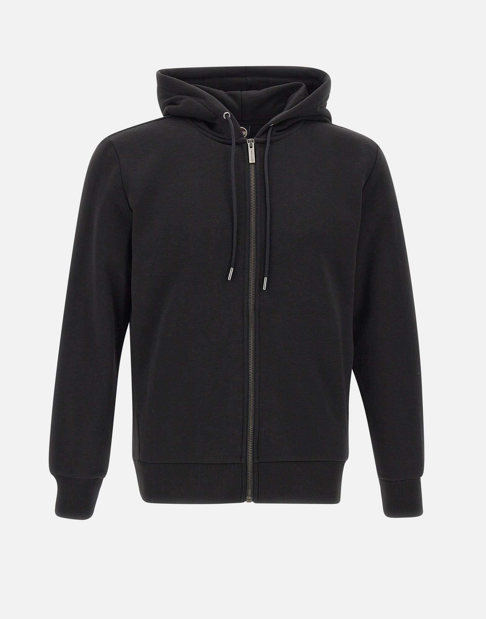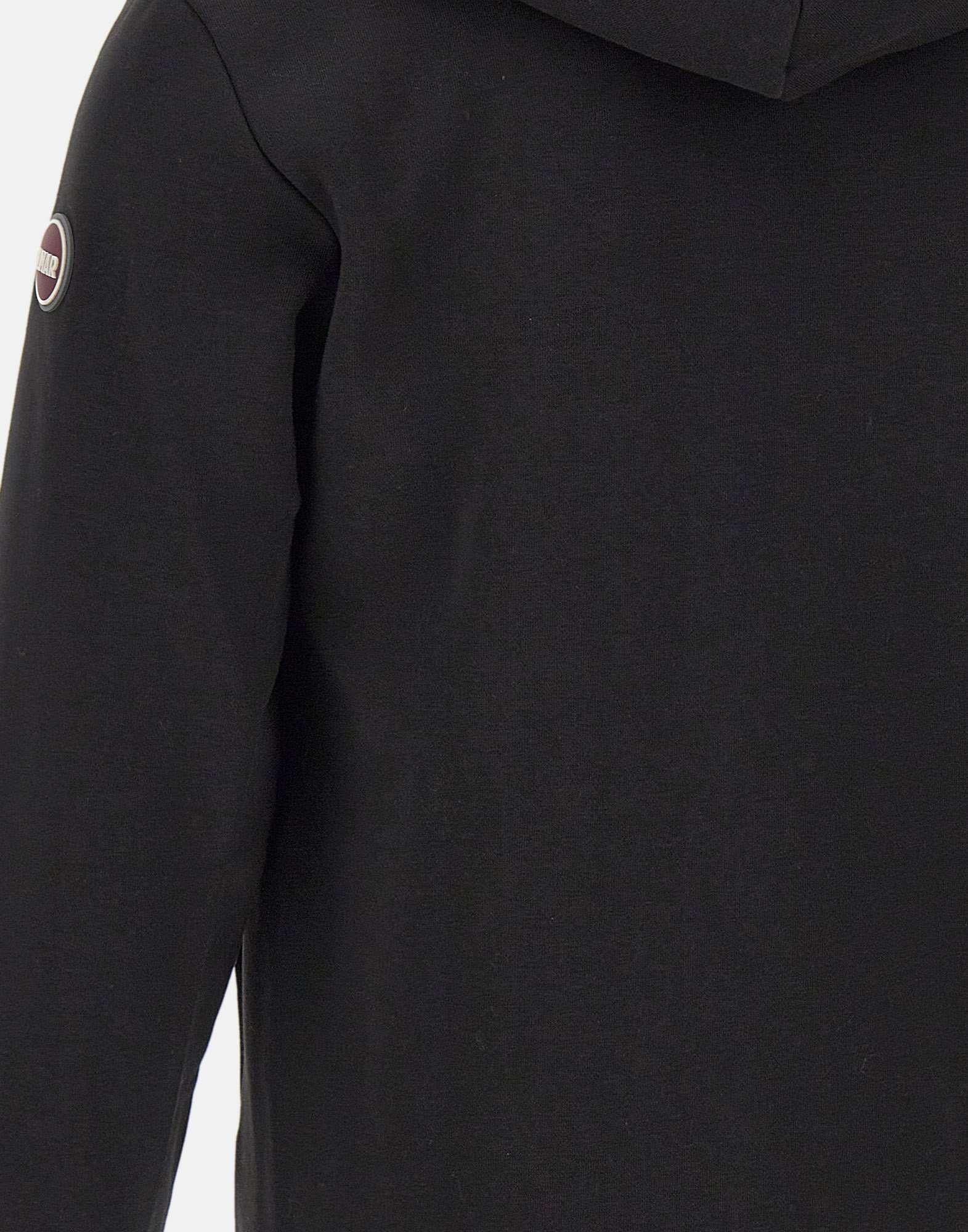 Felpa uomo Colmar Originals in misto cotone, colore nero, con cappuccio regolabile tramite coulisse e una full zip sul fronte. Due tasche laterali. Impreziosita dal patch logo applicato sulla manica e rifinita con bordi a coste su polsini e fondo per un look casual e curato.