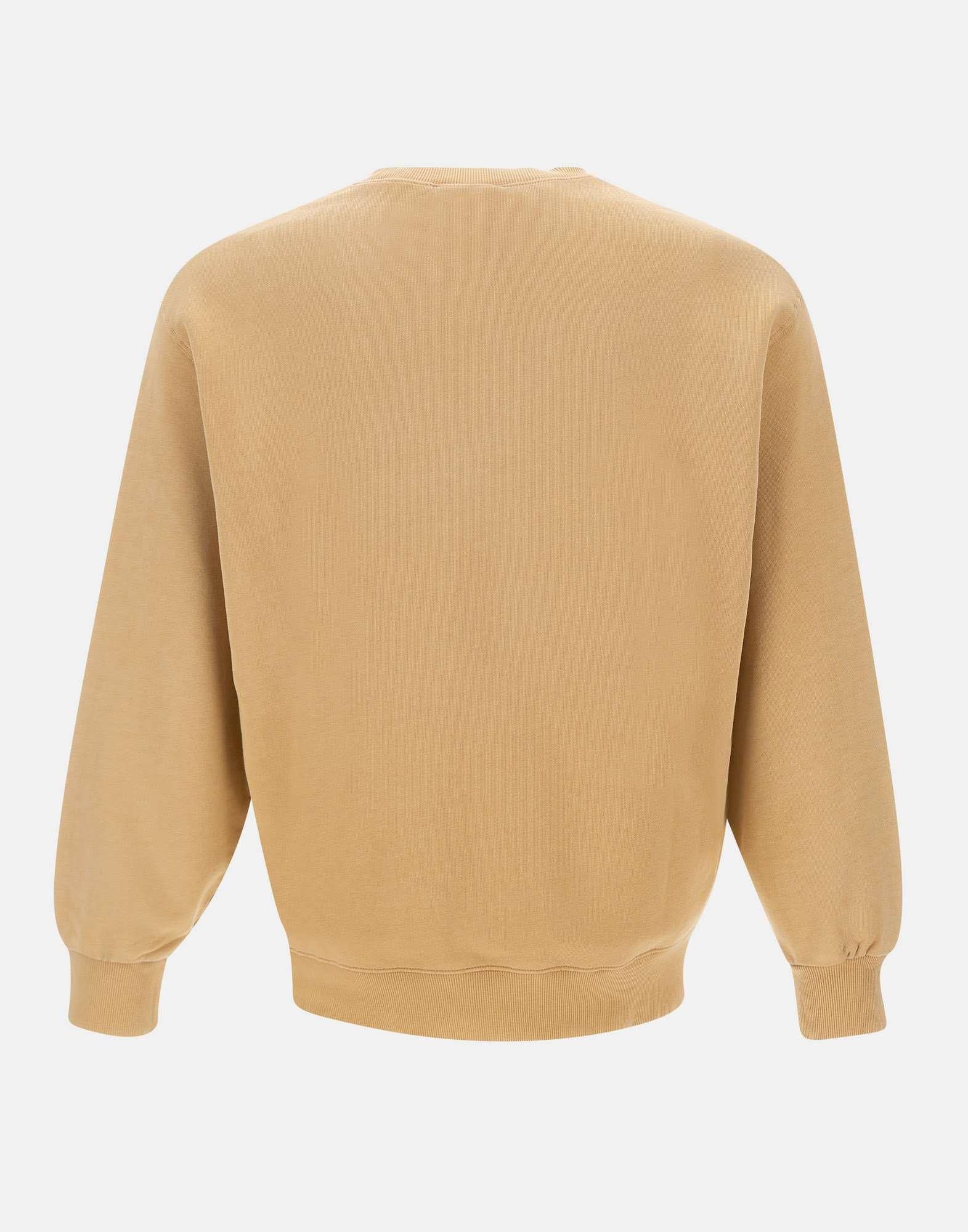 "Hudson sweater" uomo Carhartt Wip, caffelatte, in jersey di cotone non spazzolato con trattamento chalk wash, maniche lunghe, girocollo, interno garzato, etichetta logo al fondo, bordi a costine, loose fit