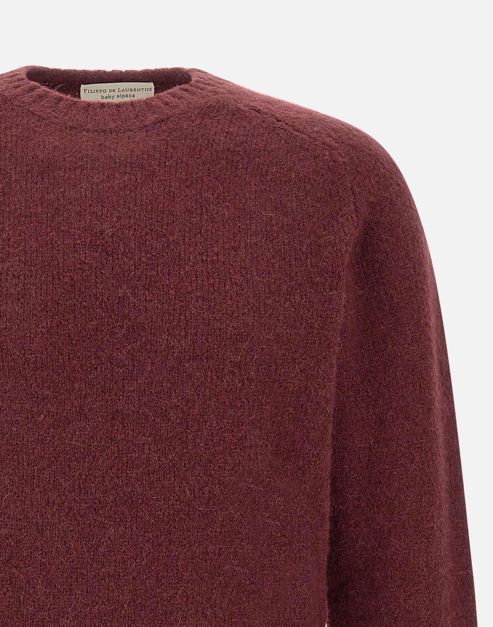 La maglia "Baby Alpaca" di Filippo De Laurentiis, in lana e alpaca color bordeaux, è un capo pregiato che unisce morbidezza, calore e leggerezza. Il design essenziale presenta girocollo, maniche lunghe a martello e orli a costine, per una vestibilità confortevole e raffinata. Perfetta per look casual o eleganti, rappresenta leccellenza della maglieria Made in Italy. Regular fit.