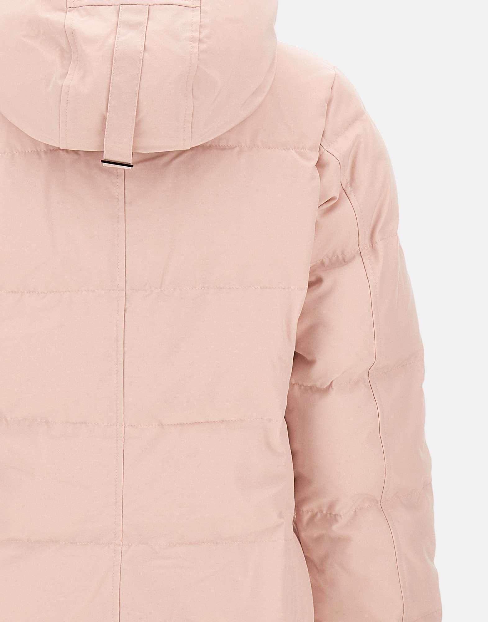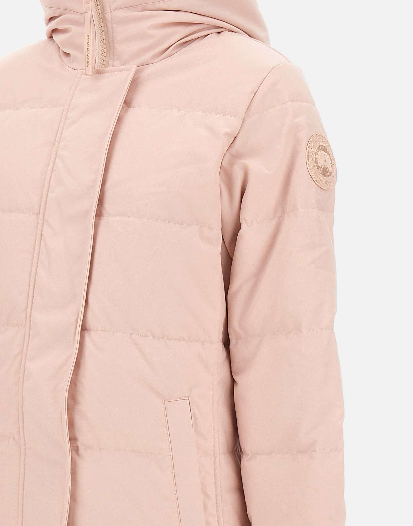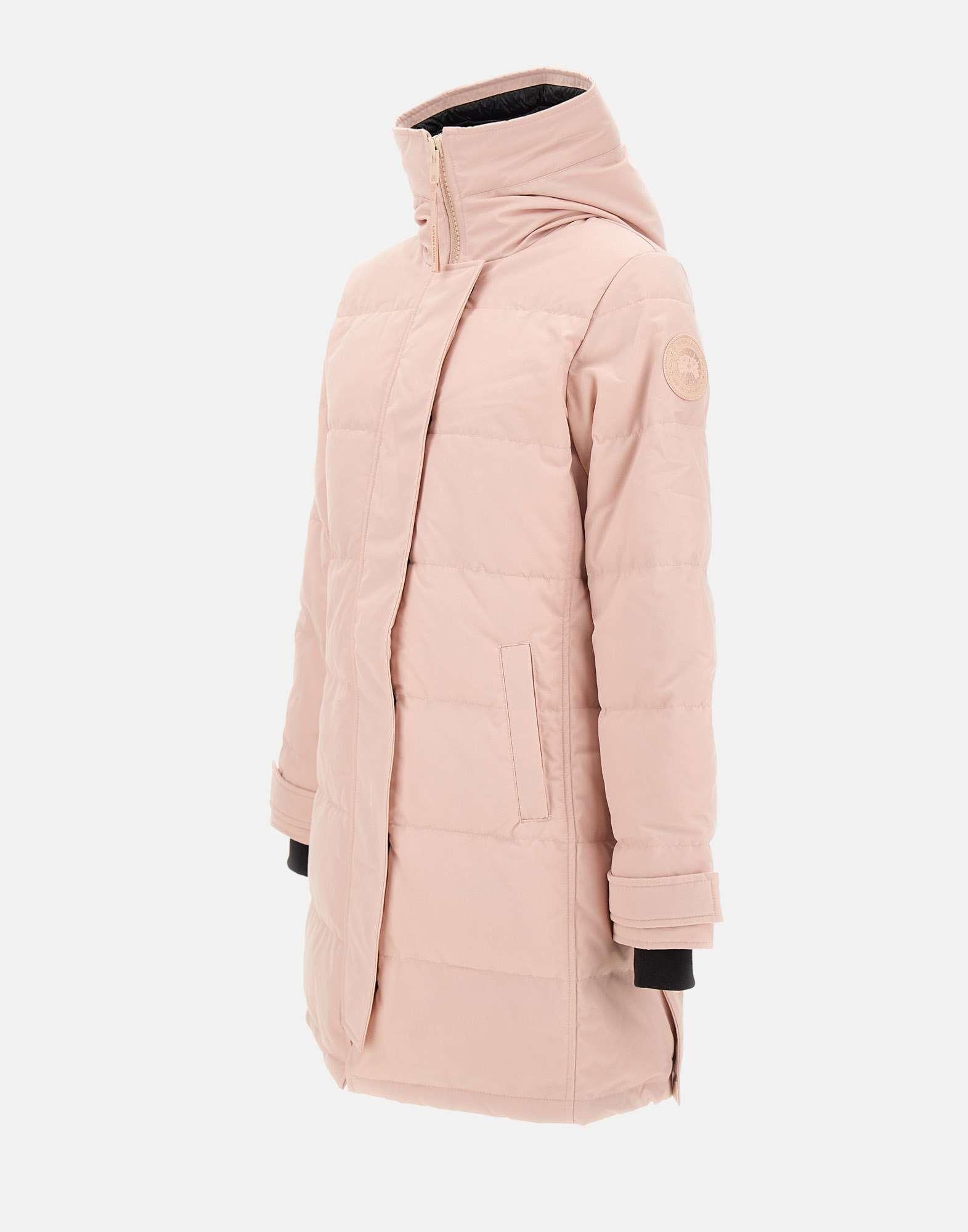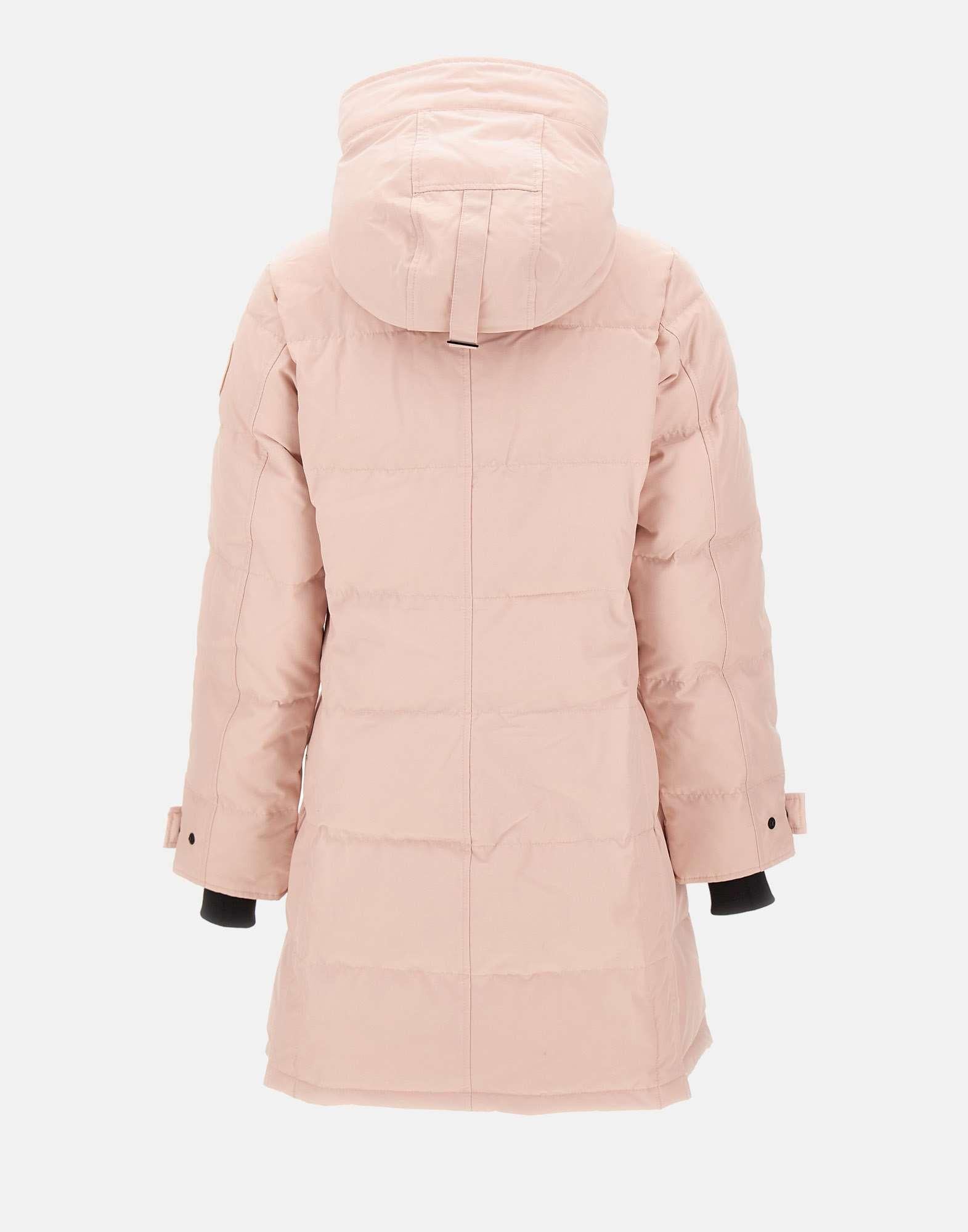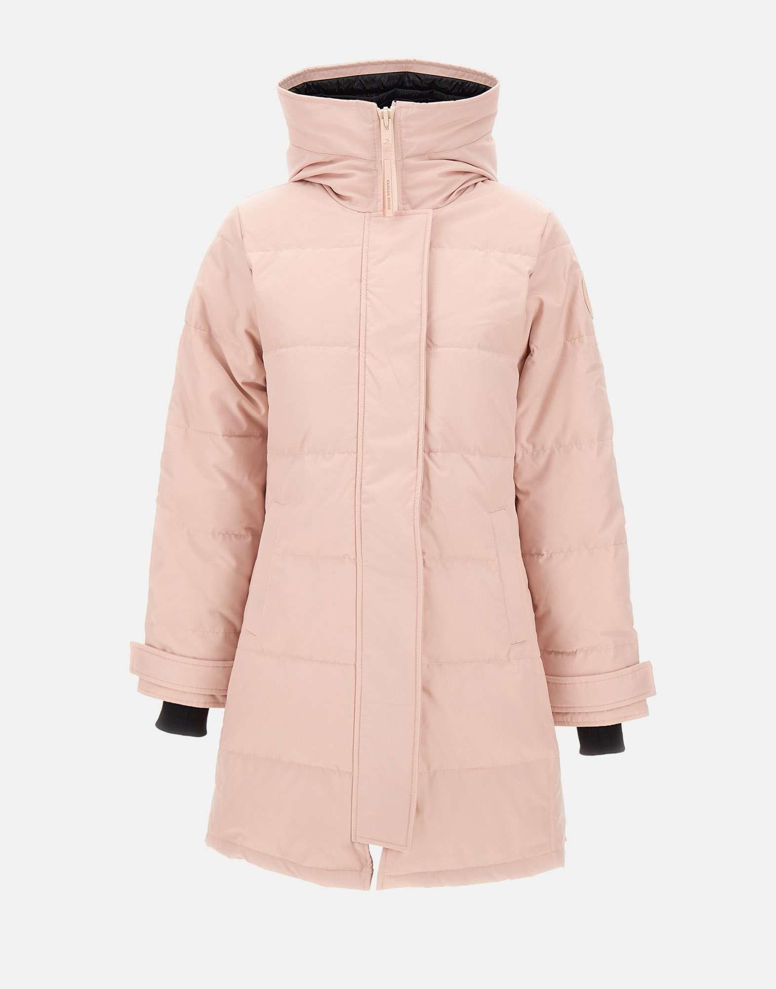 Parka "Shelburne" Canada Goose, proposto in rosa e realizzato in Recycled Organic Arctic Tech®, resistente all’acqua e al vento. Modello lungo con cappuccio snorkel regolabile e imbottitura in piuma 625 fill power per protezione termica fino a -20°C. Presenta chiusura frontale con zip a due vie e bottoni, mentoniera foderata in tricot, cinghie interne per il trasporto a mani libere, tasche laterali foderate in pile con bottoni, tasca interna di sicurezza con zip e due tasche a rete. Polsini interni in maglia a coste con chiusura regolabile a scatto. Disco logo in tono sulla manica sinistra. Vestibilità regular.