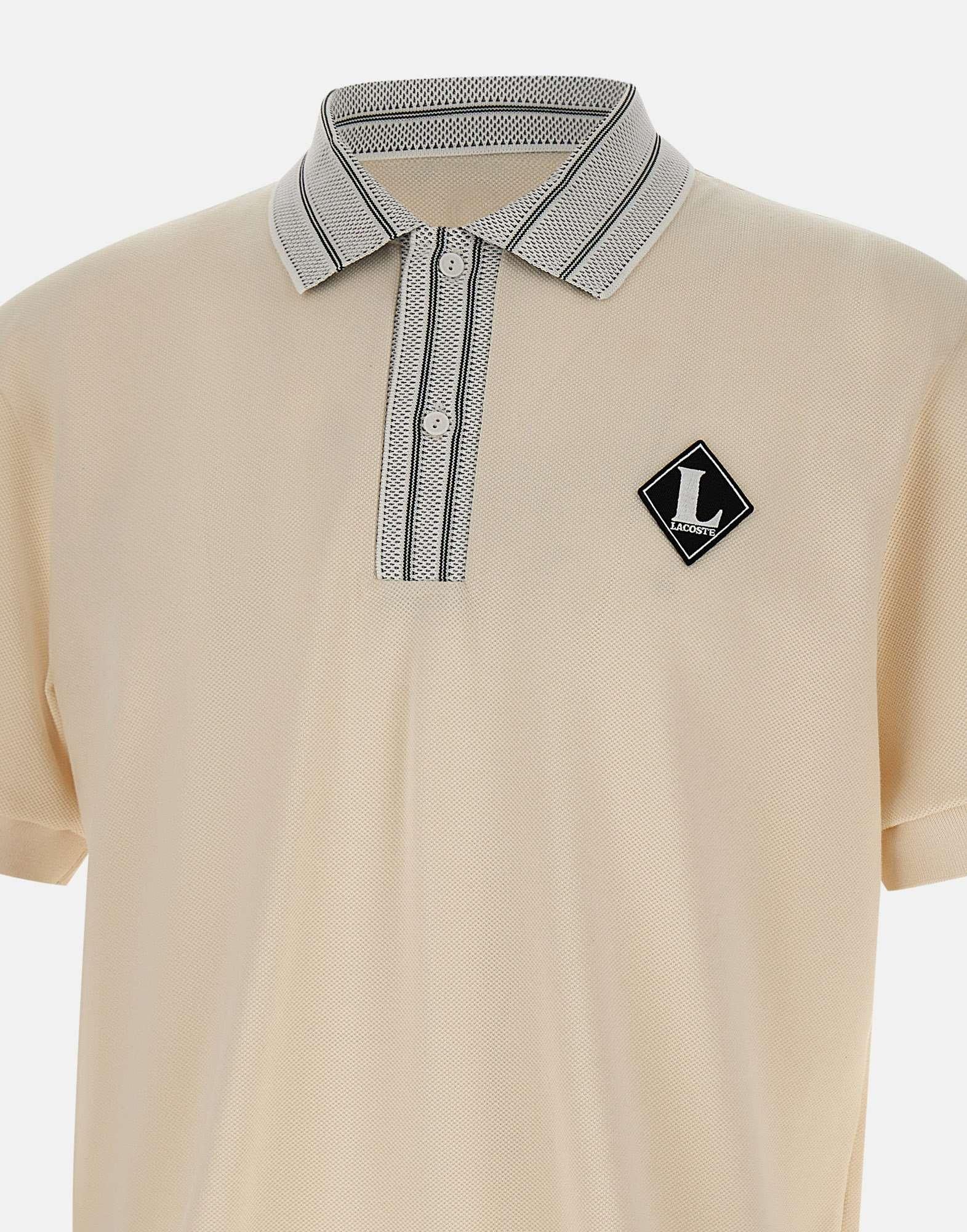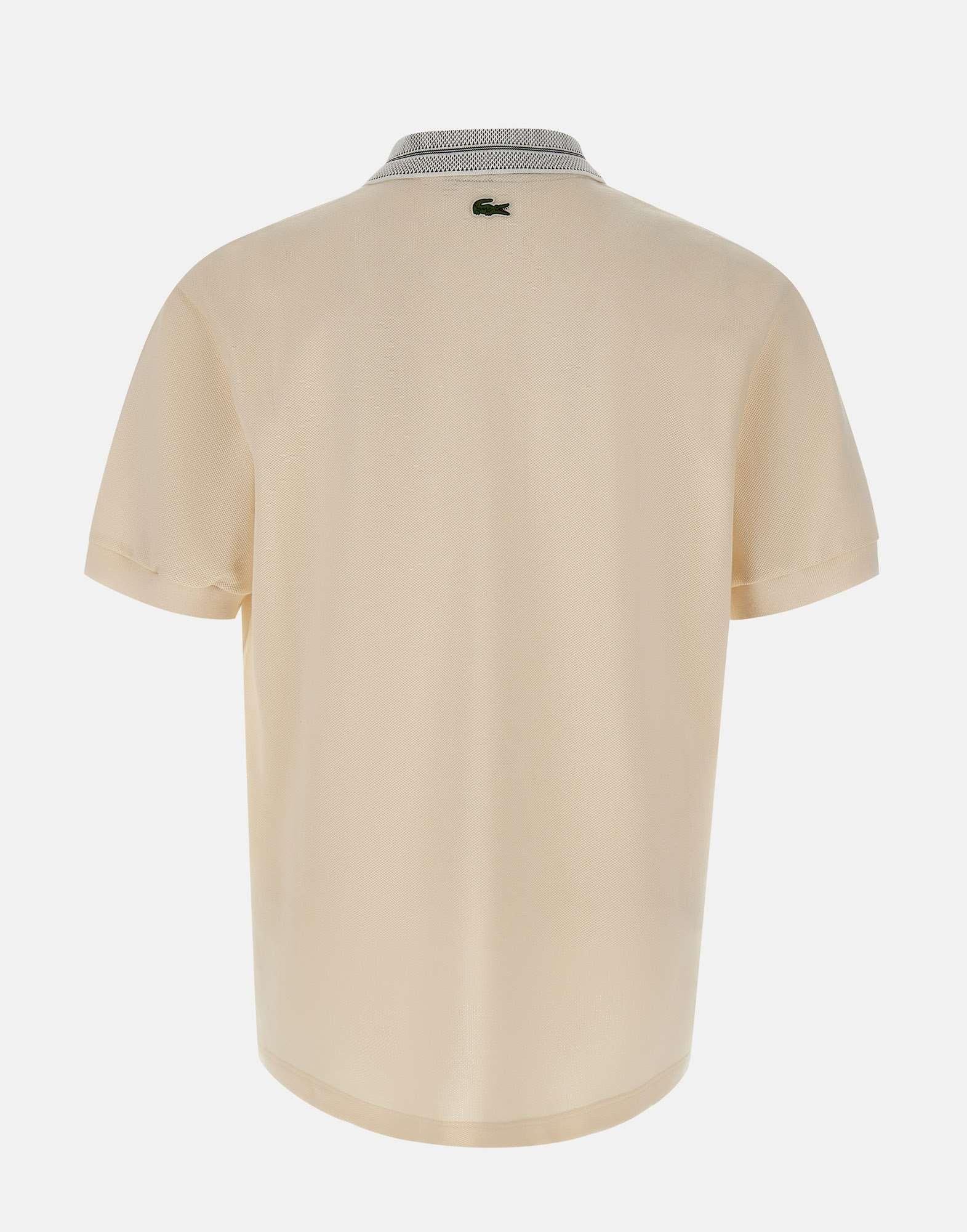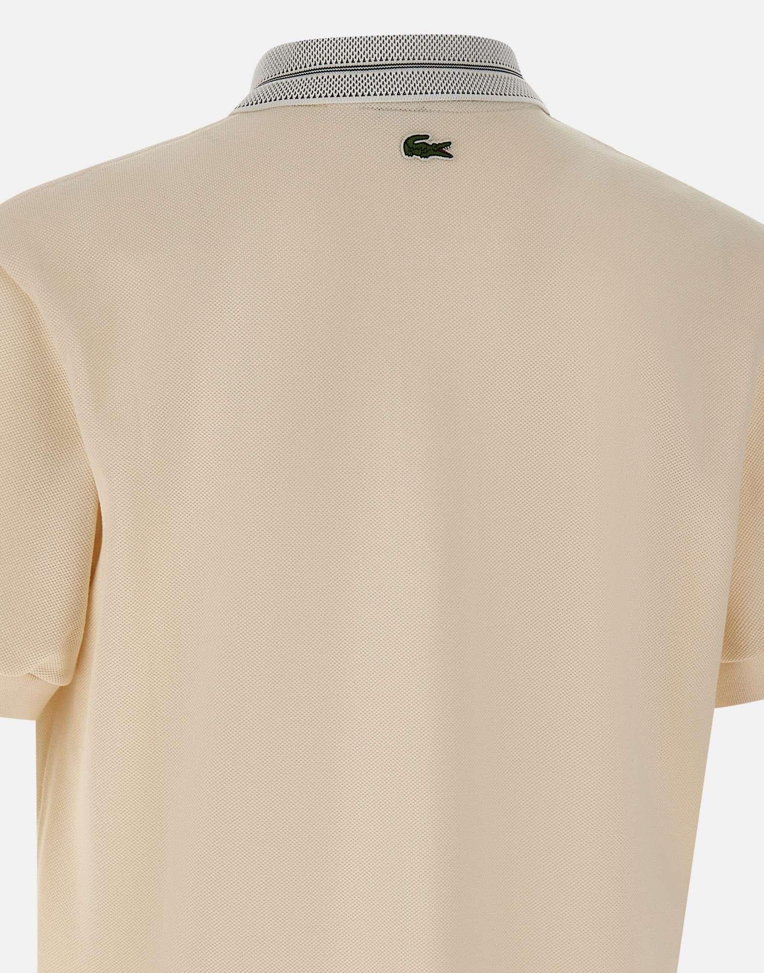 Polo uomo Lacoste realizzata in Francia in pesante piqué di cotone color panna, espressione di uno stile sofisticato e senza tempo. Il modello si distingue per i dettagli ricercati, tra cui lo stemma con logo rétro sul petto, le sottili righe a contrasto testurizzate sul colletto e il tradizionale coccodrillo ricamato sul retro sotto il collo. Presenta maniche corte con orli a costine, classico collo polo con chiusura a due bottoni e vestibilità classic fit, perfetta per completare look eleganti e casual con l'inconfondibile heritage Lacoste.